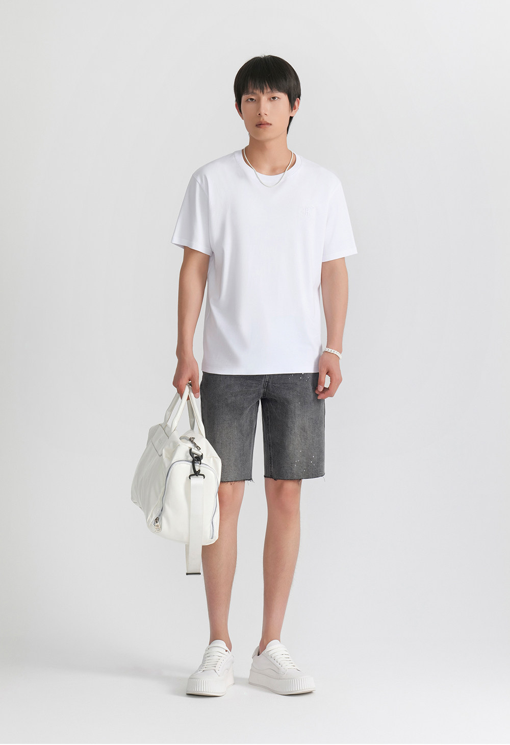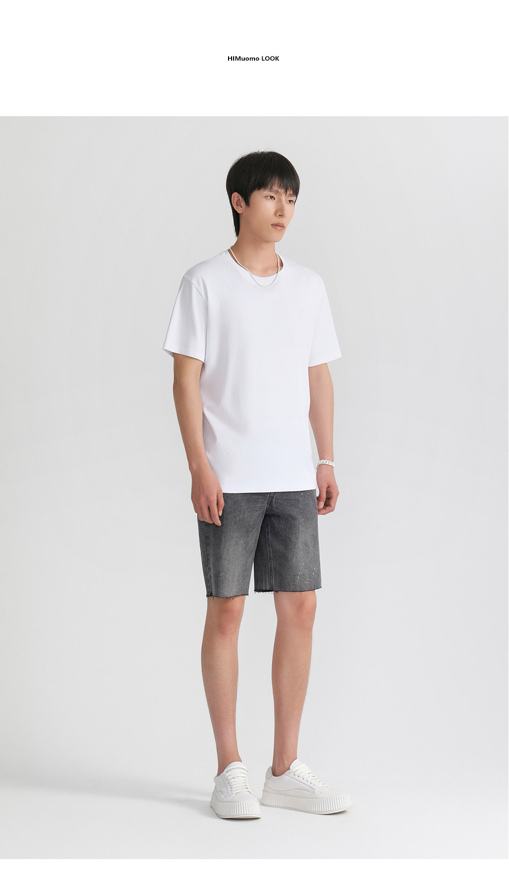 HIM漢崇 柔软休闲圆领T恤简约设计感压花舒适短袖上衣 2026夏季