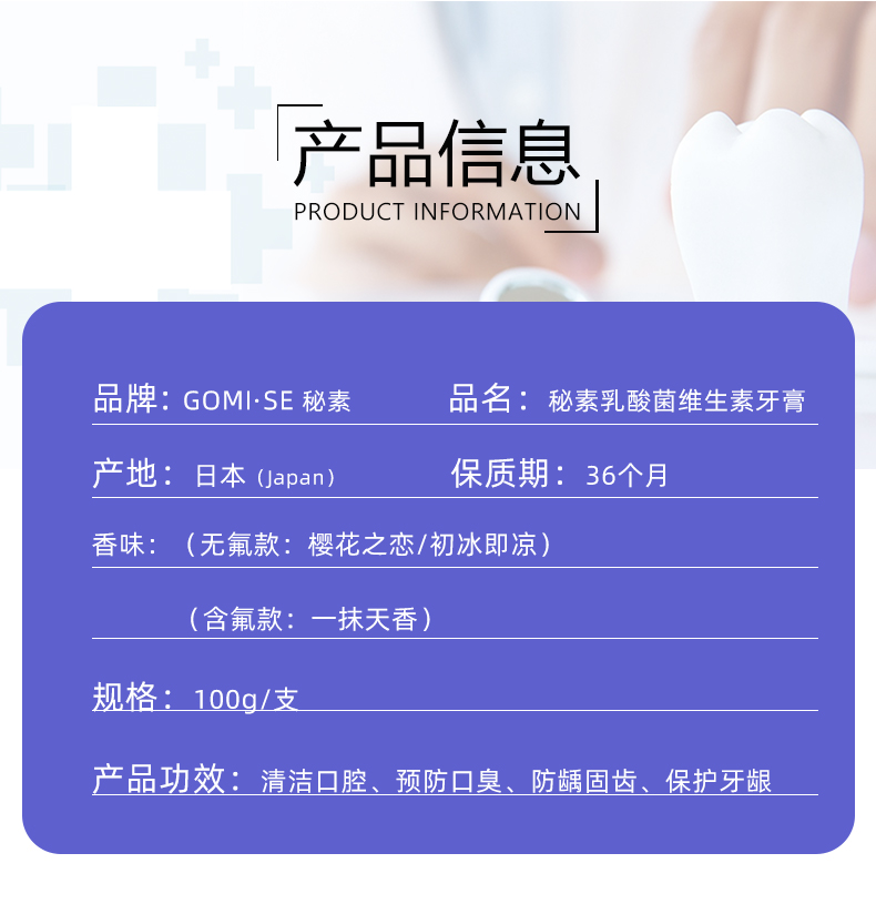 【清新口气】GOMISE乳酸菌维生素牙膏温和洁白牙齿净化口腔保护牙龈