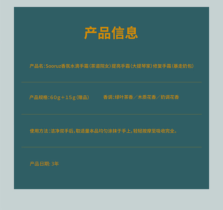 【萦绕指尖芬芳】SOORUZ树柔防干裂滋润霜锁水保湿快速吸收香气浓郁舒缓肌肤抗干燥老化