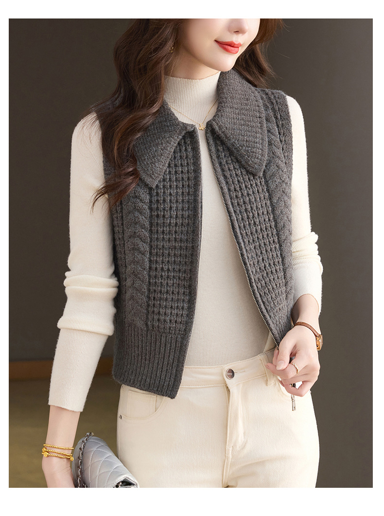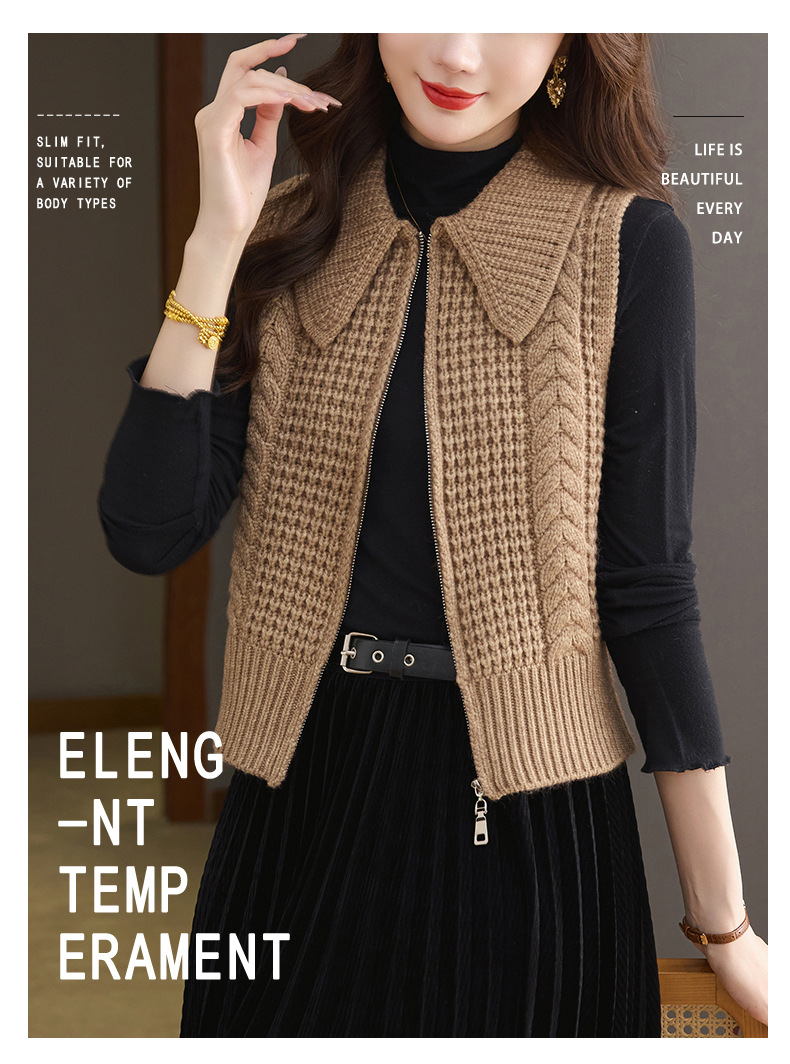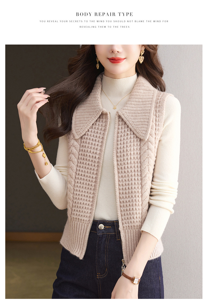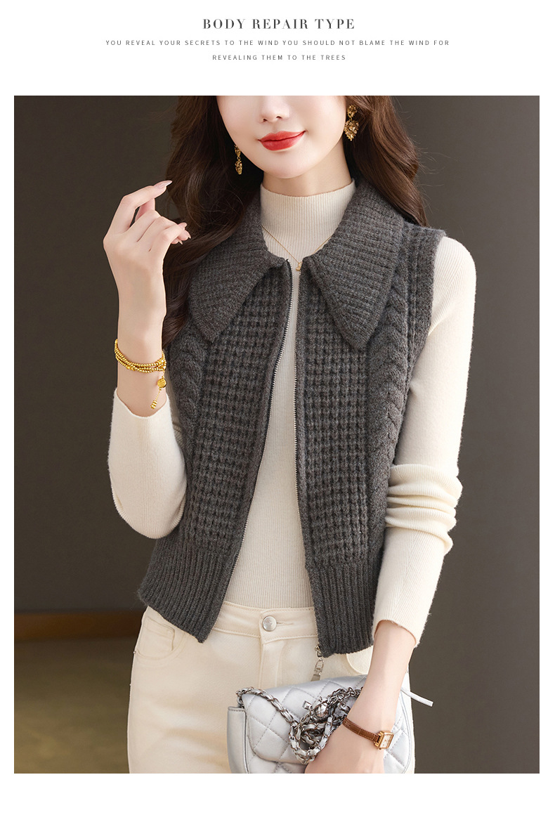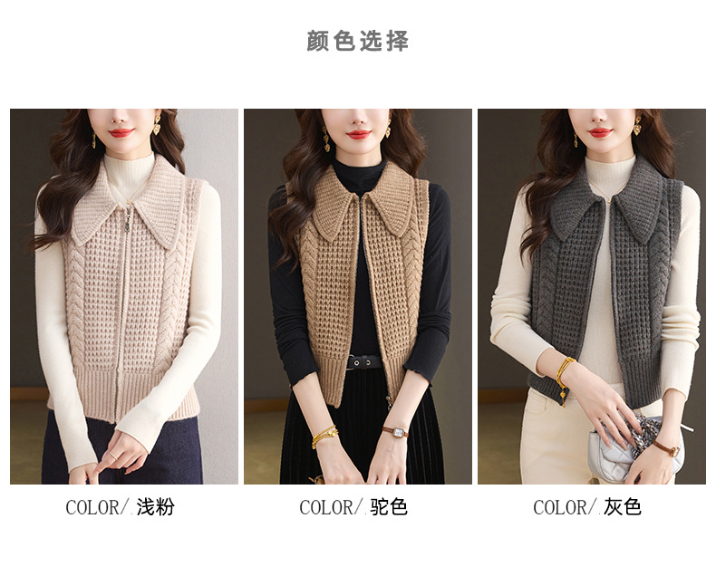CC 26-9122翻领针织马甲拉链叠穿宽松毛衣背心