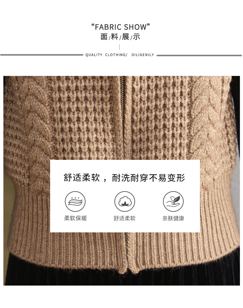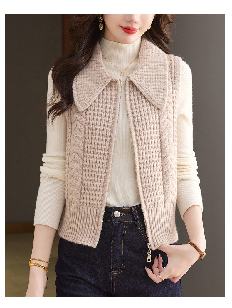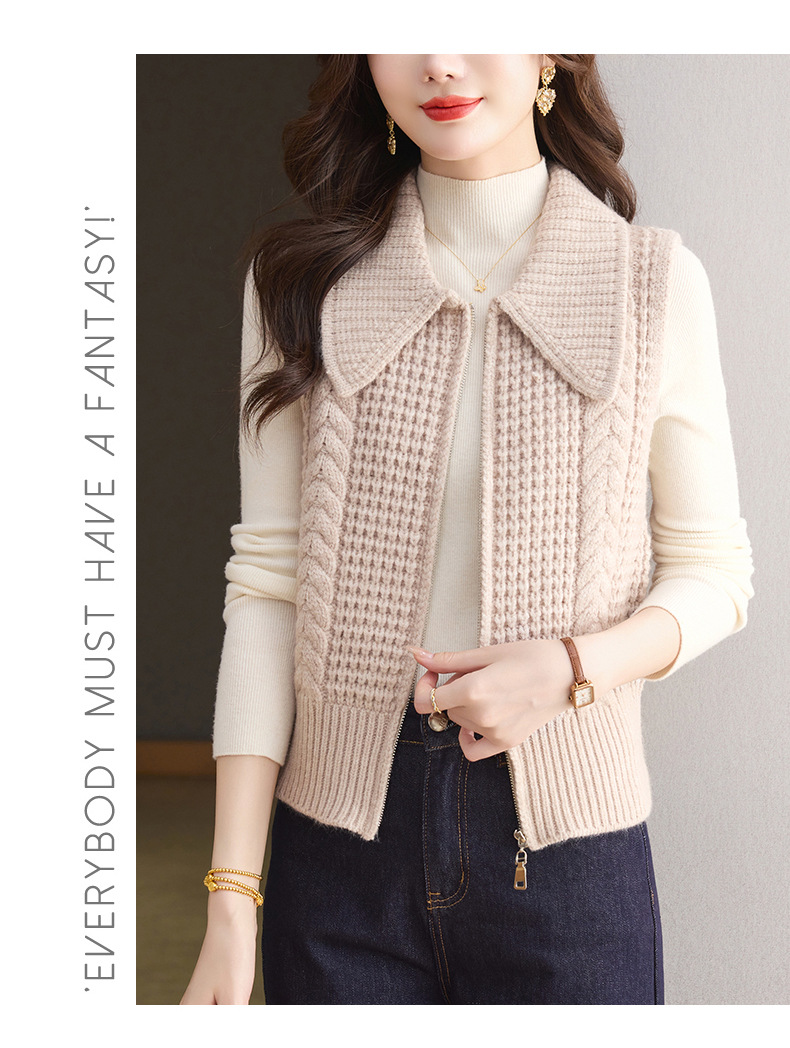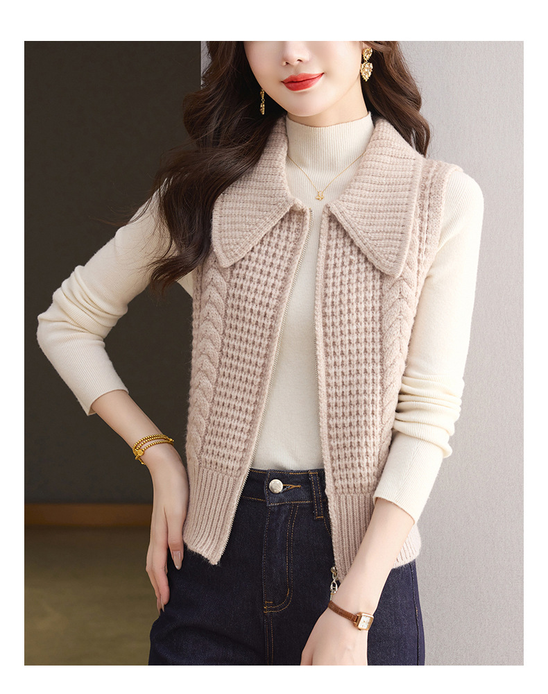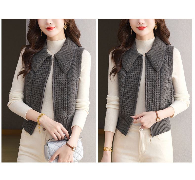 CC 26-9122翻领针织马甲拉链叠穿宽松毛衣背心