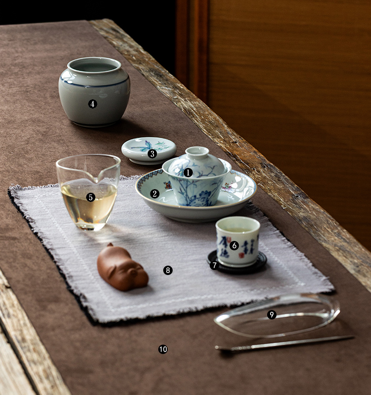 茶香记晴山素华竹影清风马蹄盖碗110ml景德镇陶瓷泡茶碗茶室茶具