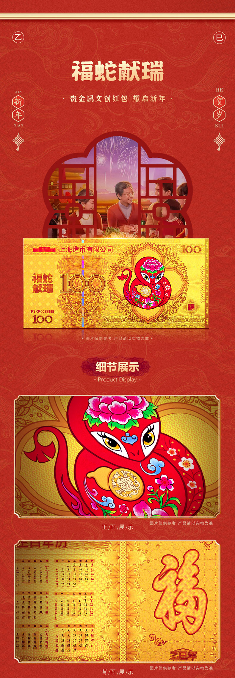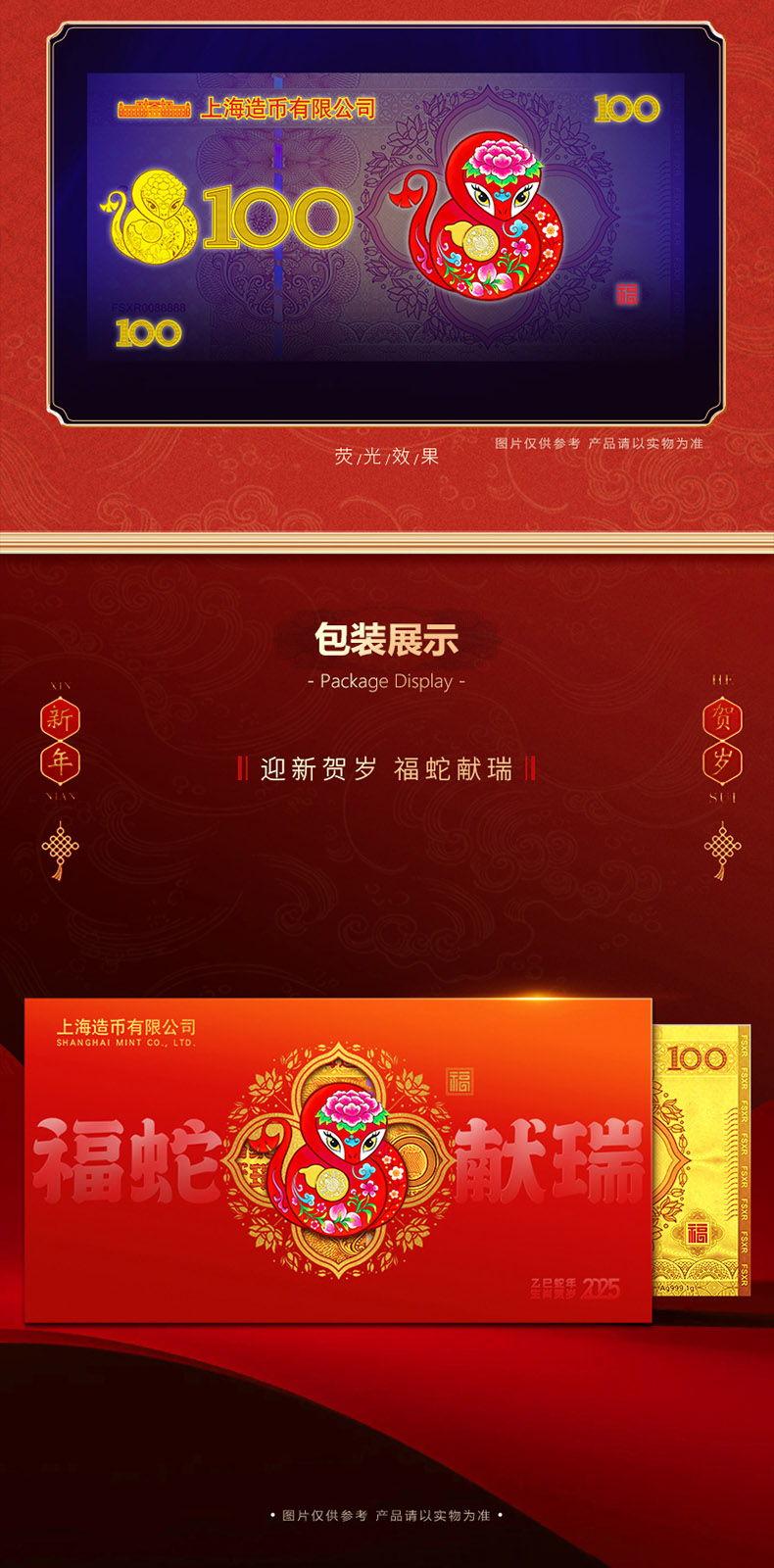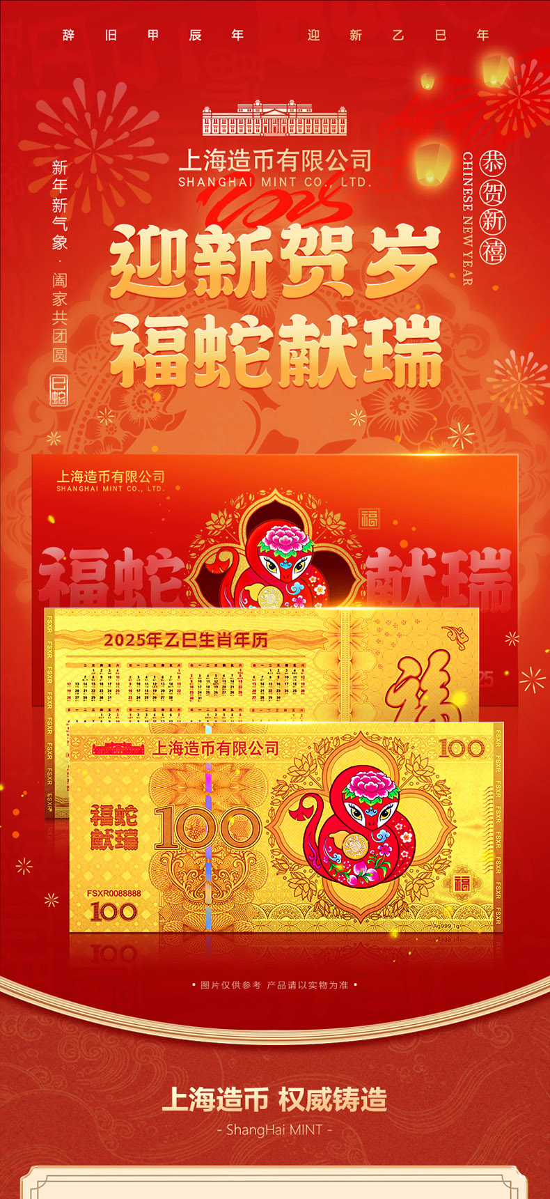 【上海造币出品】《福蛇献瑞》乙巳生肖贺岁“钞”