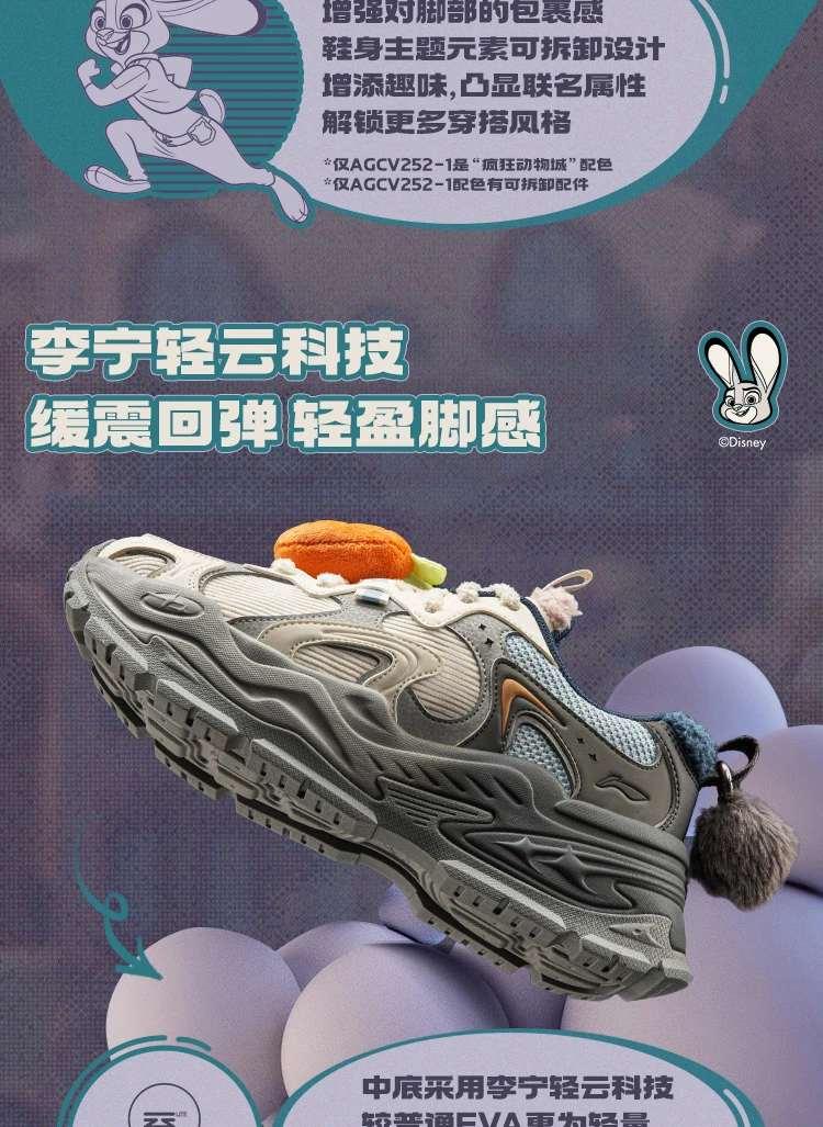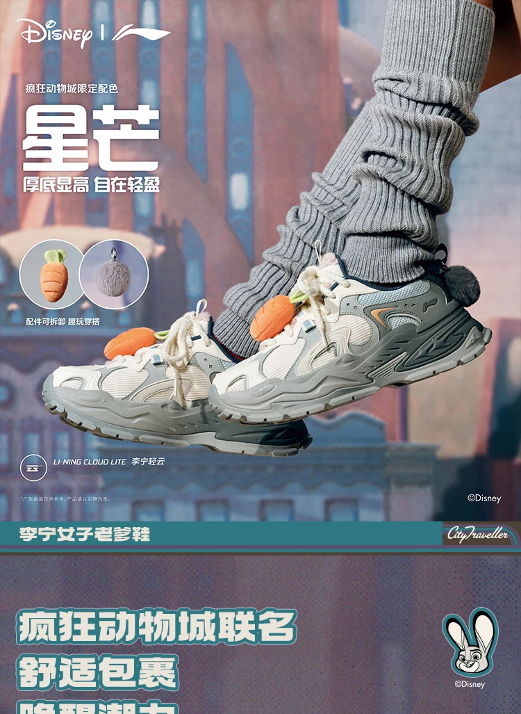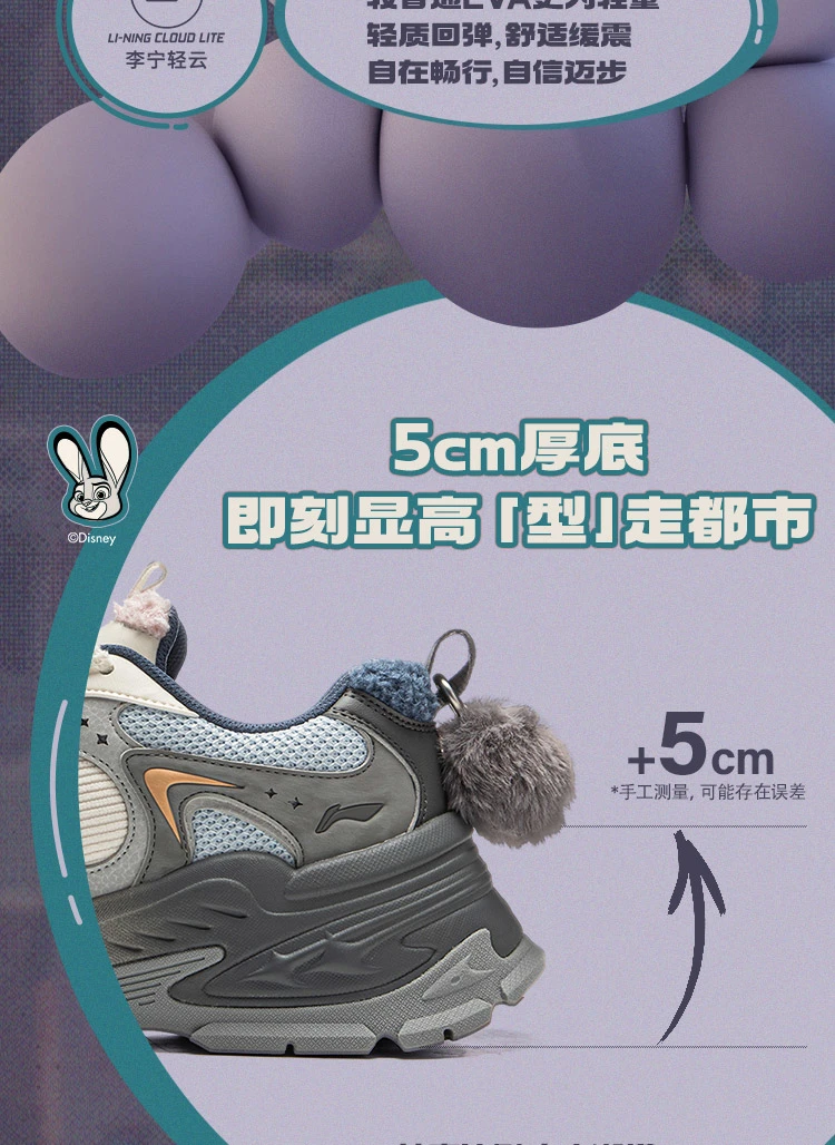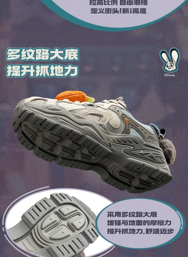 李宁迪士尼疯狂动物城联名系列星芒女子经典休闲鞋AGCV252
