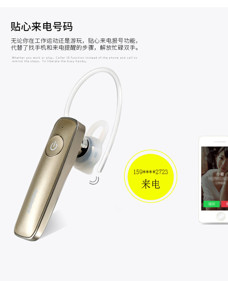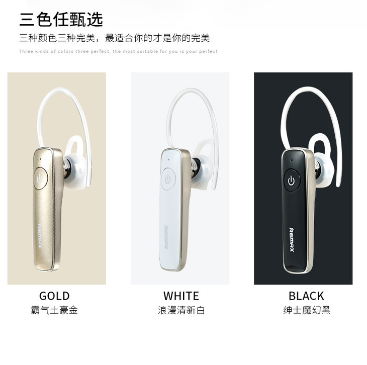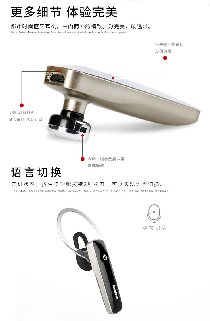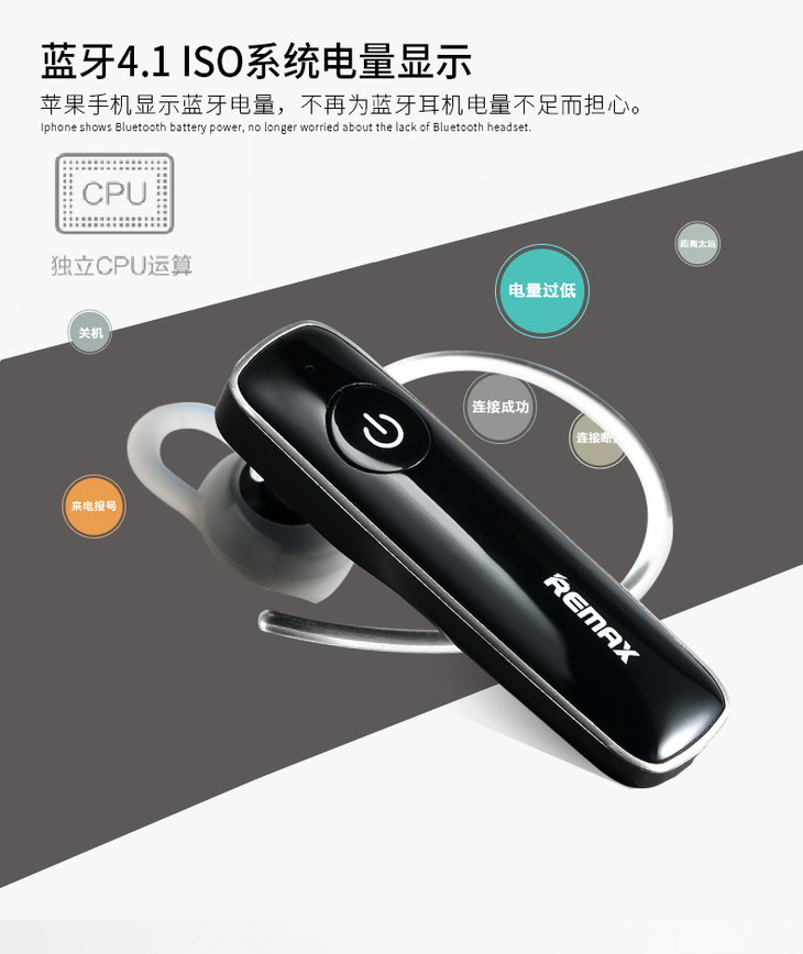 REMAX车载蓝牙耳机立体声4.1无线音乐挂耳式超长待机耳挂耳机
