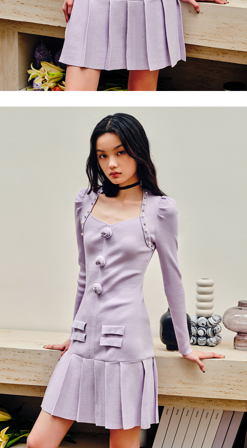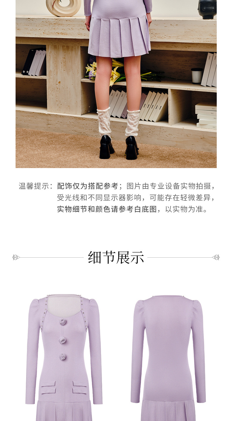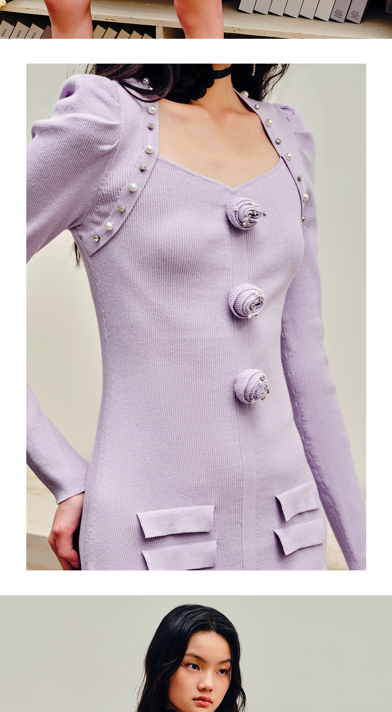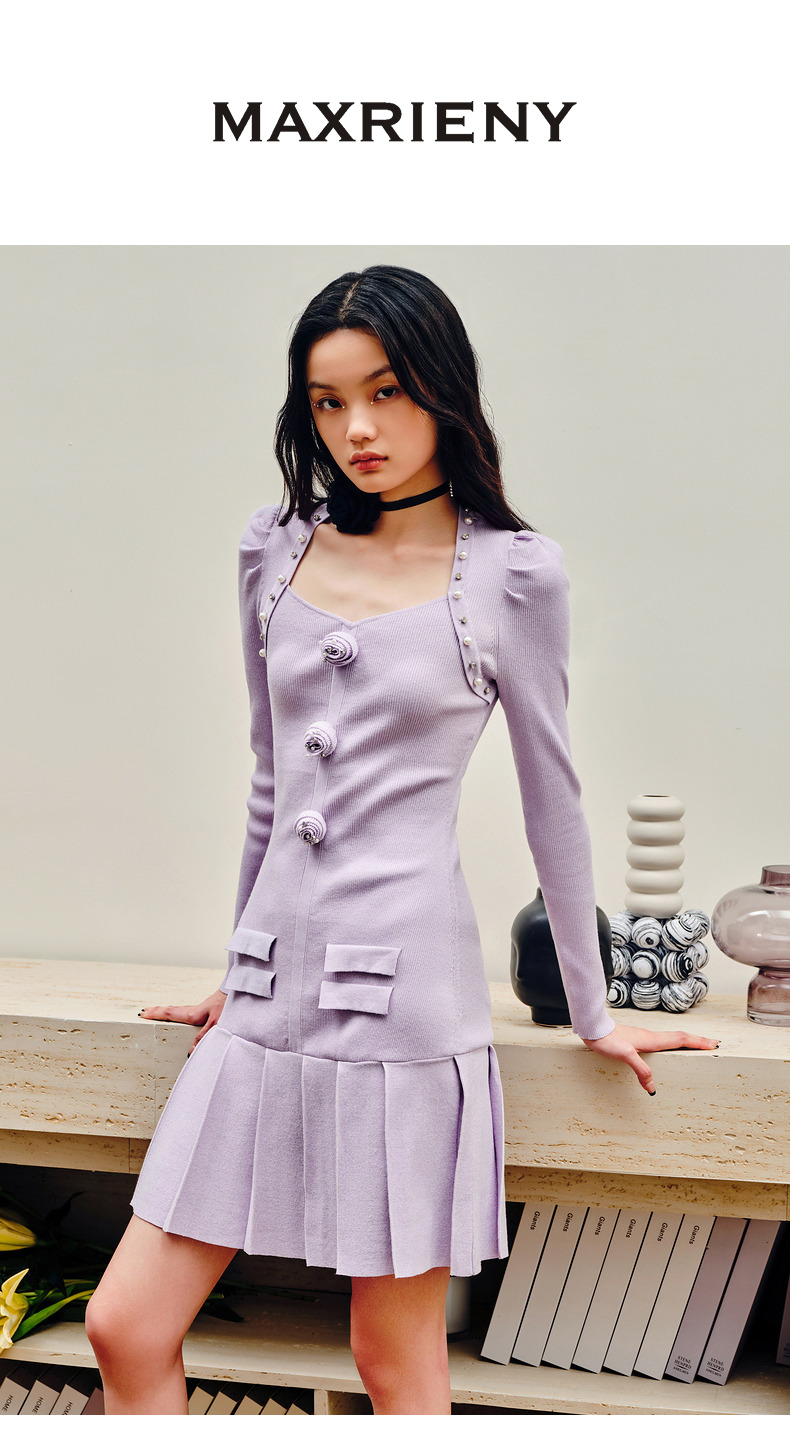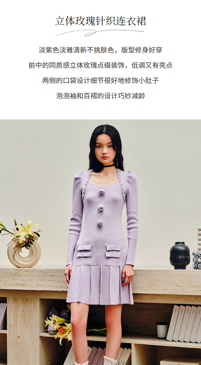 MAXRIENY复古优雅立体玫瑰针织长袖连衣裙修身(货号:MS88DR530)
