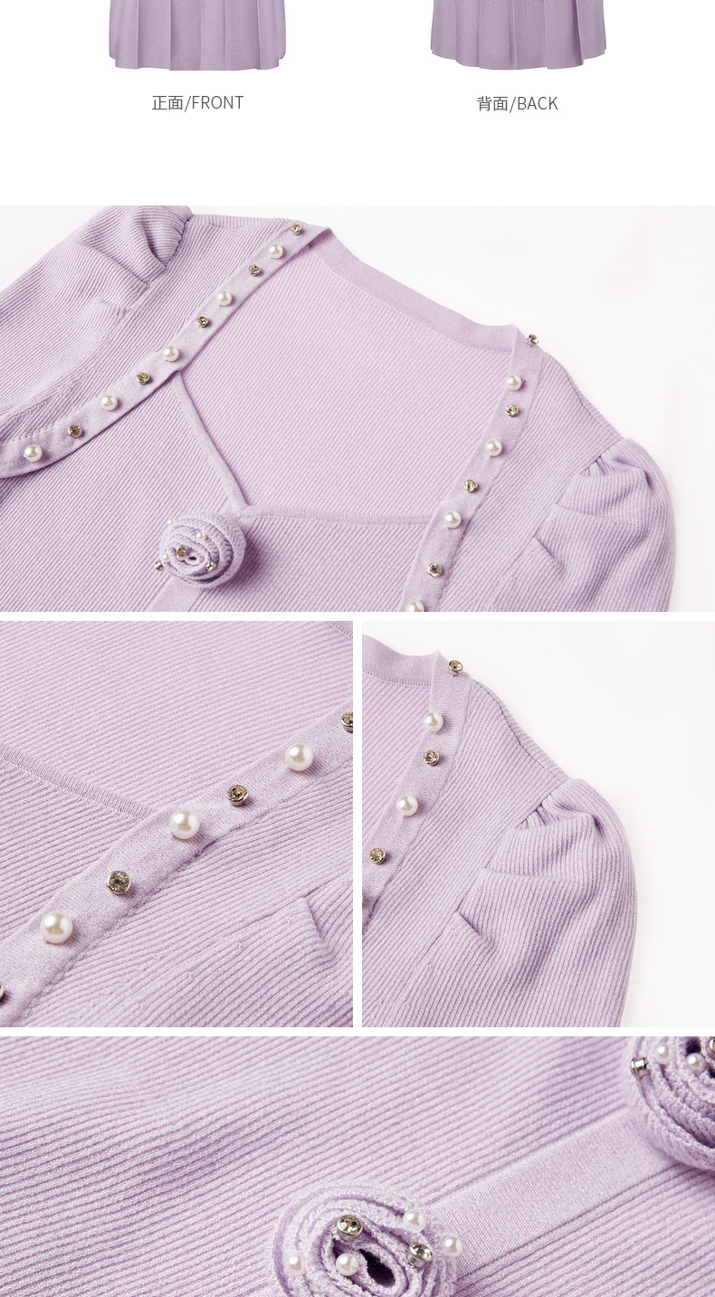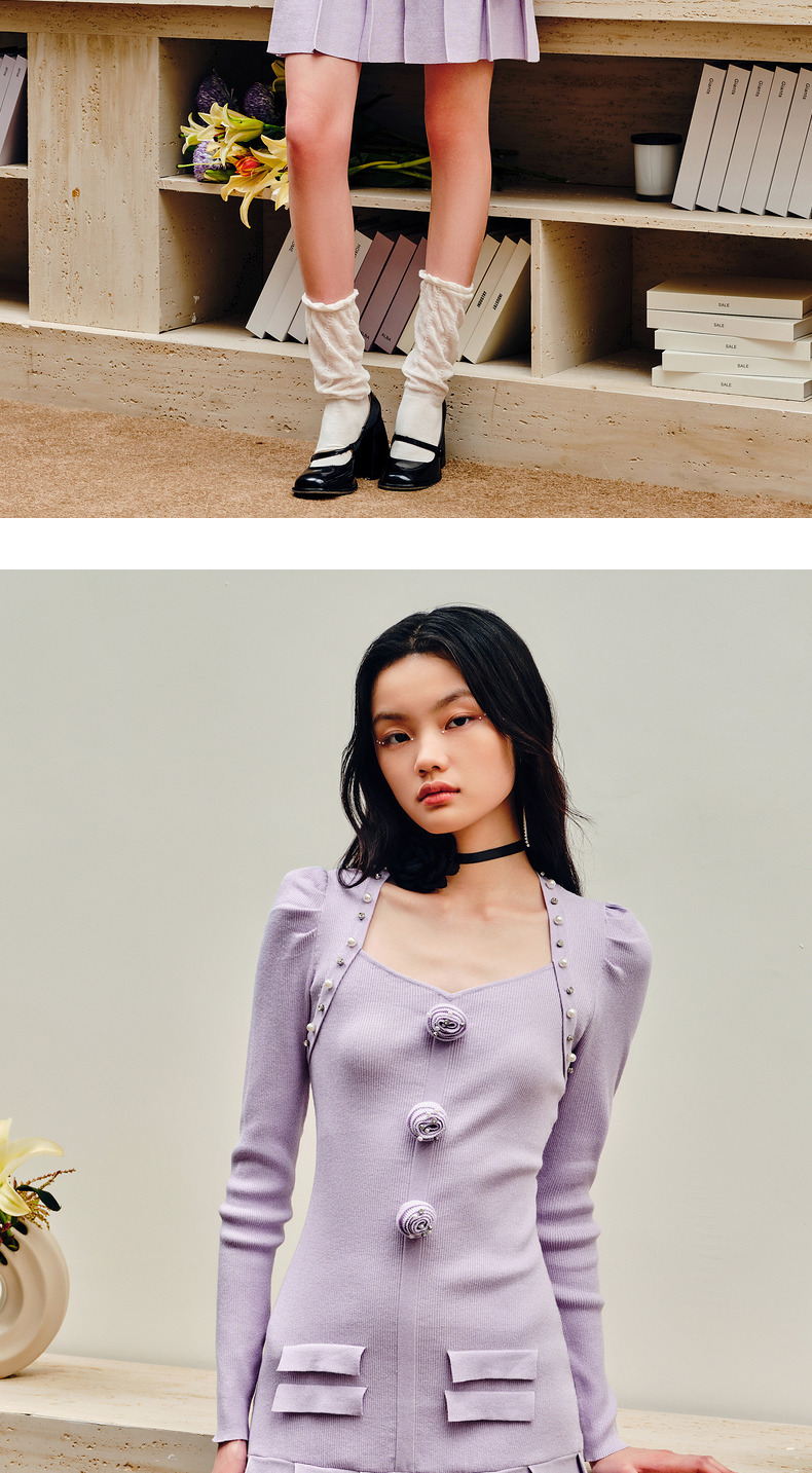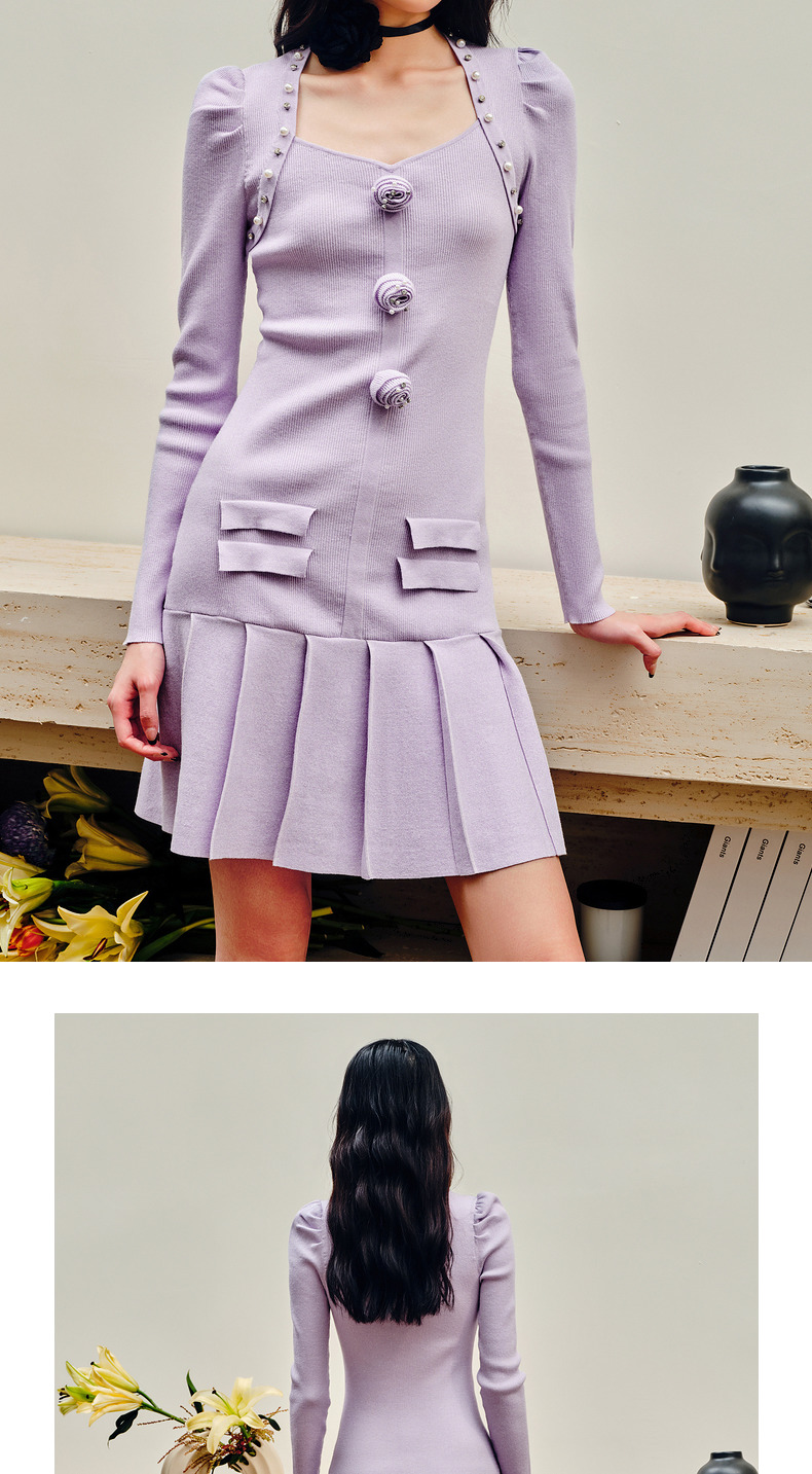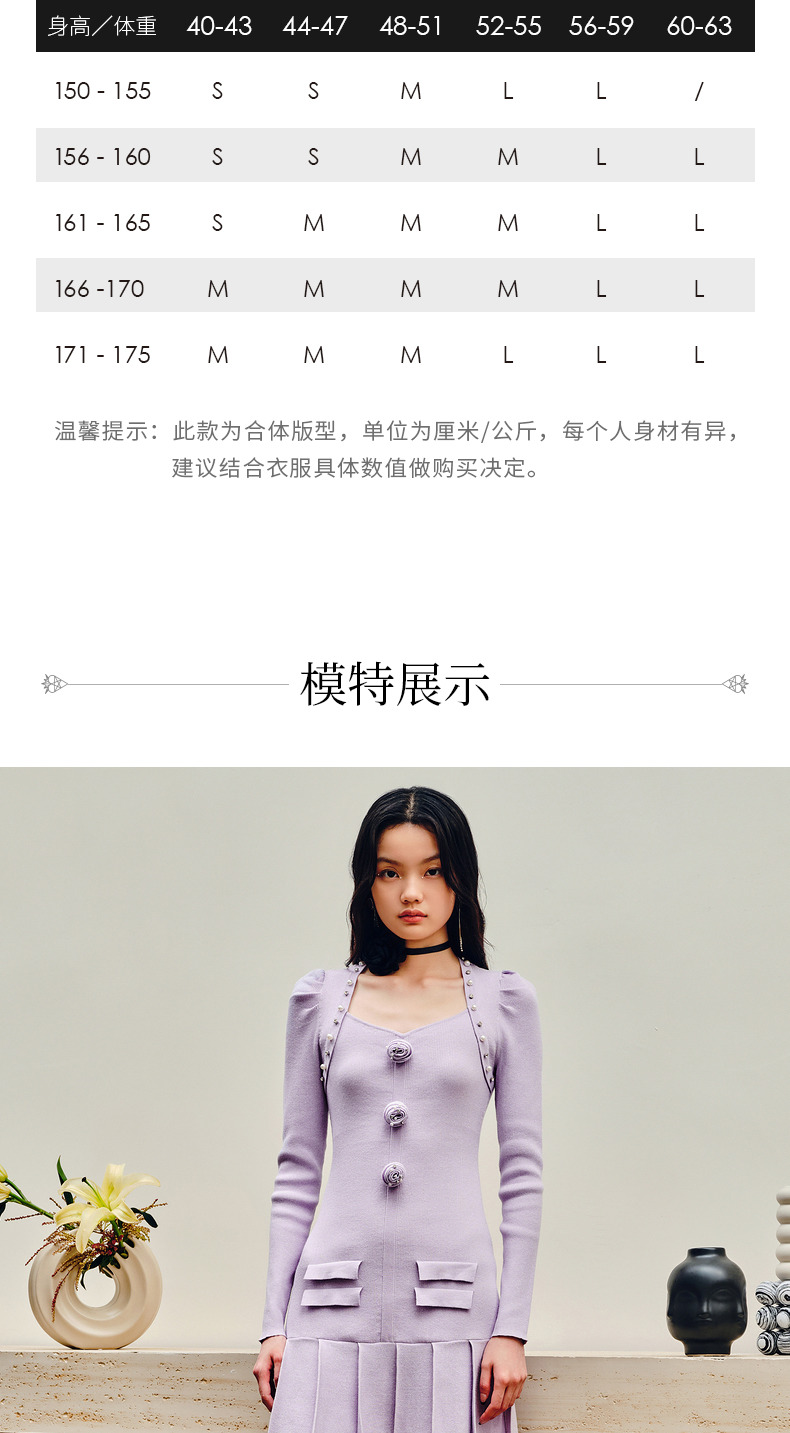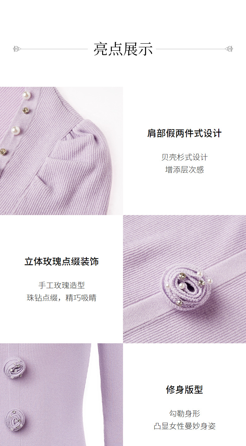 MAXRIENY复古优雅立体玫瑰针织长袖连衣裙修身(货号:MS88DR530)