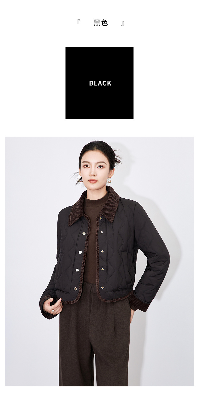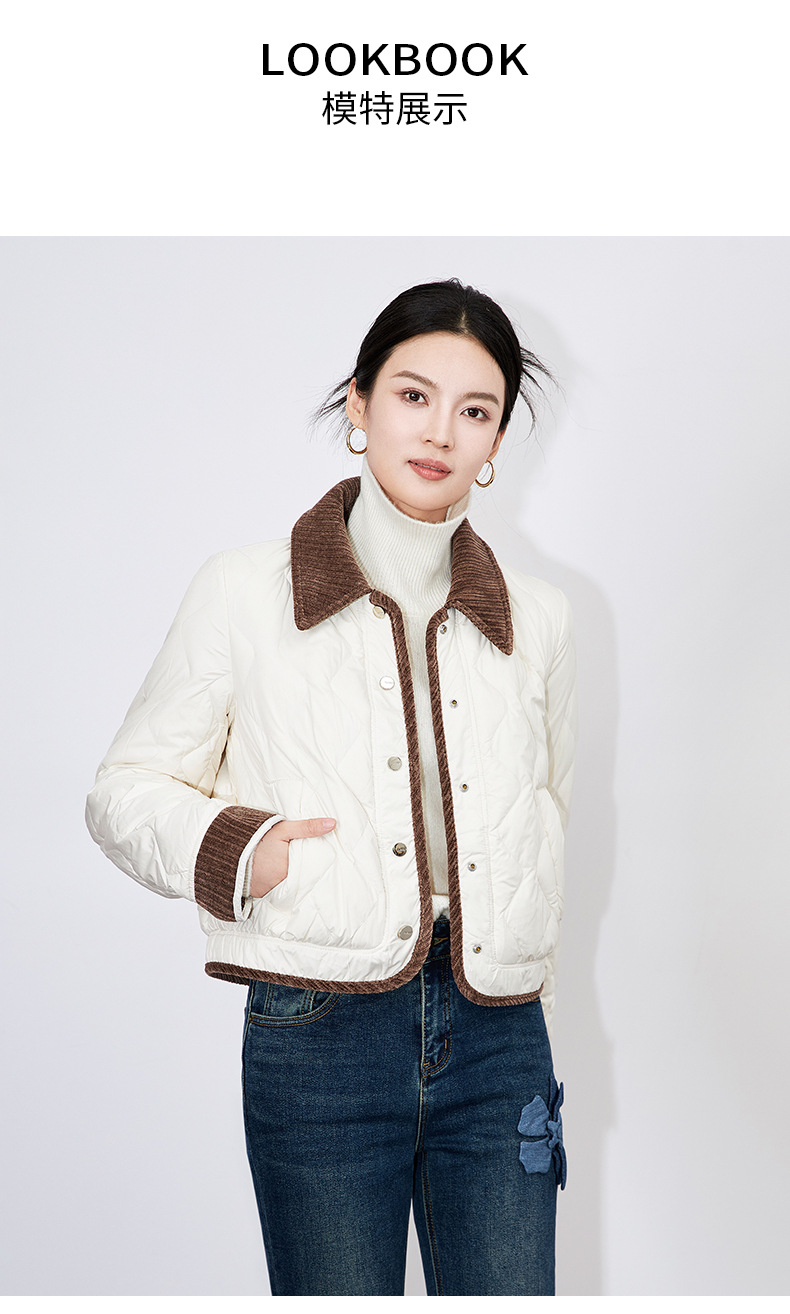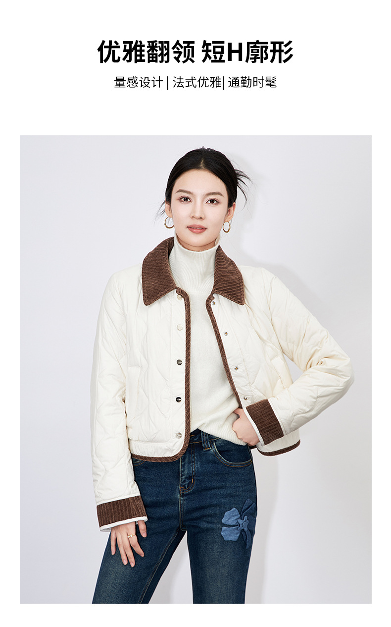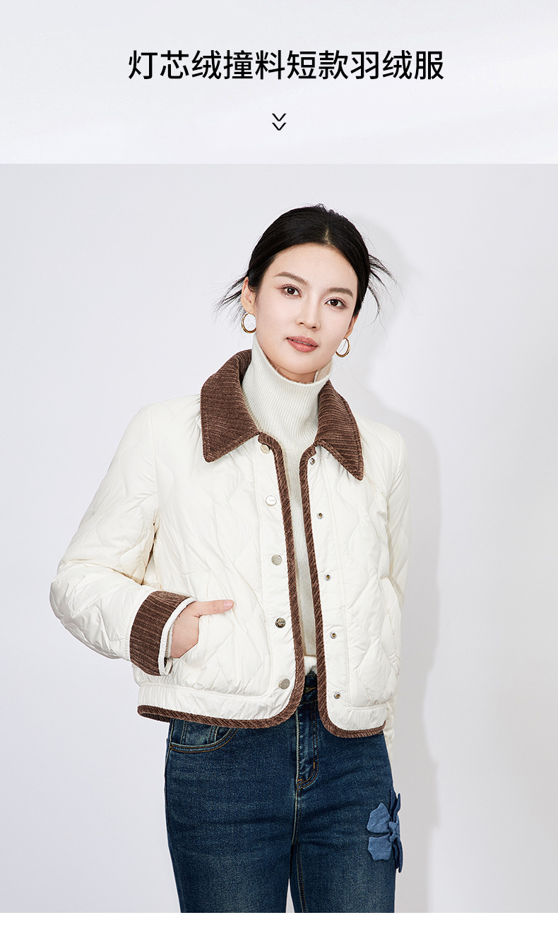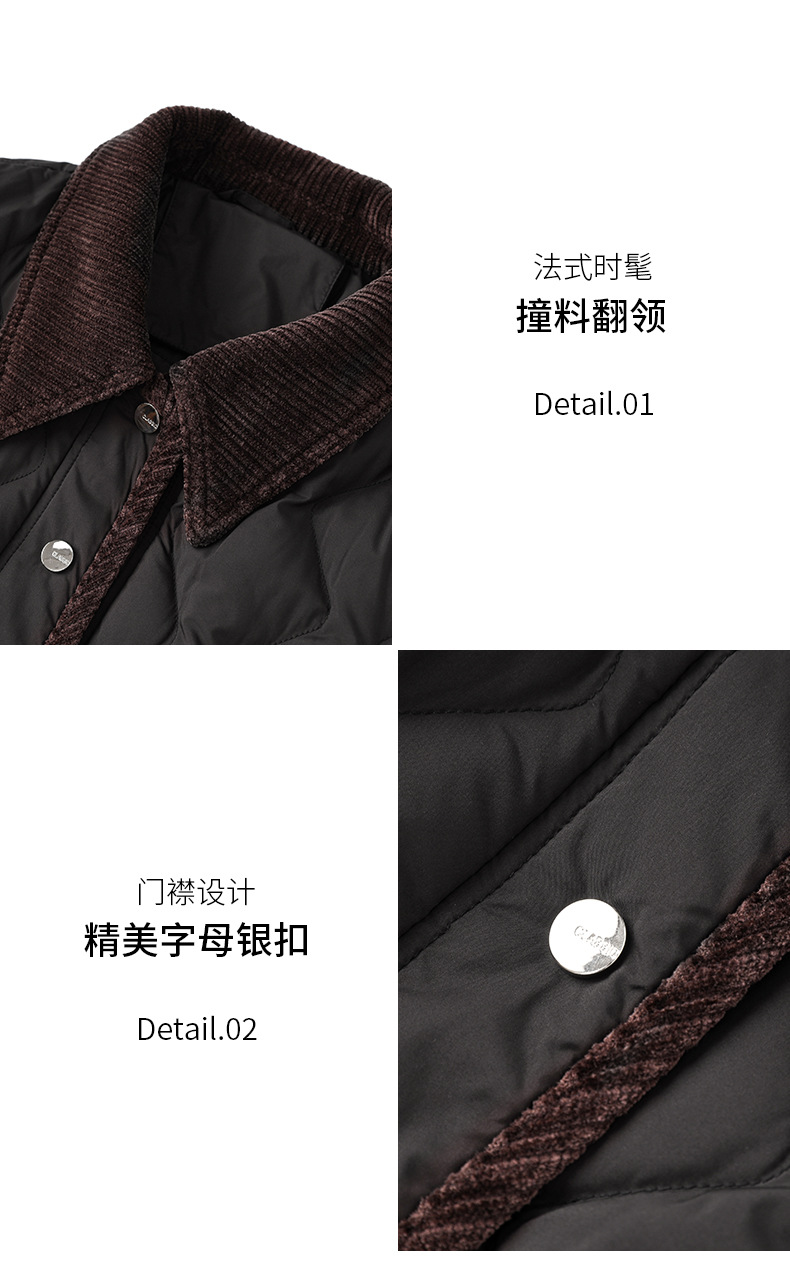 【高货wl】全新升级【铂金会员441/天猫589/差价148】(02037) 洛诗琳时尚复古通勤撞色翻领加厚保暖休闲减龄羽绒服外套