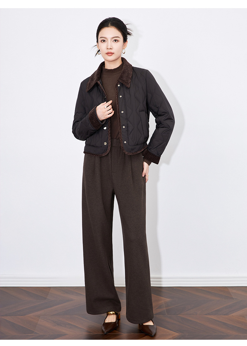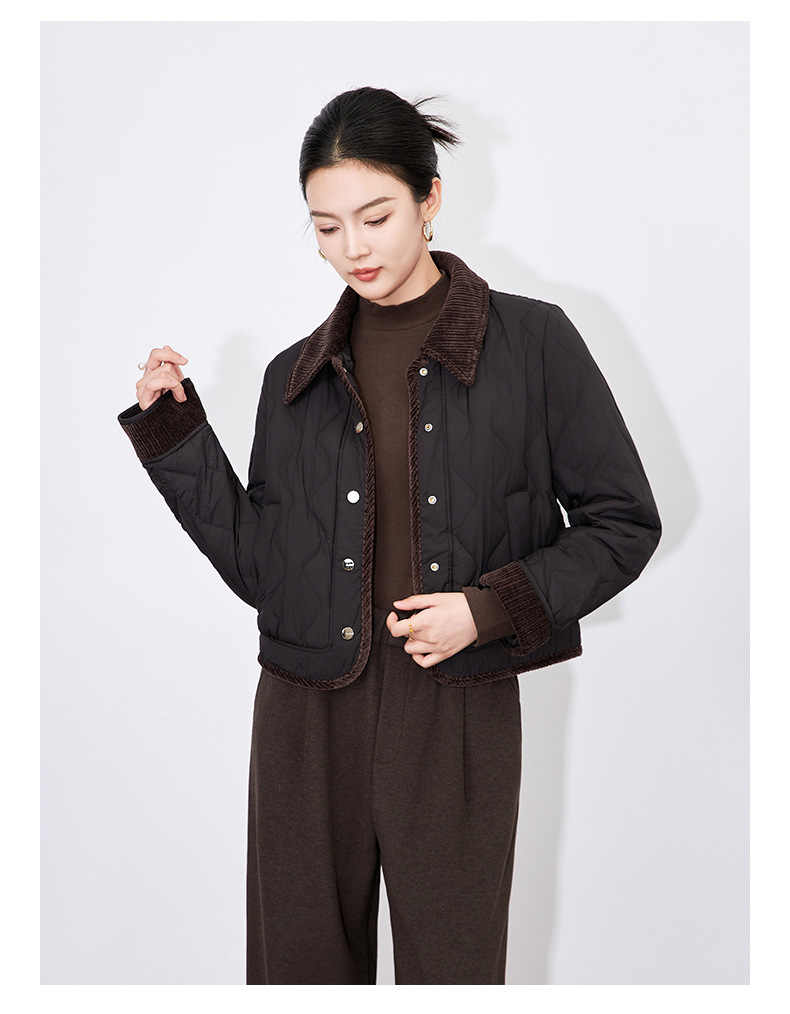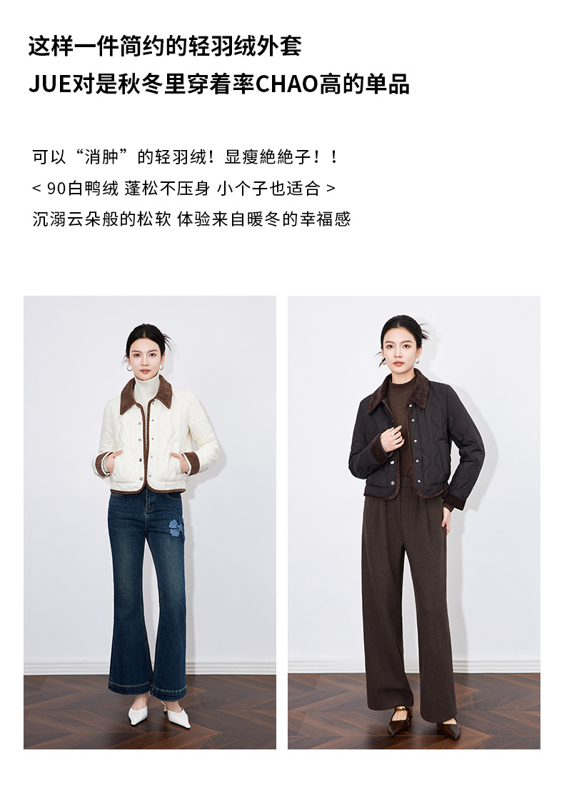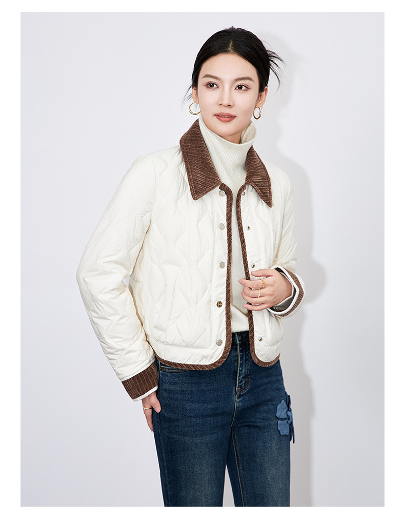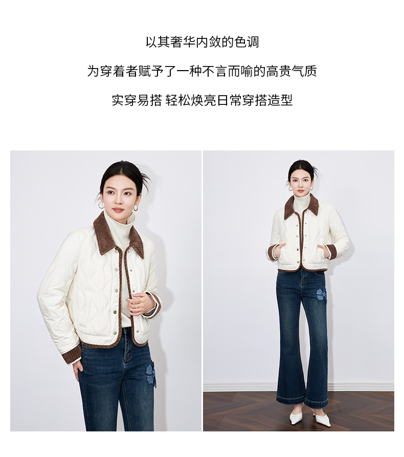 【高货wl】全新升级【铂金会员441/天猫589/差价148】(02037) 洛诗琳时尚复古通勤撞色翻领加厚保暖休闲减龄羽绒服外套