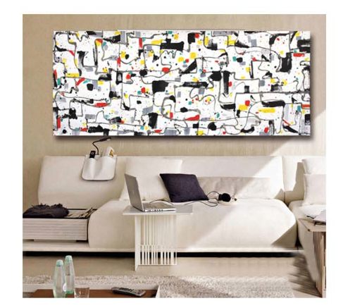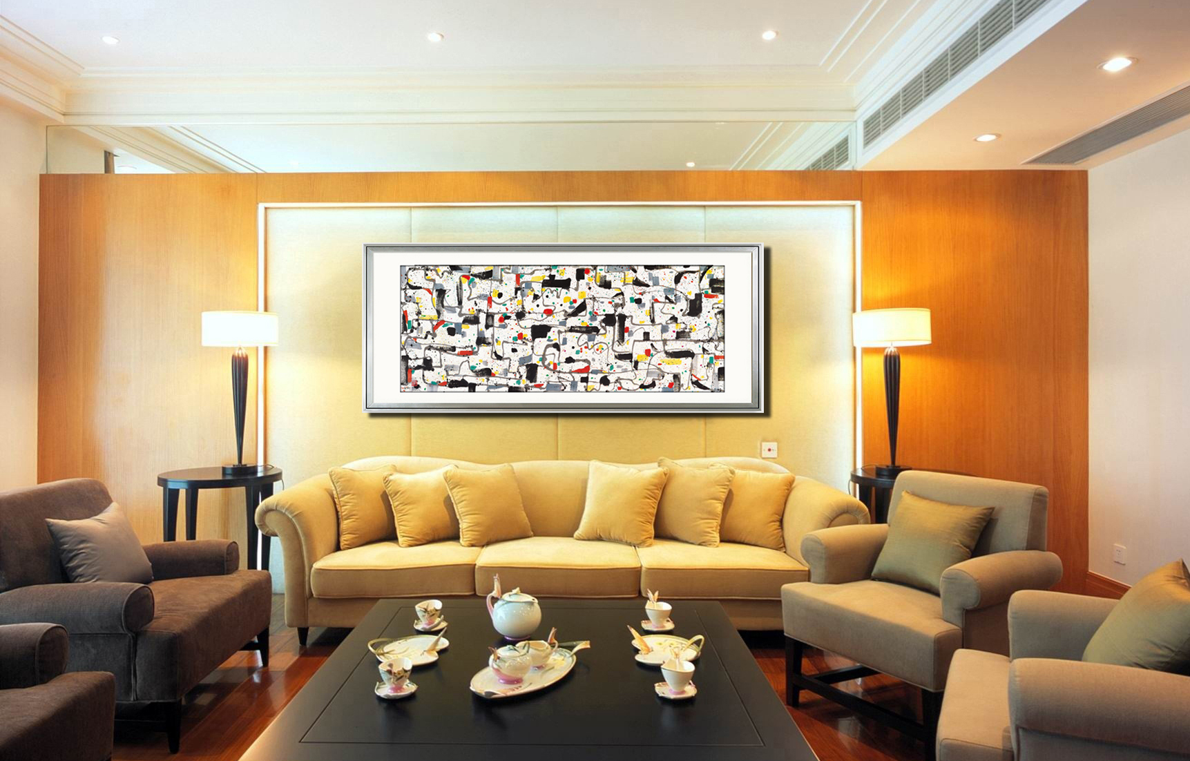 黑白灰的系统中加入色彩系统,以点线披离的网状交织为主,色有冷暖,点有浓淡,线有疾徐,欢快的点线表达了自由的心灵,具有音乐一样的洗练与和谐,如沐江南春晓,日朗风清。