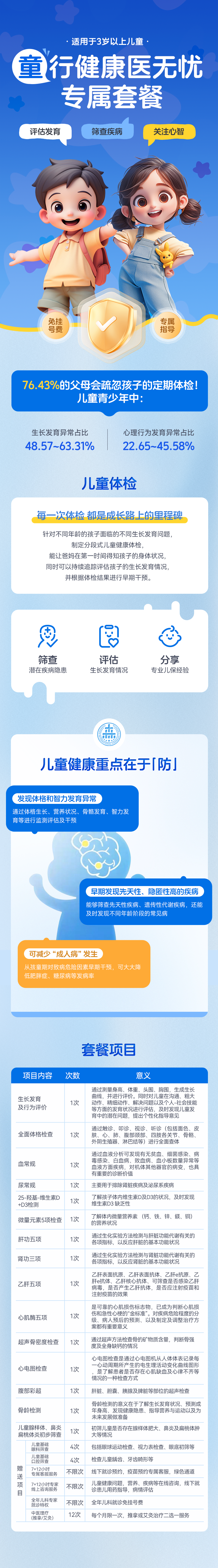 “童行健康” 医无忧儿童专属体检套餐