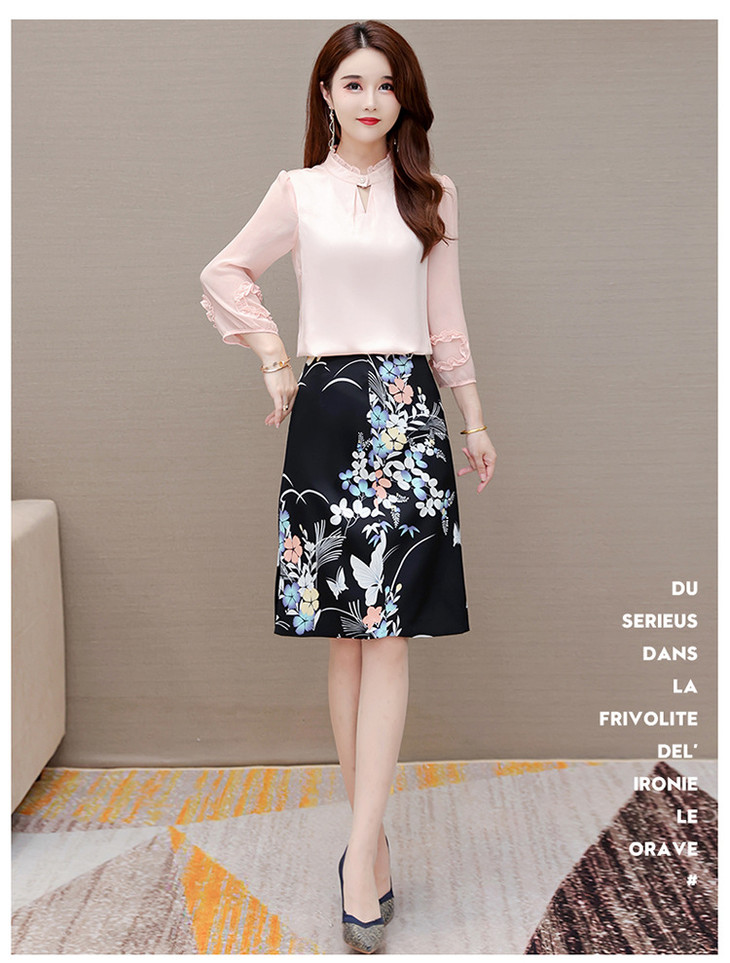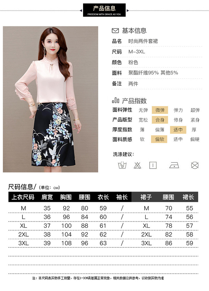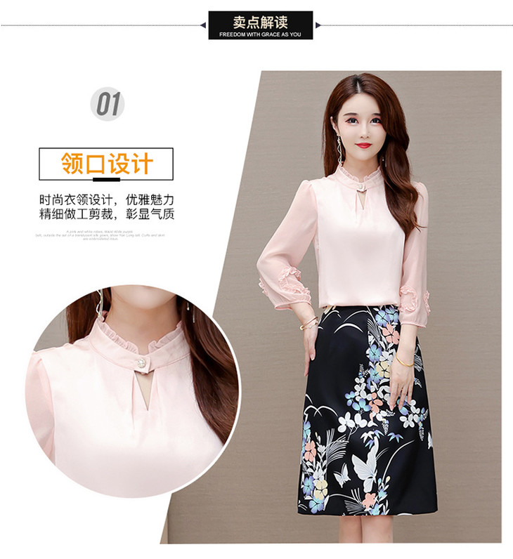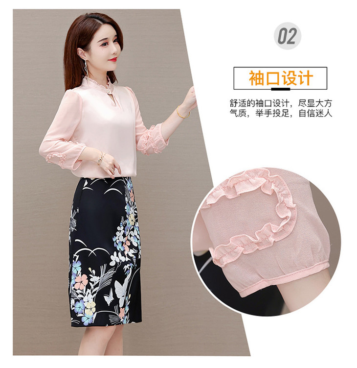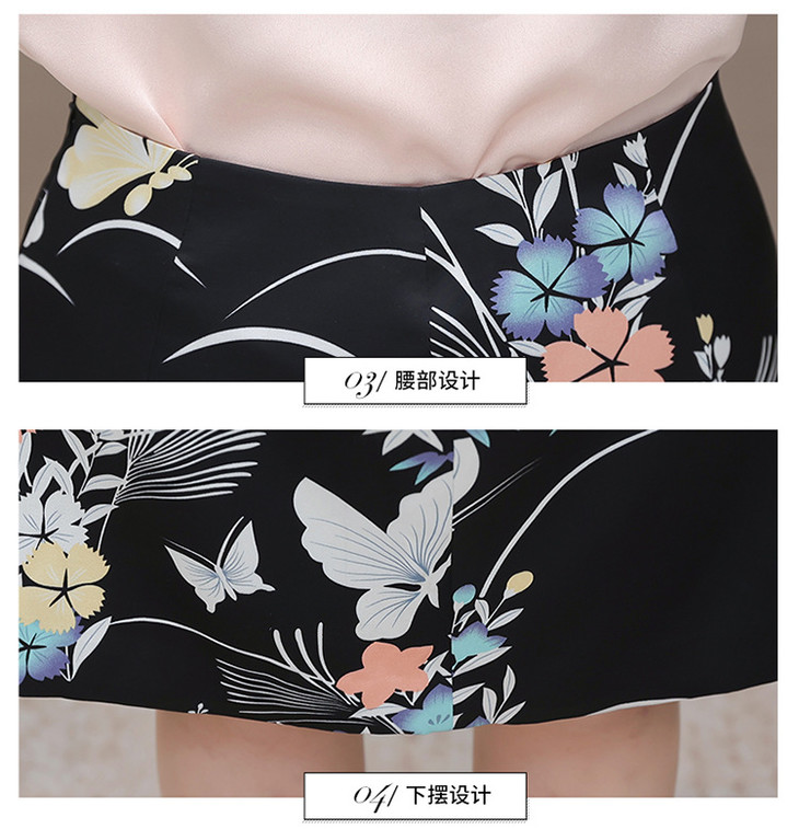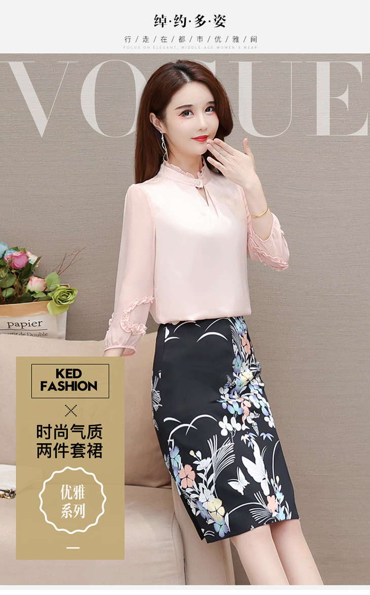 QYM-KED-ZY2108-Y时尚新款粉红色小衫+高腰印花包臀裙