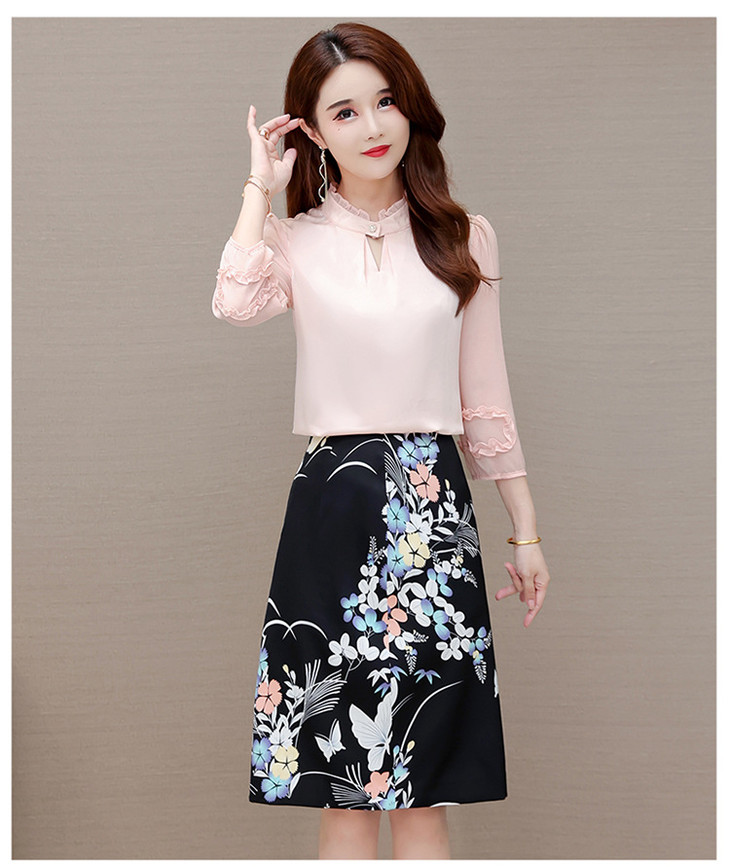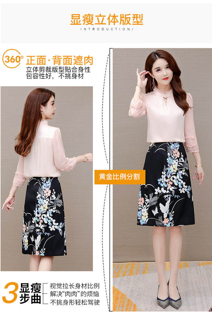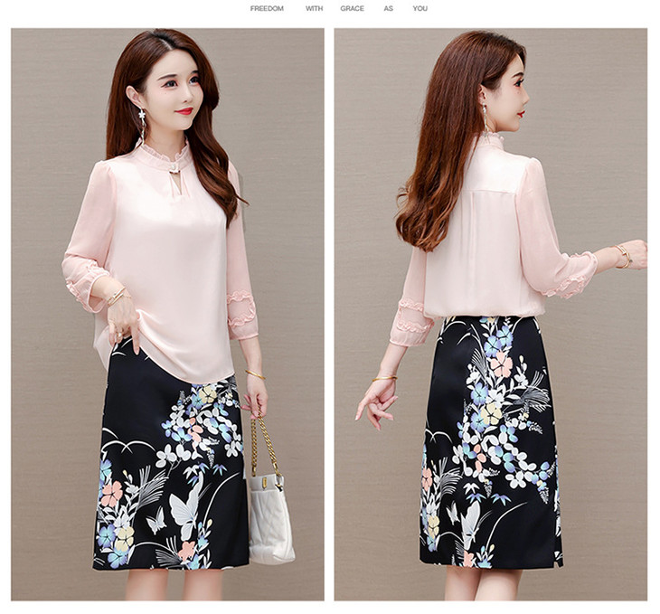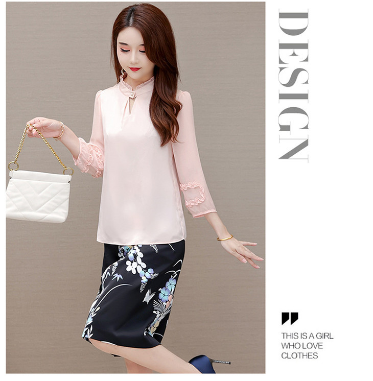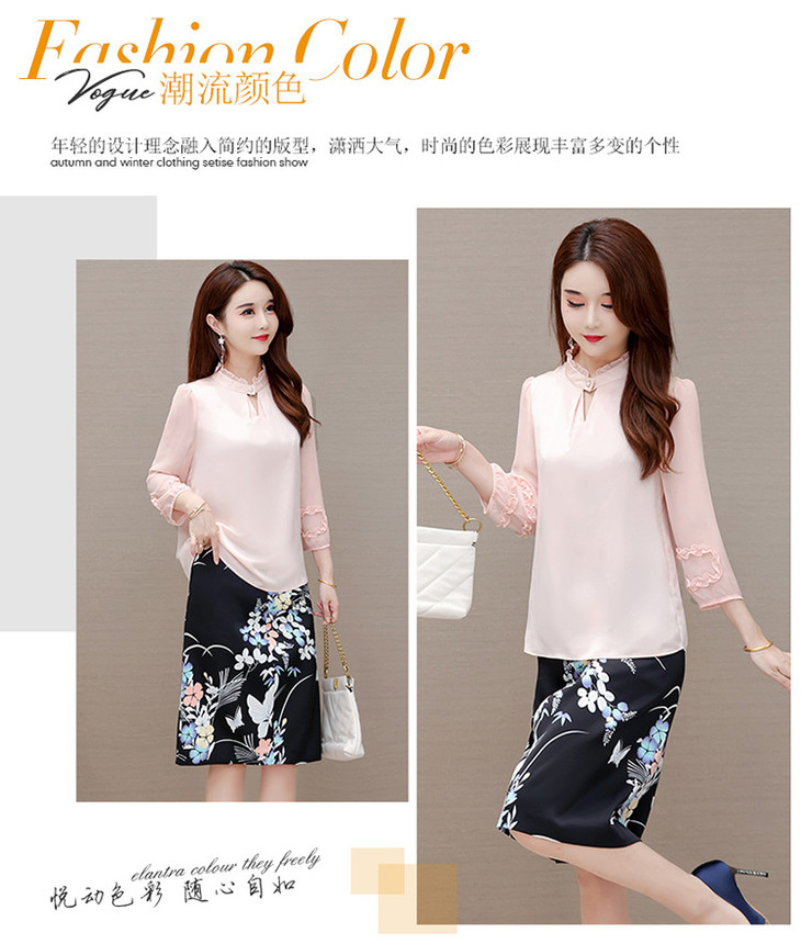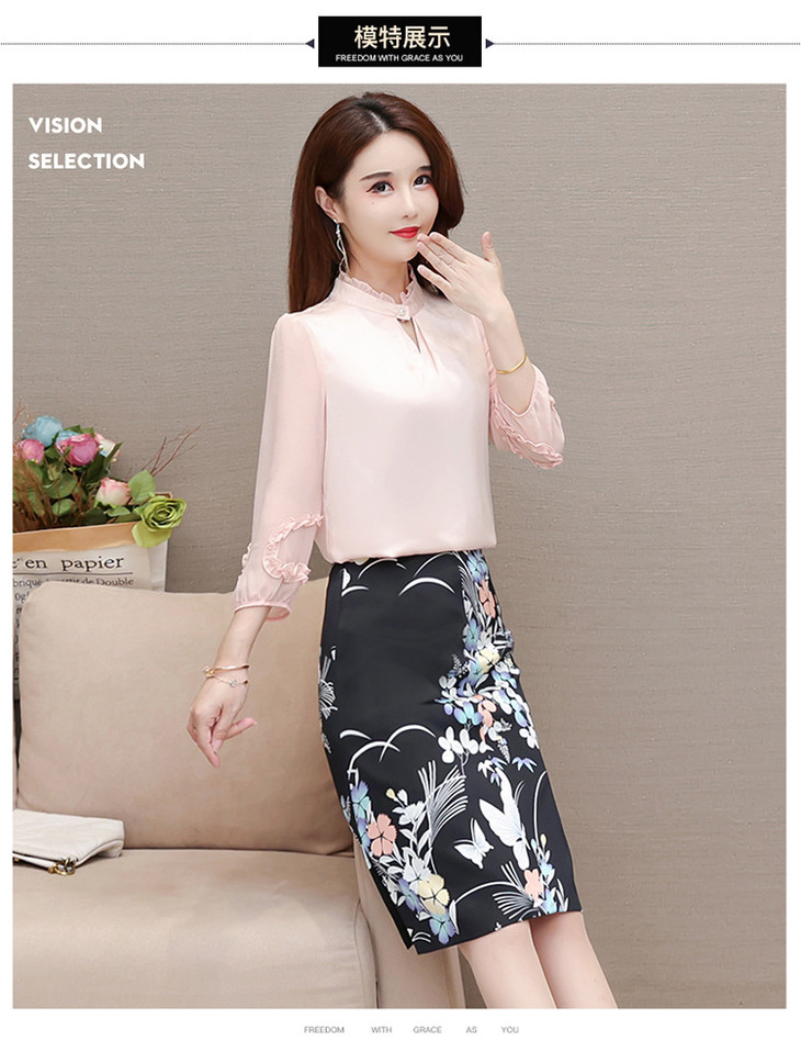 QYM-KED-ZY2108-Y时尚新款粉红色小衫+高腰印花包臀裙