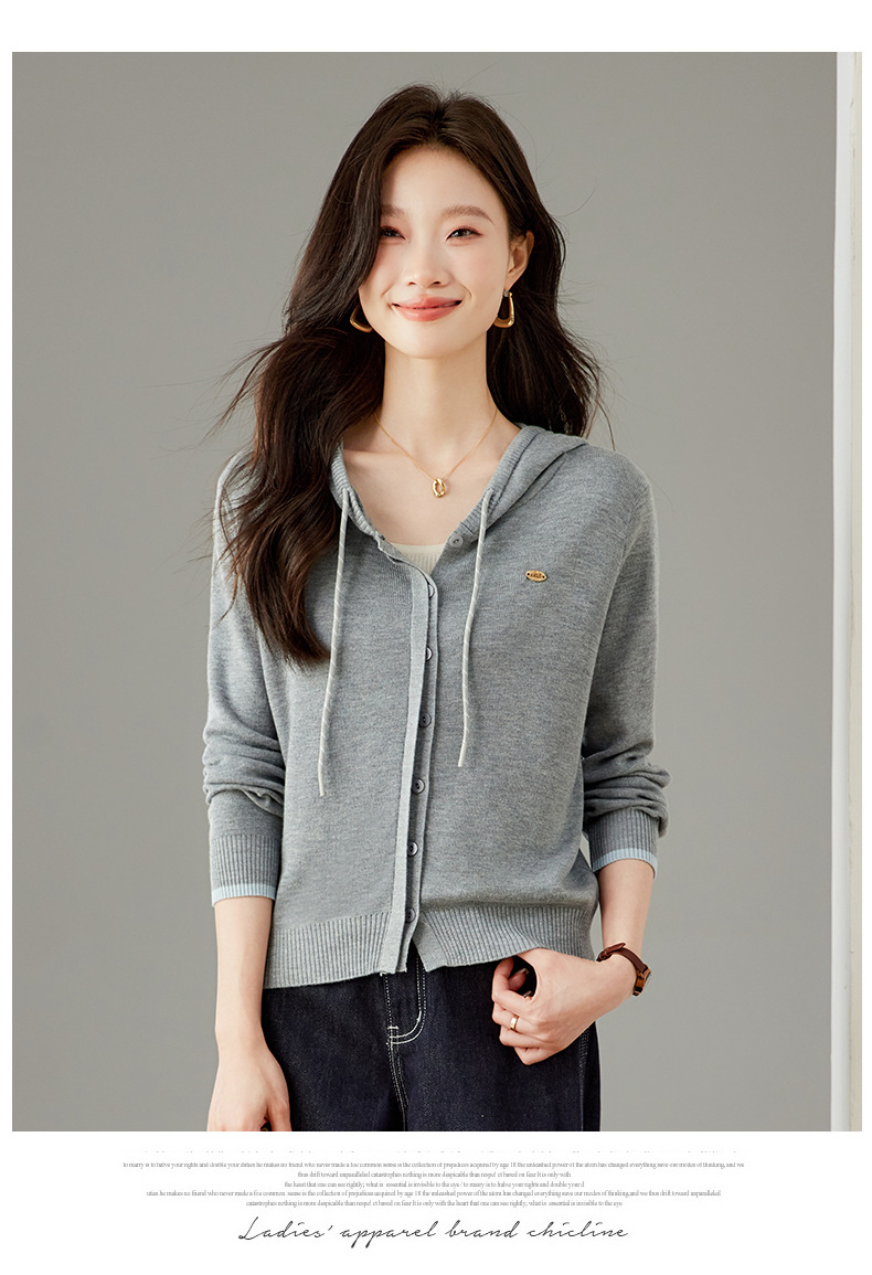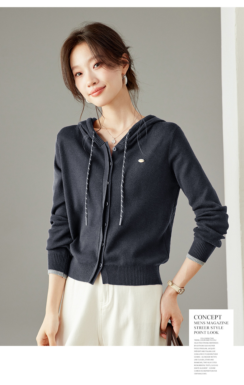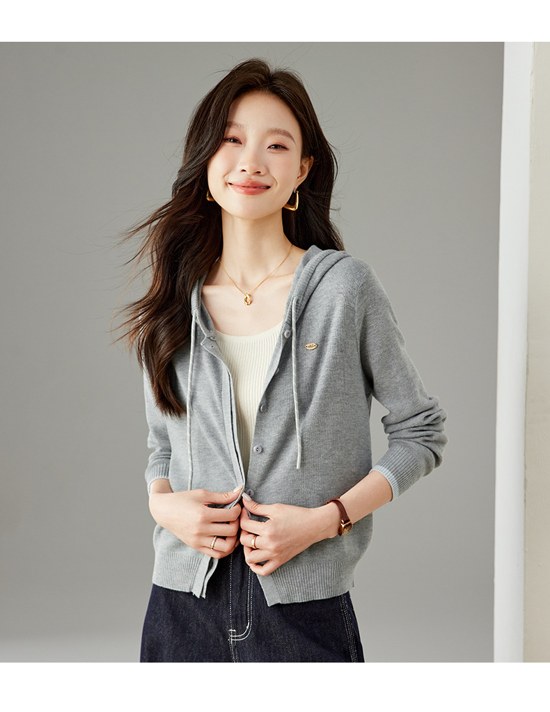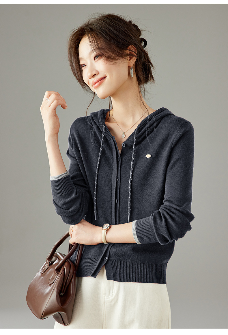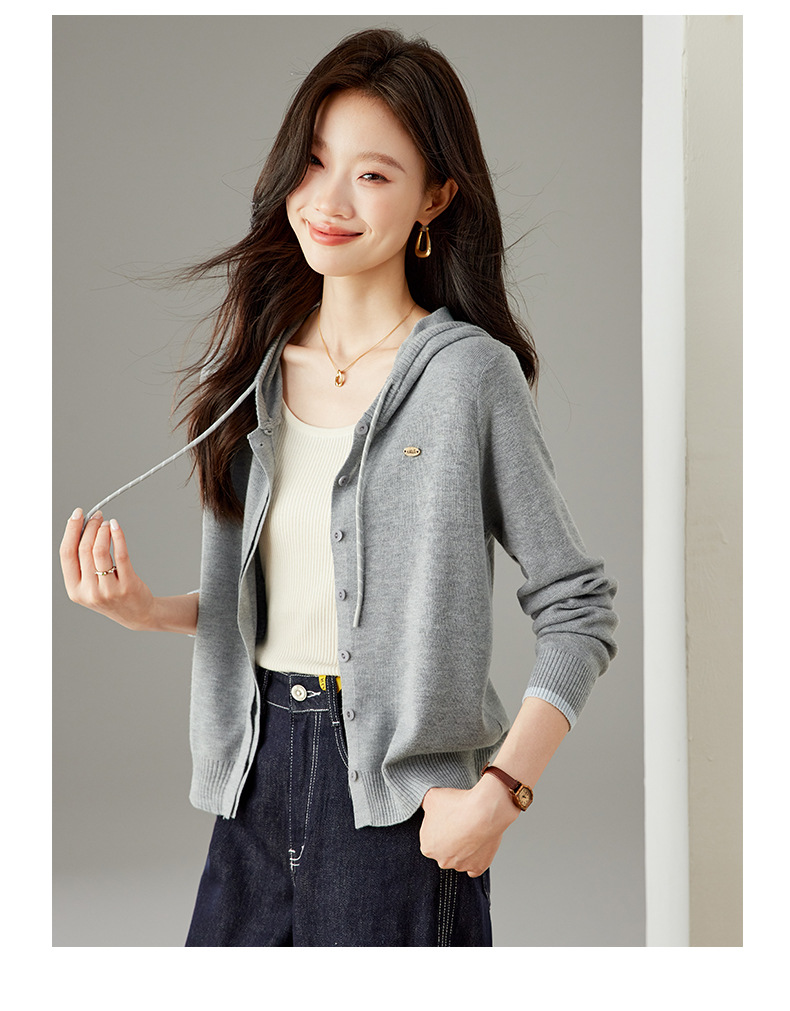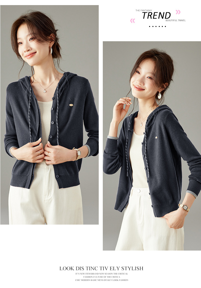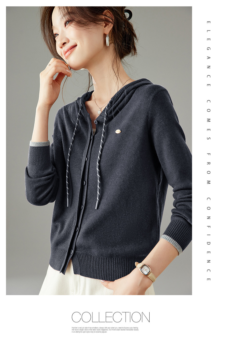 SC6-5811 2025秋季新款韩版连帽针织开衫女休闲外套薄款卫衣单排扣百搭上衣