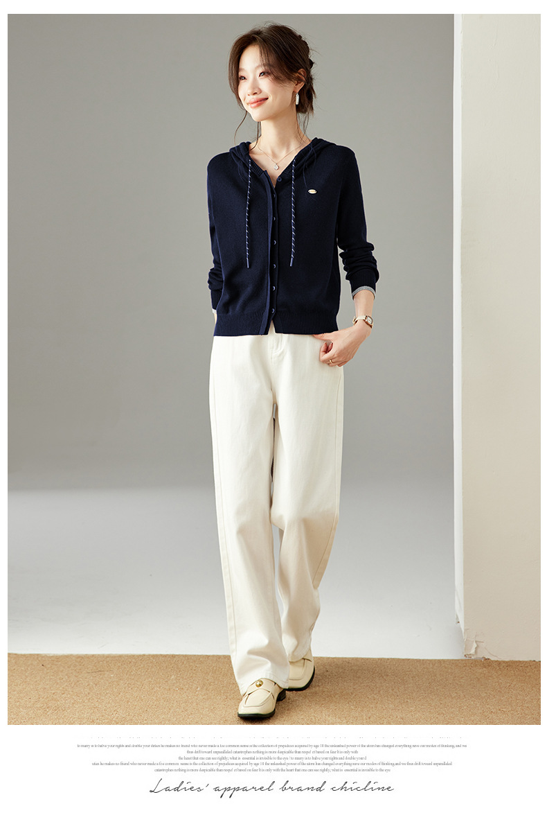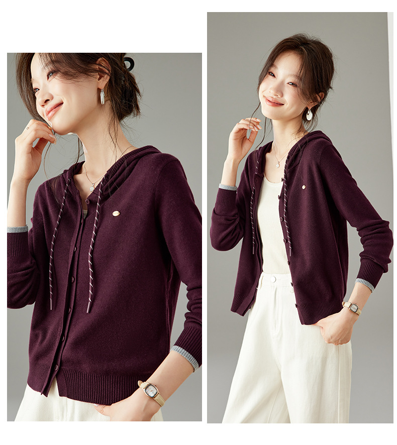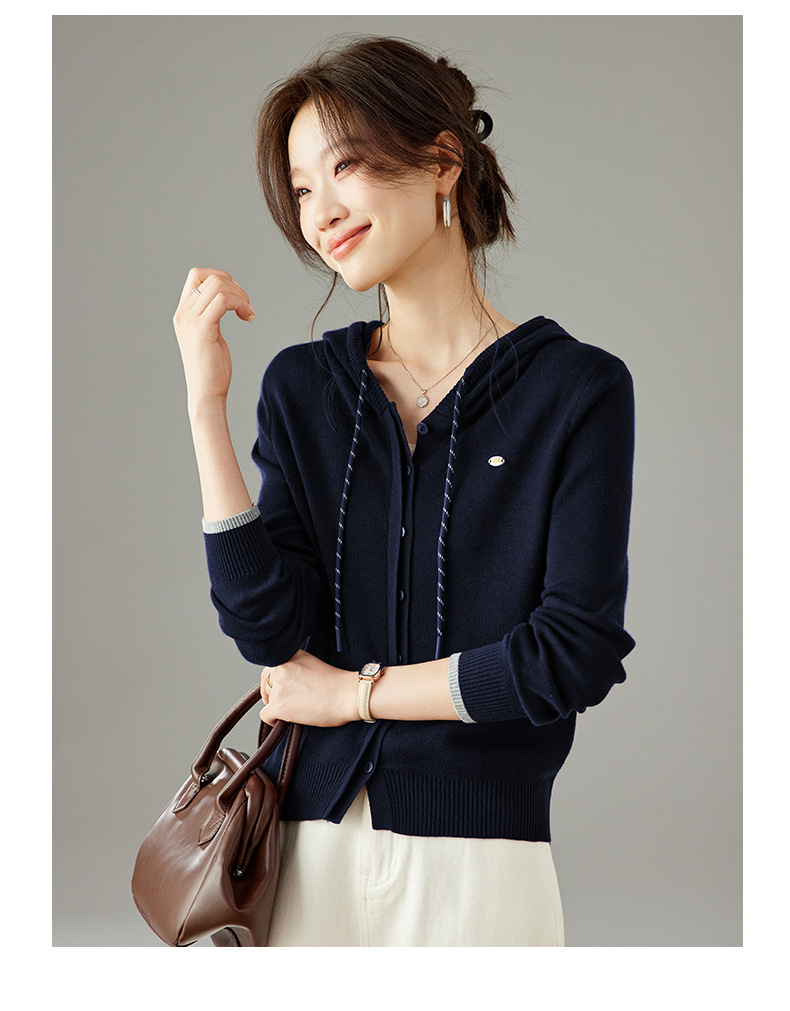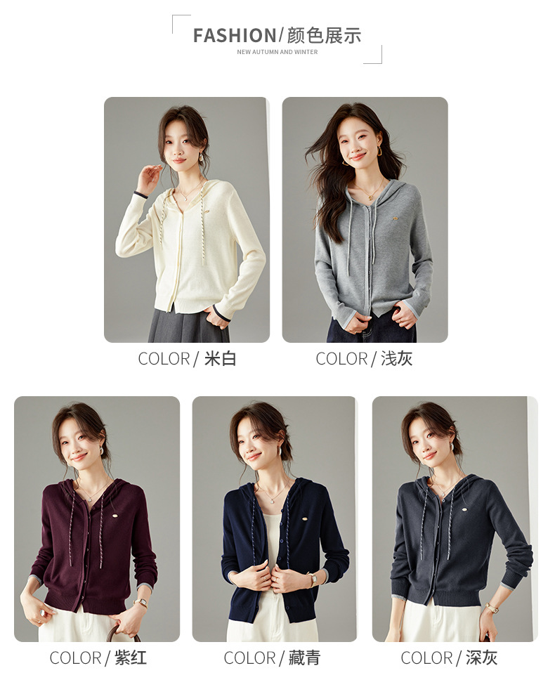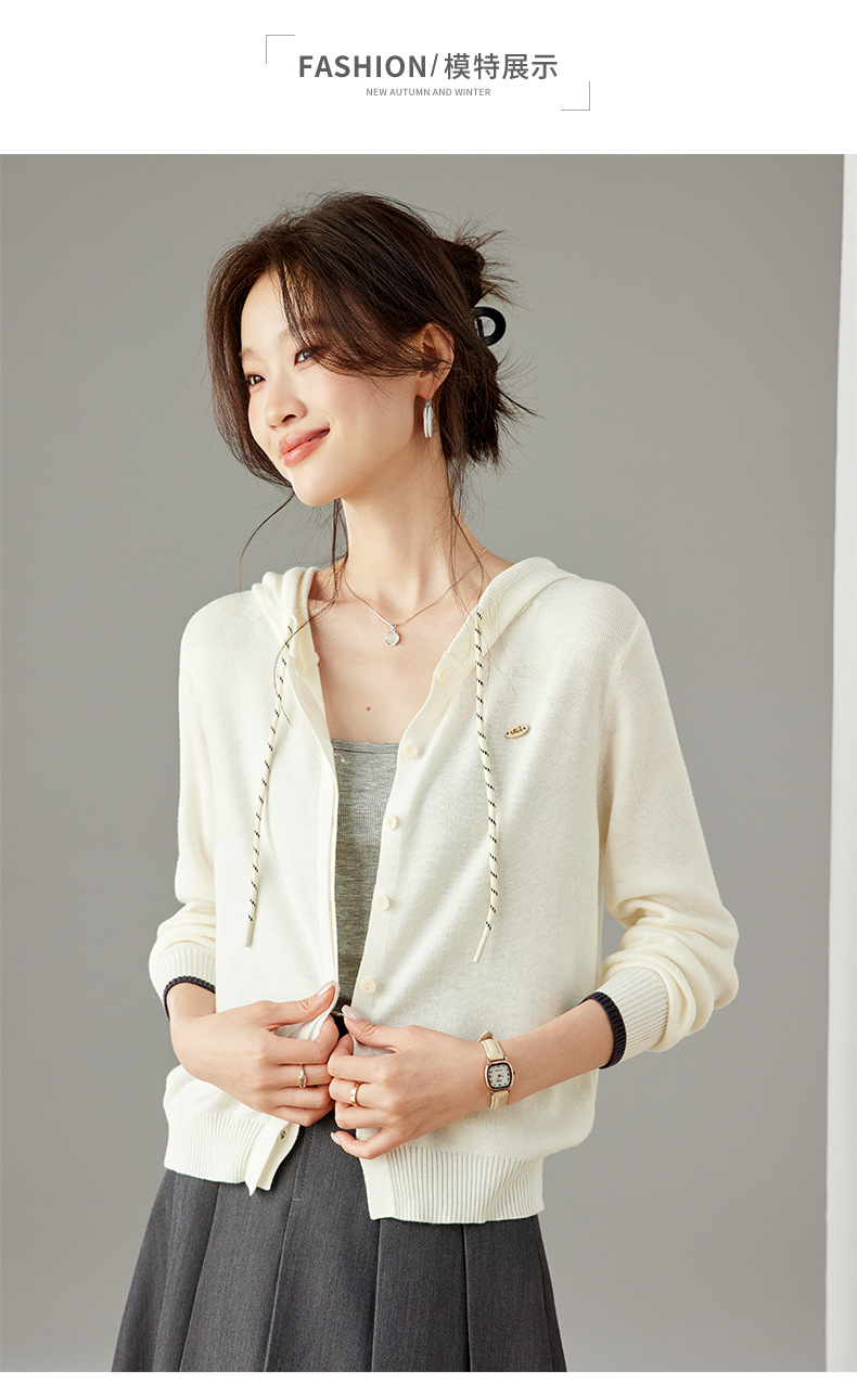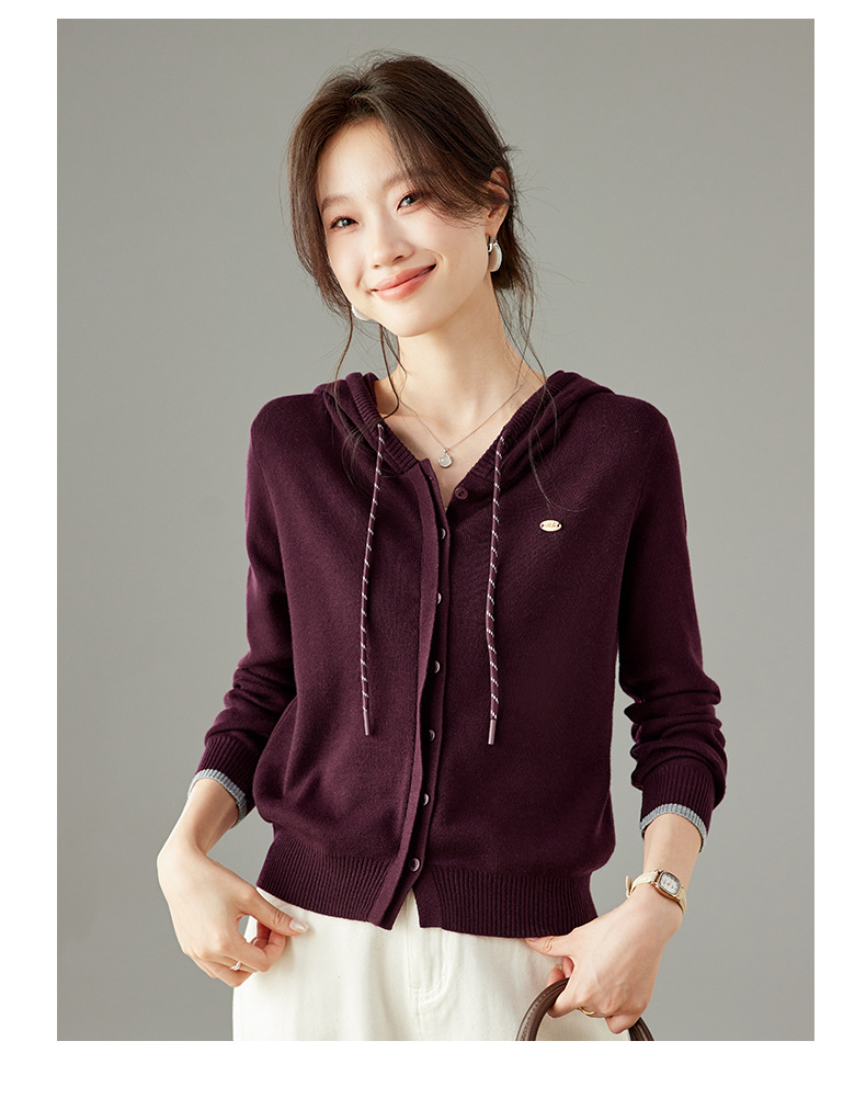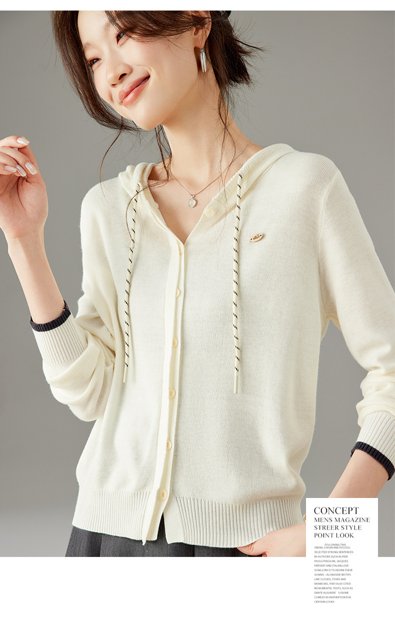 SC6-5811 2025秋季新款韩版连帽针织开衫女休闲外套薄款卫衣单排扣百搭上衣