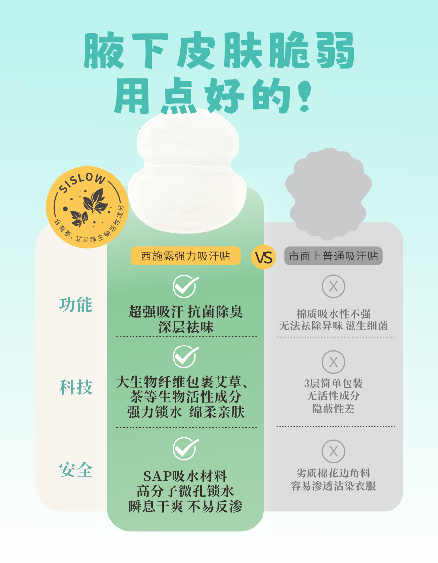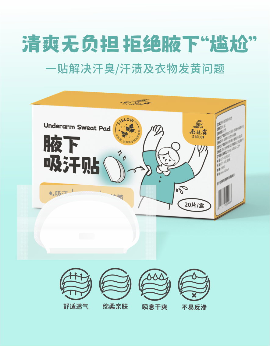 【新品抢购】西施兰腋下吸汗贴 抗菌除臭 超薄隐形止汗贴 男女军训腋窝防汗贴
