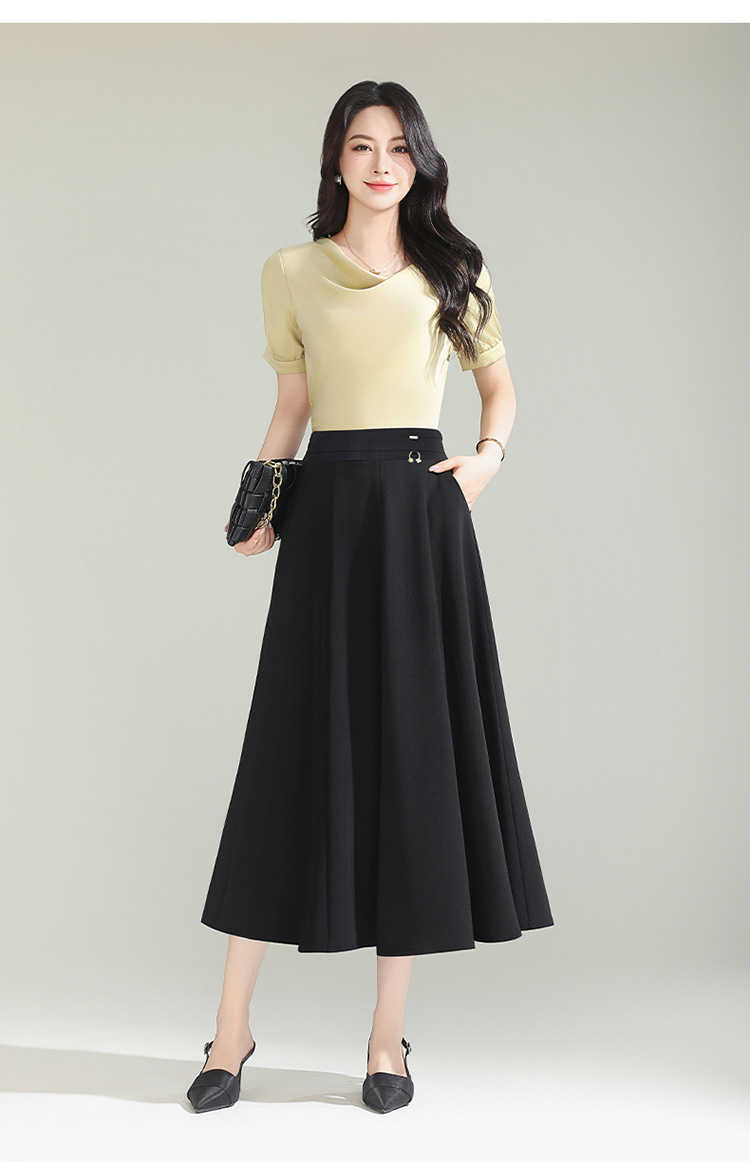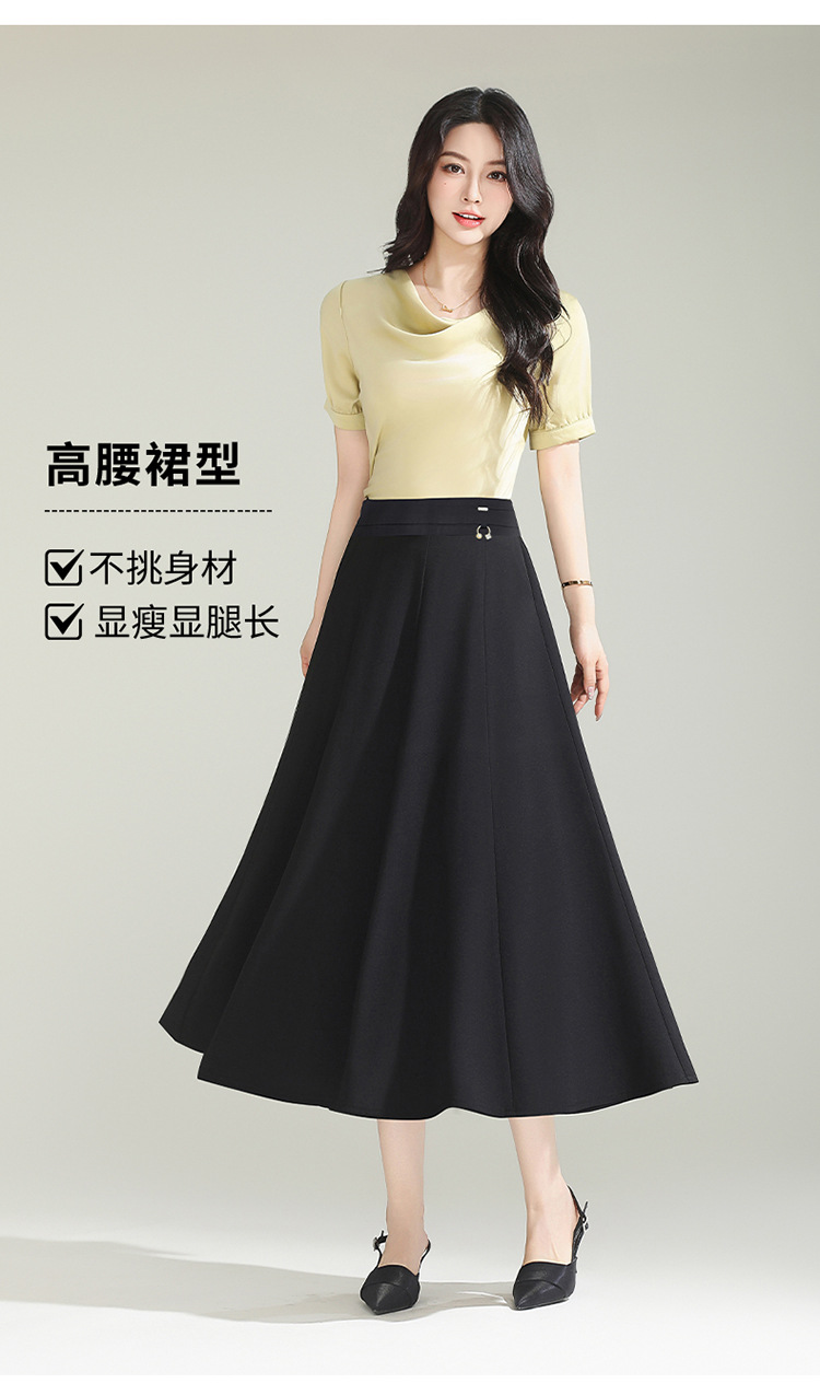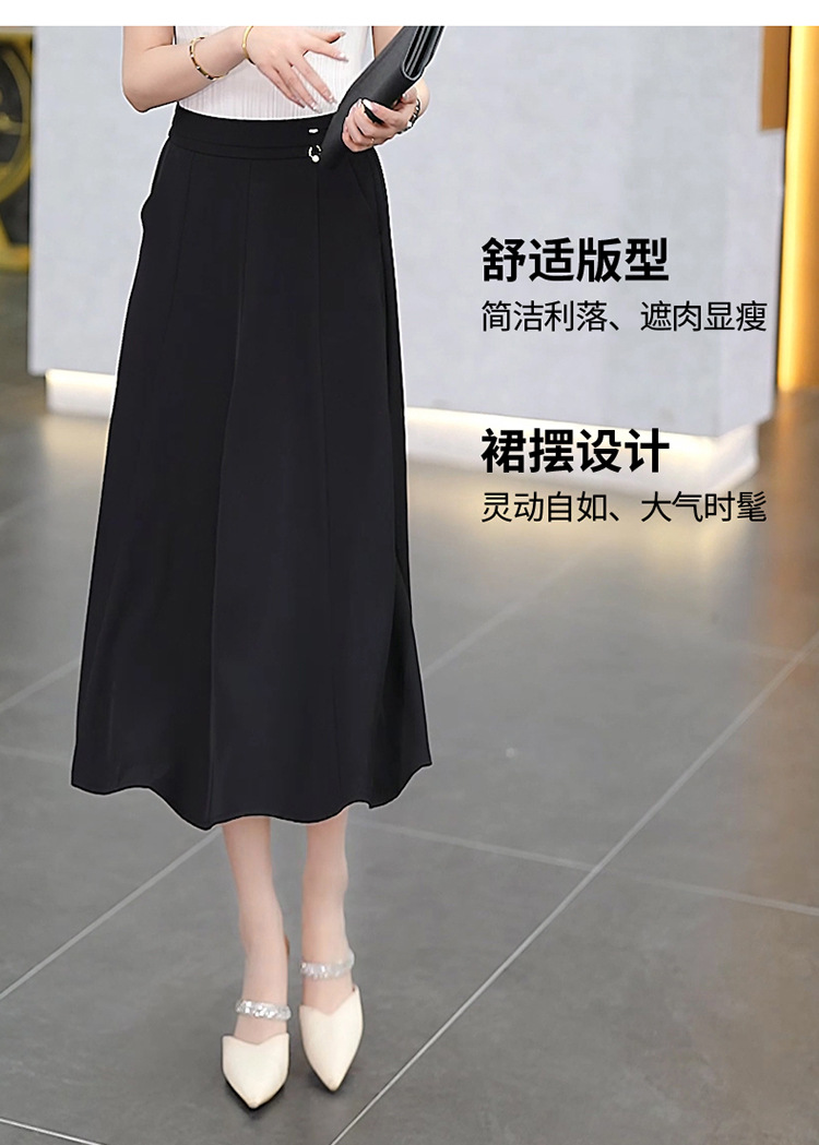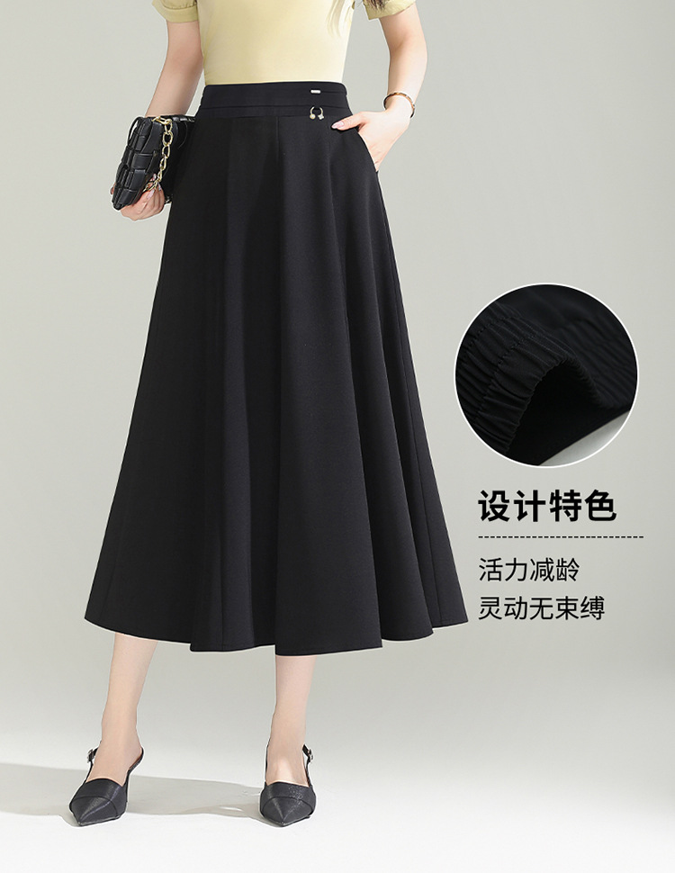 MYX-YGLR-M78-L垂坠感通勤百褶A字大摆裙2025夏季新款松紧腰休闲长裙黑色半身裙