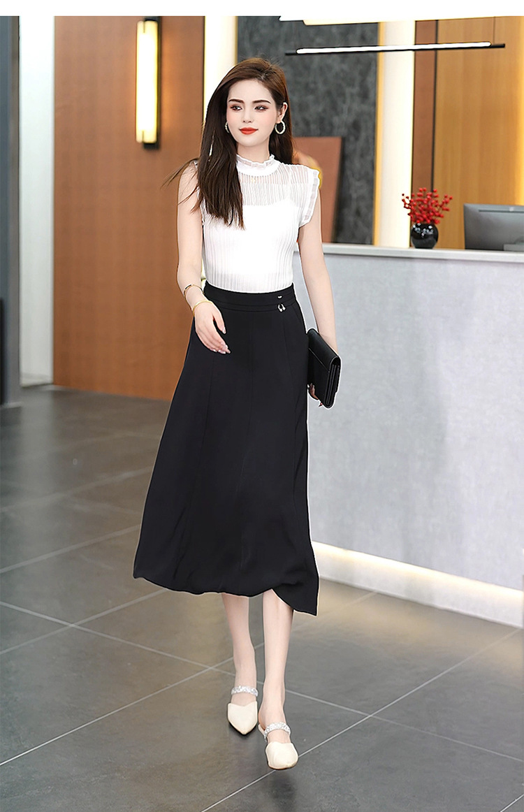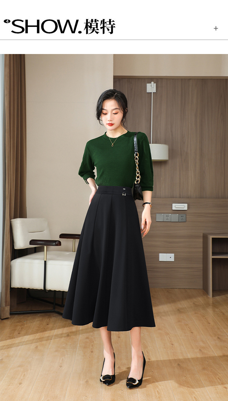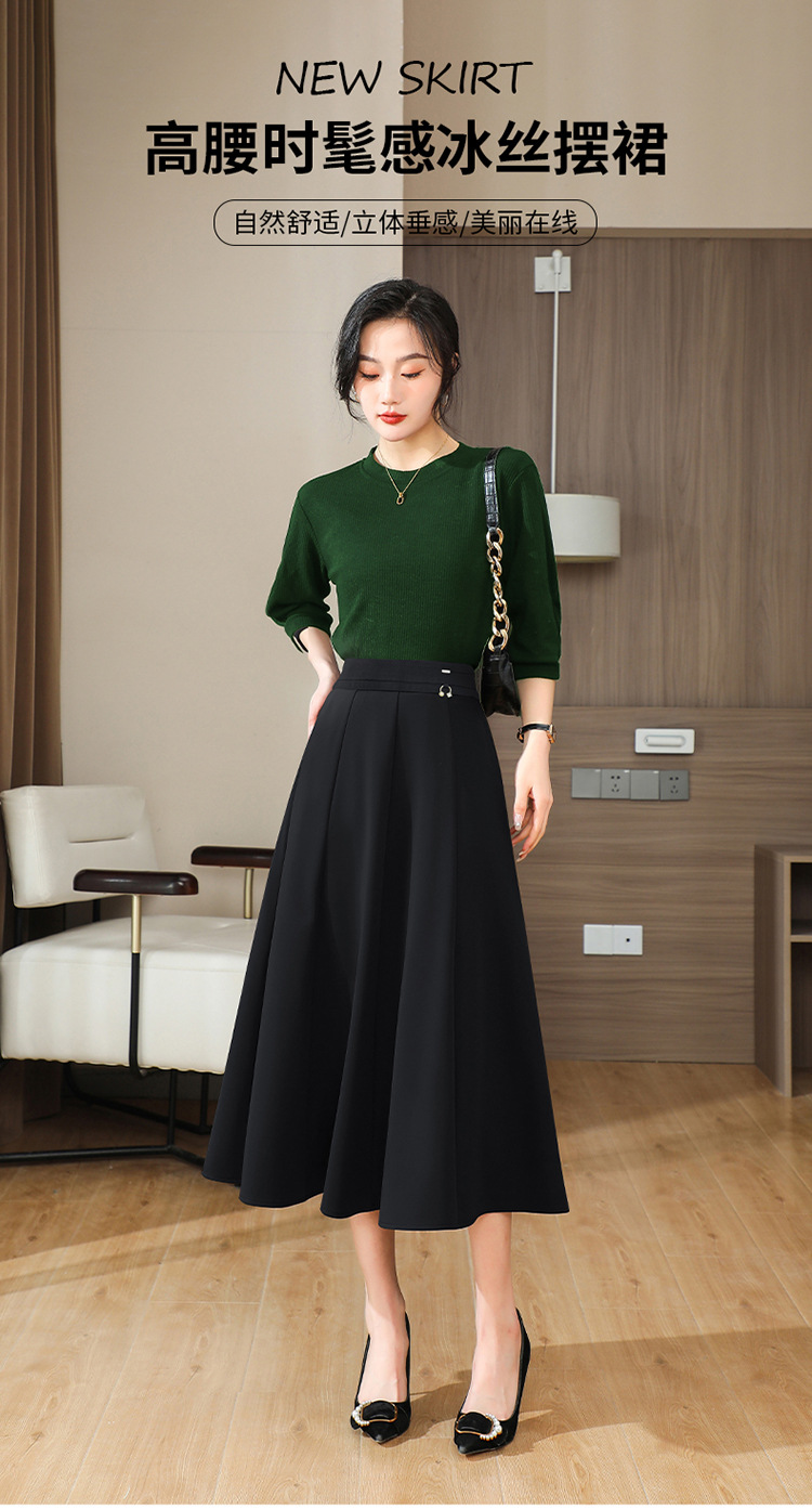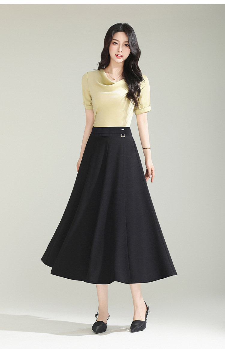 MYX-YGLR-M78-L垂坠感通勤百褶A字大摆裙2025夏季新款松紧腰休闲长裙黑色半身裙