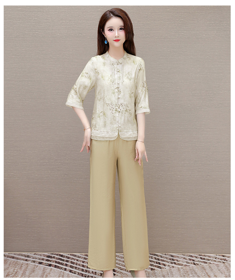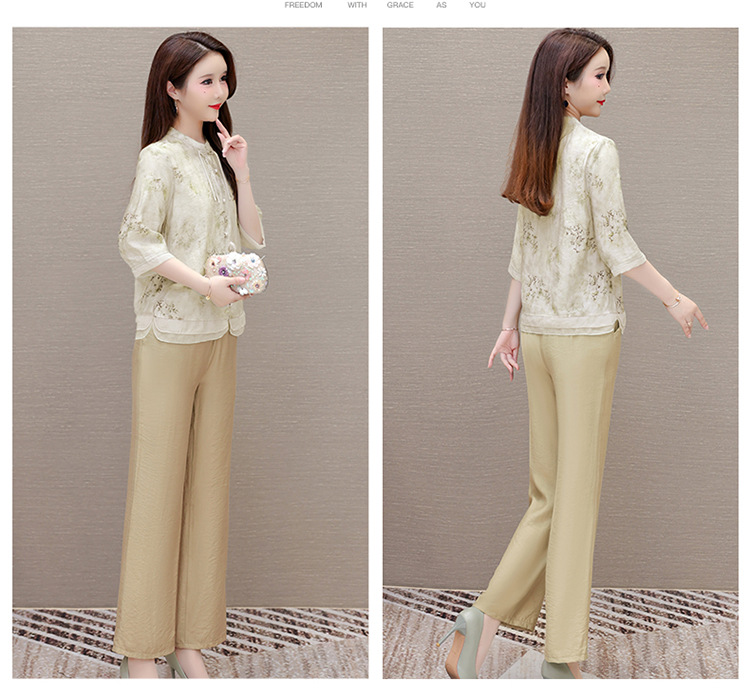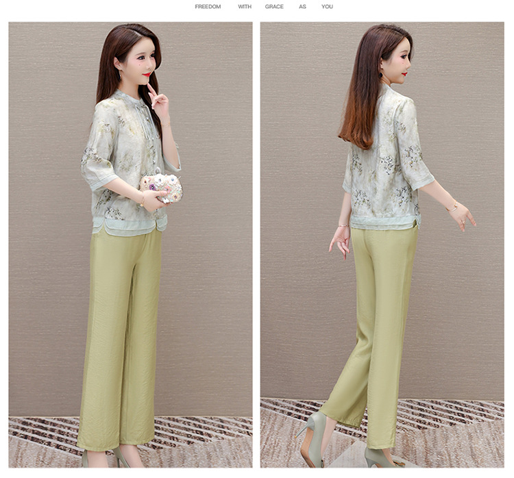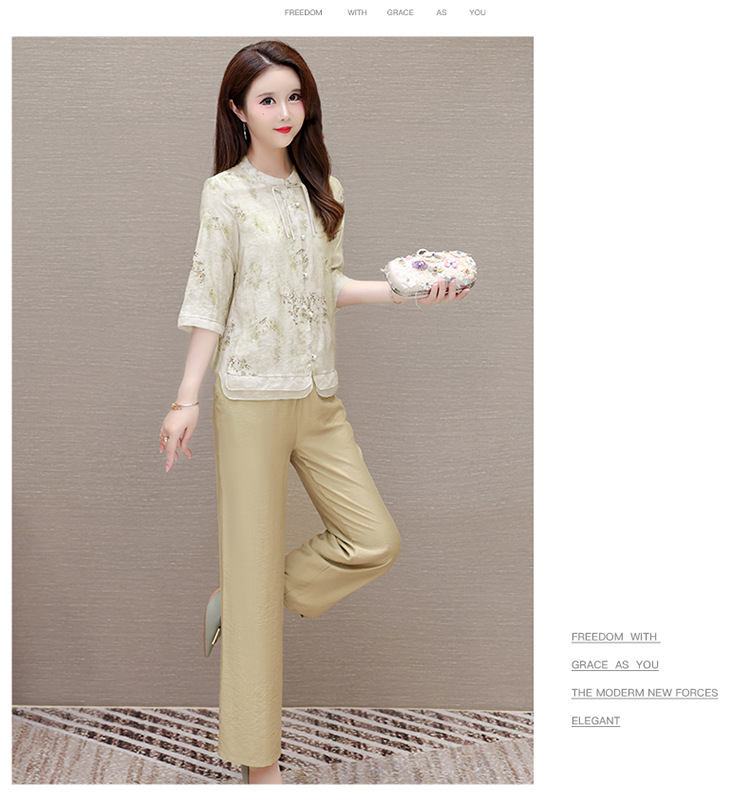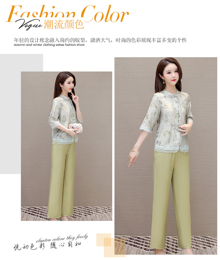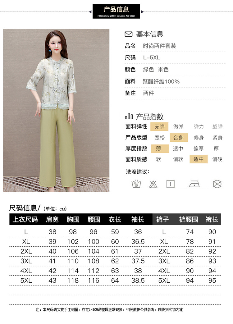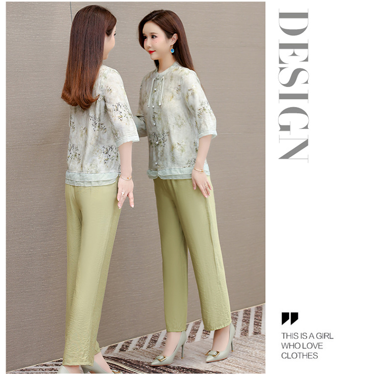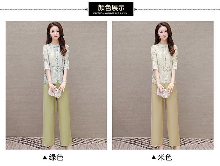 QYMKED-6436 -Y时尚两件套春夏新款中袖印花休闲裤直筒长袖宽松套装长裤子