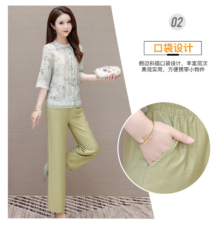 QYMKED-6436 -Y时尚两件套春夏新款中袖印花休闲裤直筒长袖宽松套装长裤子 商品图3