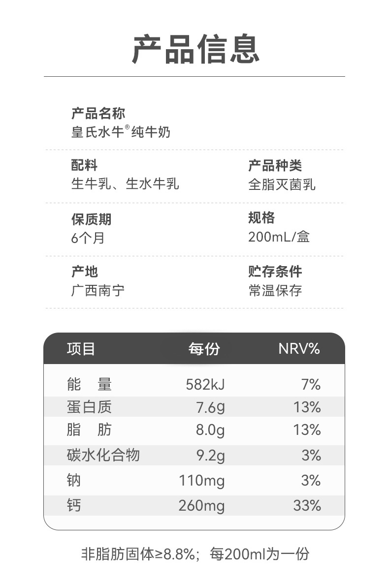 皇氏水牛 3.8g水牛纯奶200ml*10 广西印象 自带香甜 送礼佳品