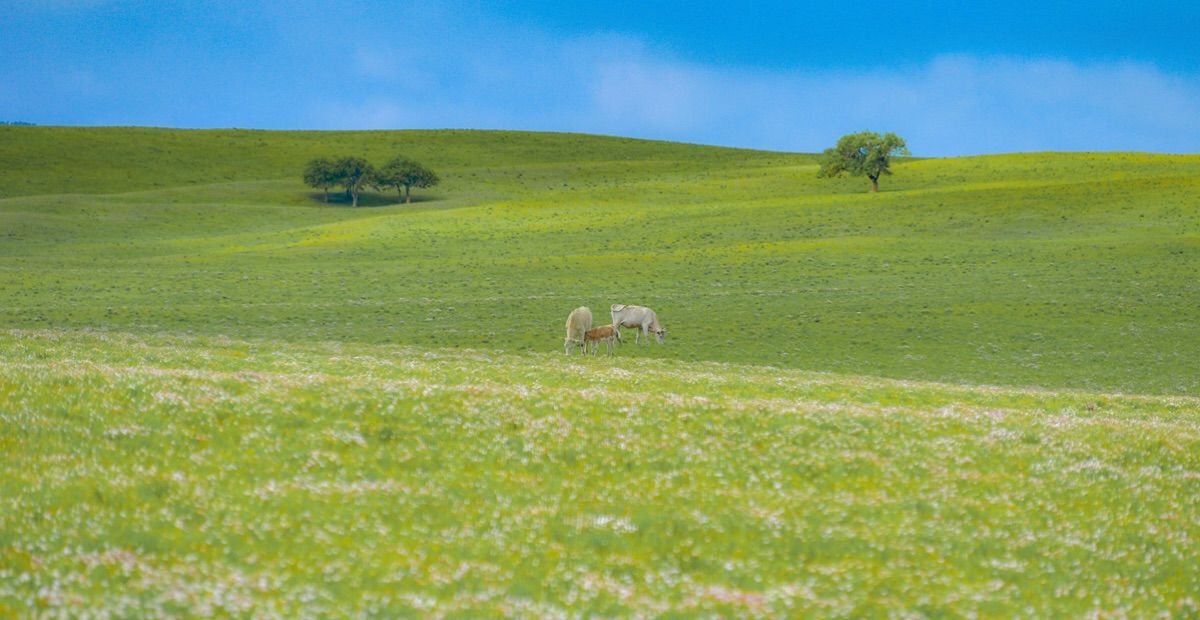 走进 锡林郭勒大草原 ,这片被《中国国家地理》盛赞的 “中国最美六大草原之一”。即使在旅游旺季,也能享受 “天苍苍,野茫茫” 的专属浪漫。微风拂过,绿浪翻涌,与蓝天、白云交织成一幅气势磅礴的画卷。