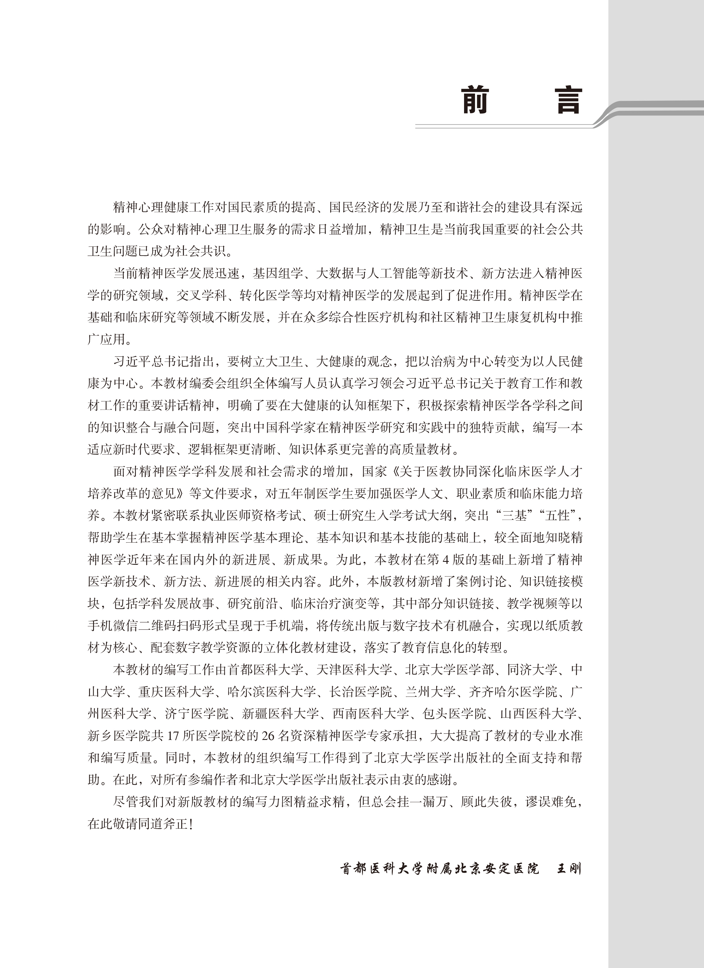 精神病学(第5版)王刚 毛富强 主编 北医社