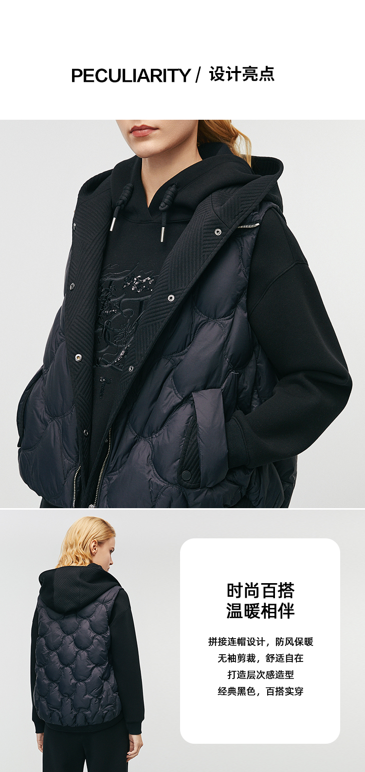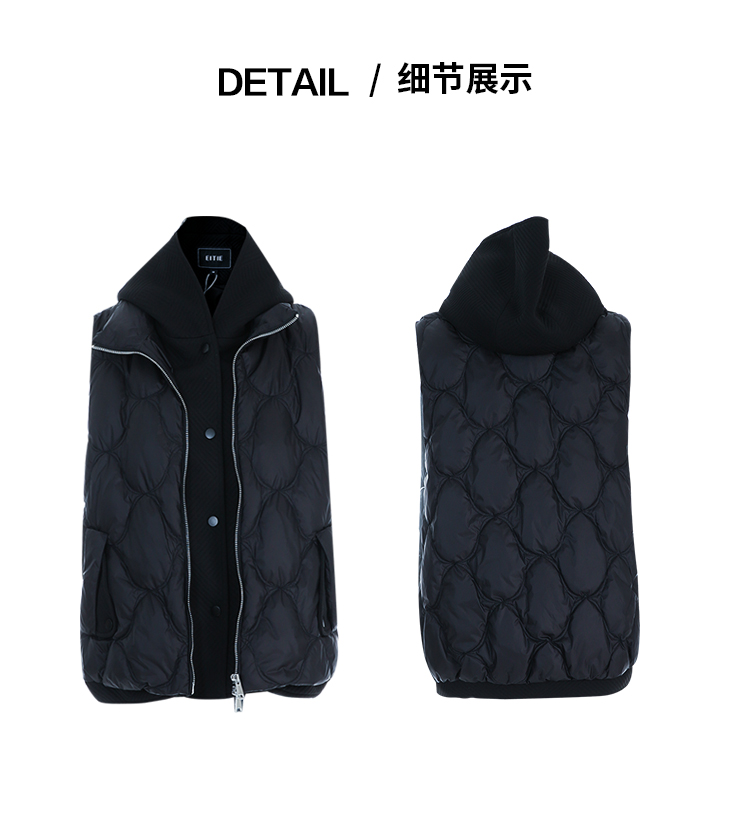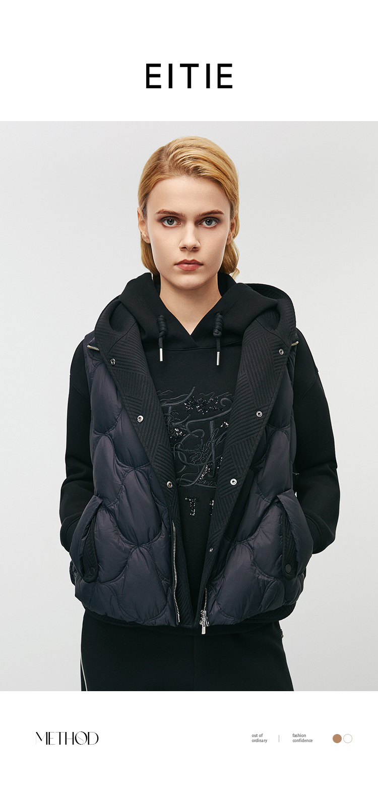 EITIE爱特爱冬季新款时尚保暖防风显瘦连帽马甲羽绒服7911602