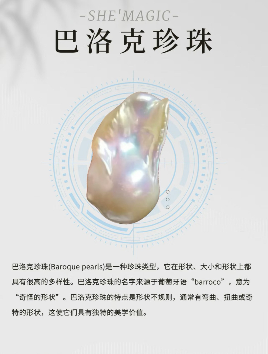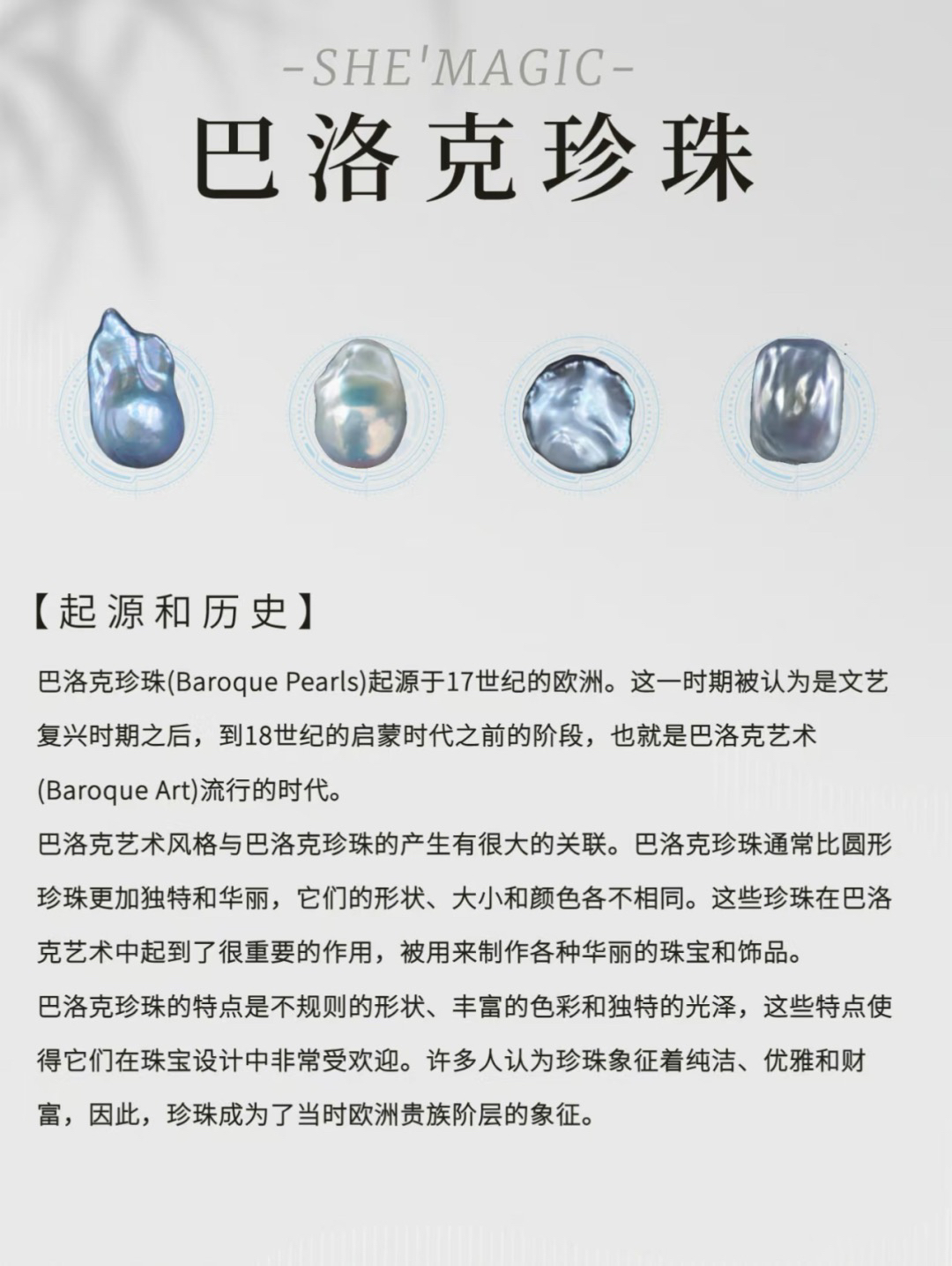 ▫️光泽多变:巴洛克珍珠的光泽可以从柔和到强烈,其光泽和颜色的变化为珍珠增添了独特的魅力。