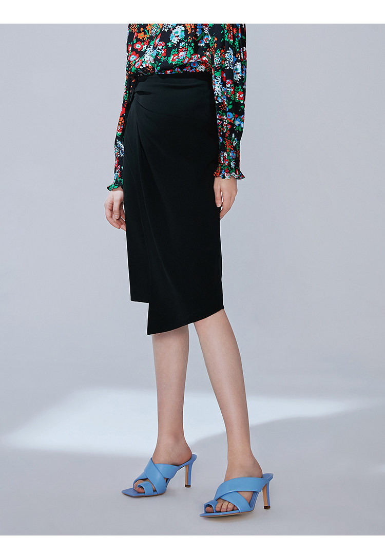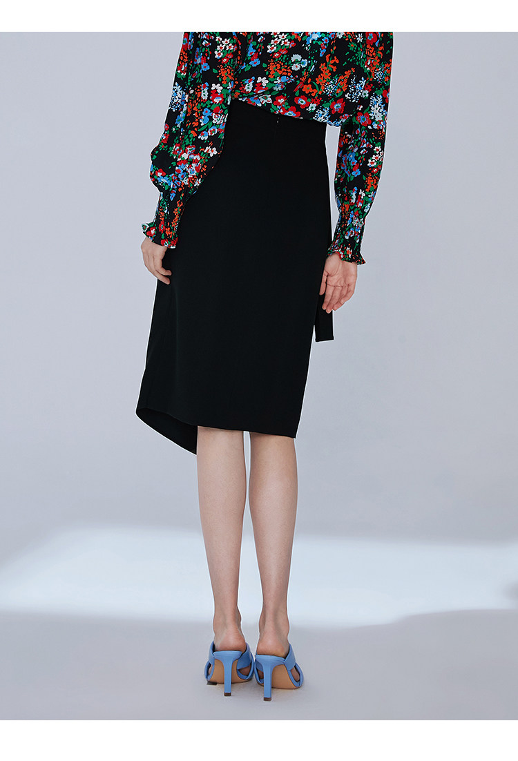 VIMAGE纬漫纪秋季新款时尚通勤不规则下摆修身包臀半身裙女裙V1406008