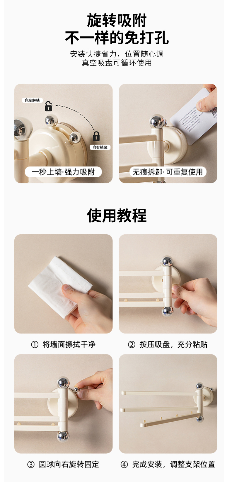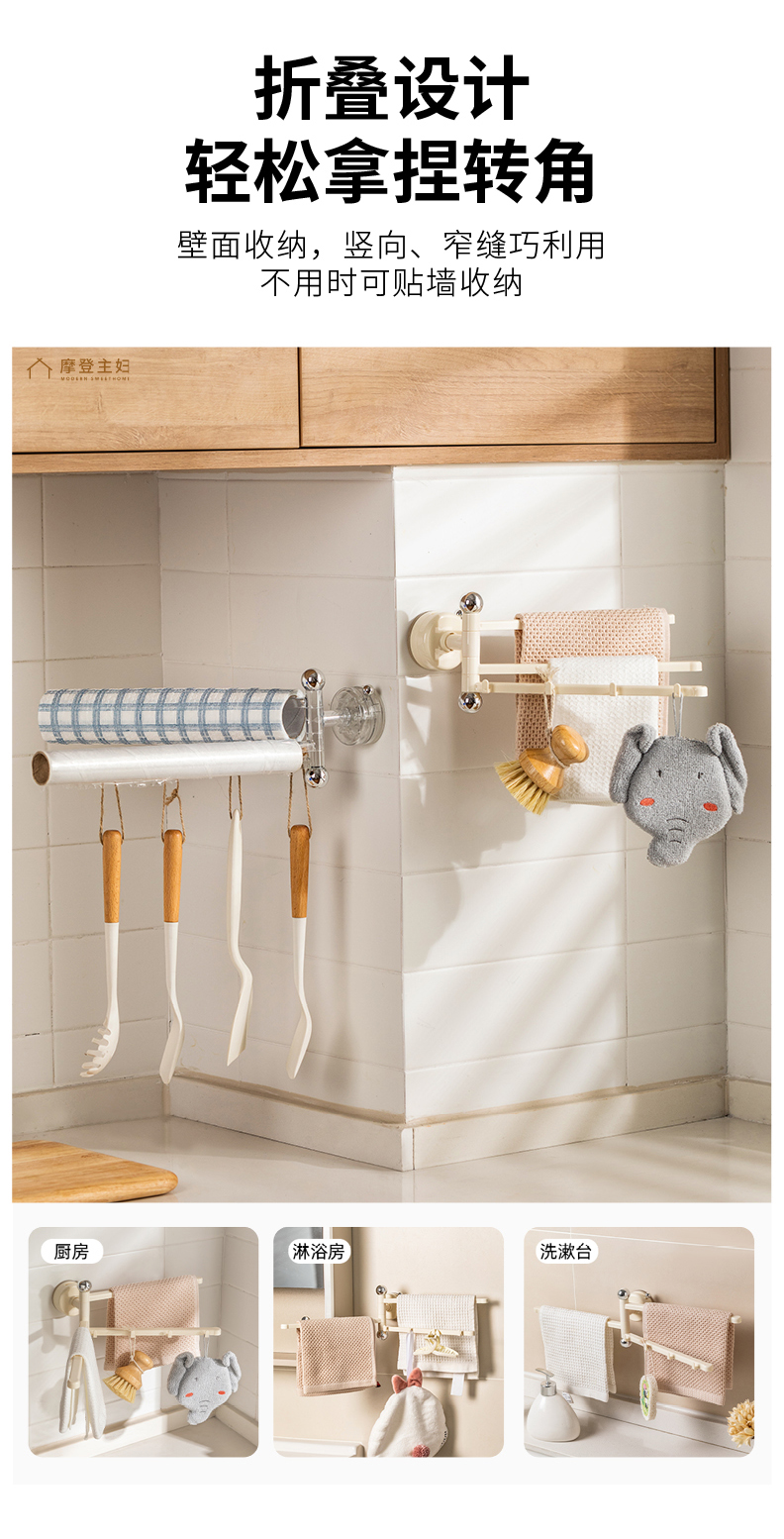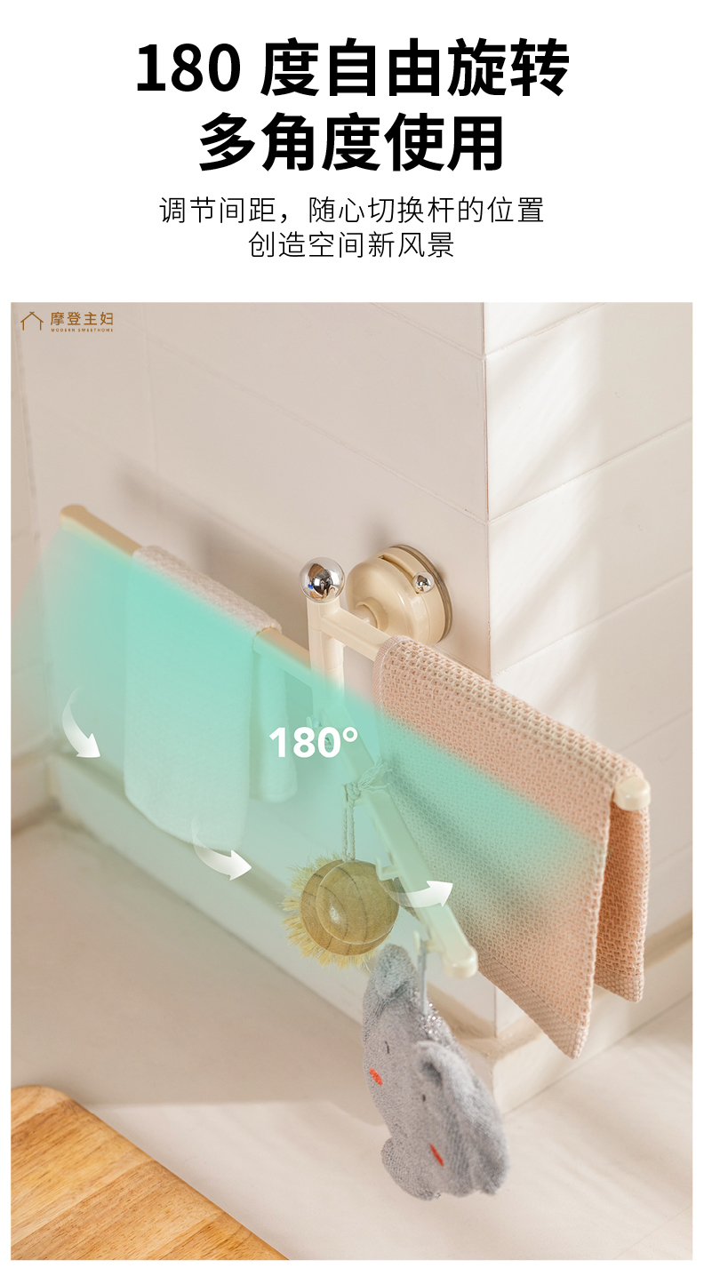 摩登主妇吸盘抹布架壁挂免打孔厨房水槽洗碗海绵擦挂架沥水置物架