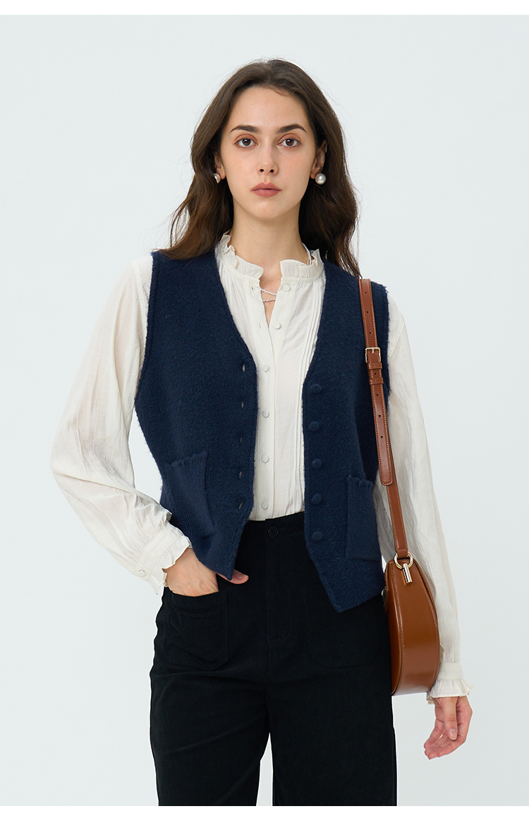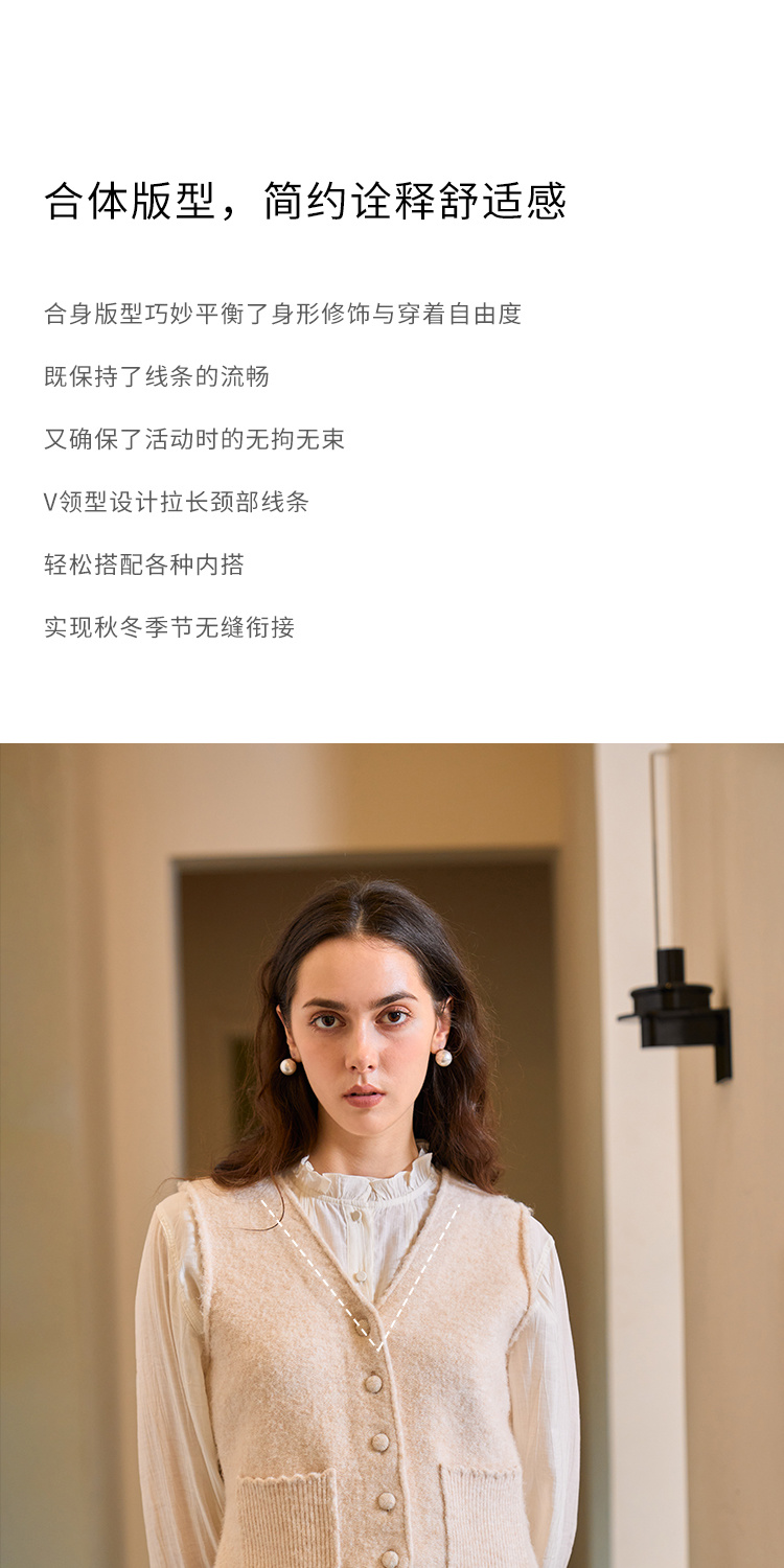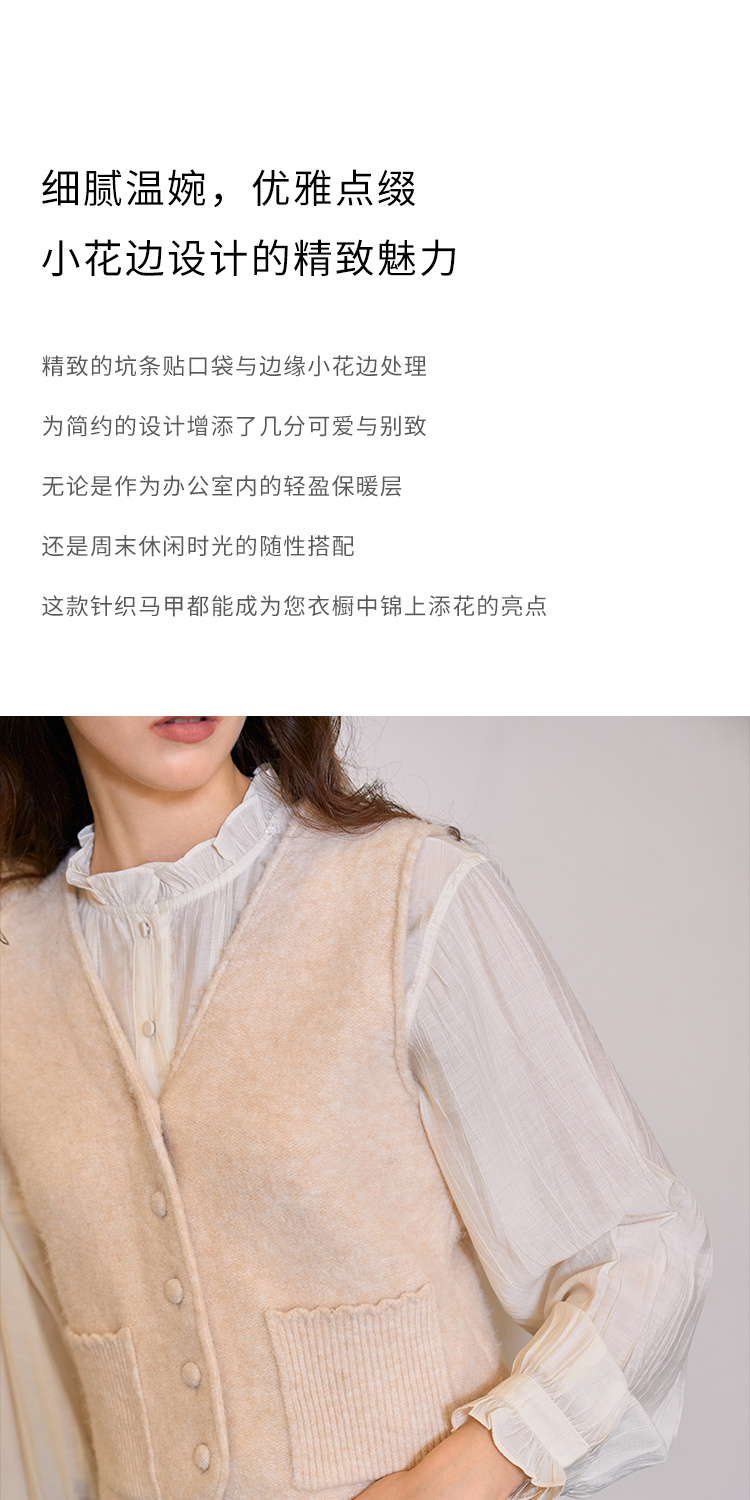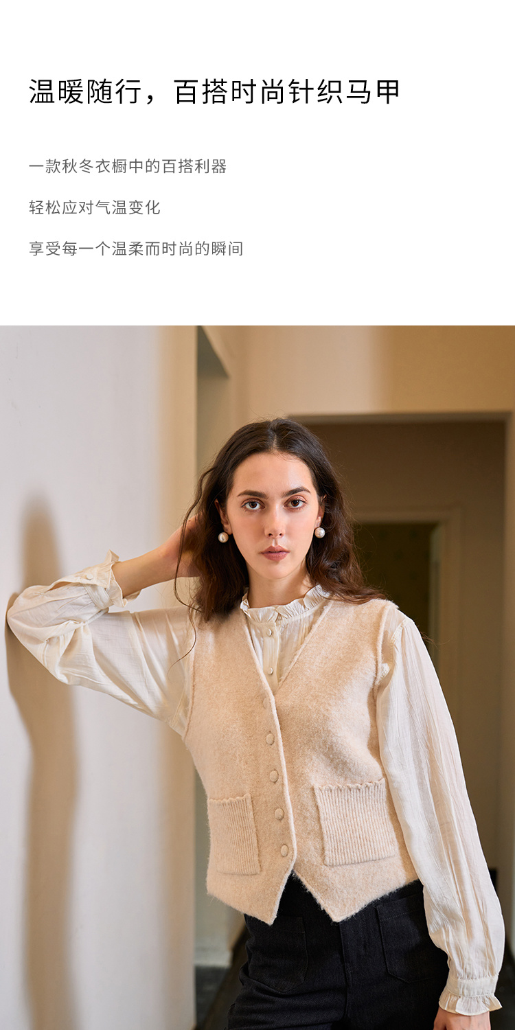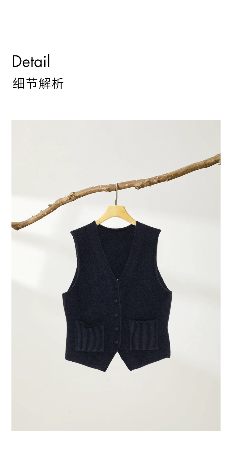 Heydress软糯针织马甲女秋季v领双口袋松弛温柔精致保暖百搭上衣