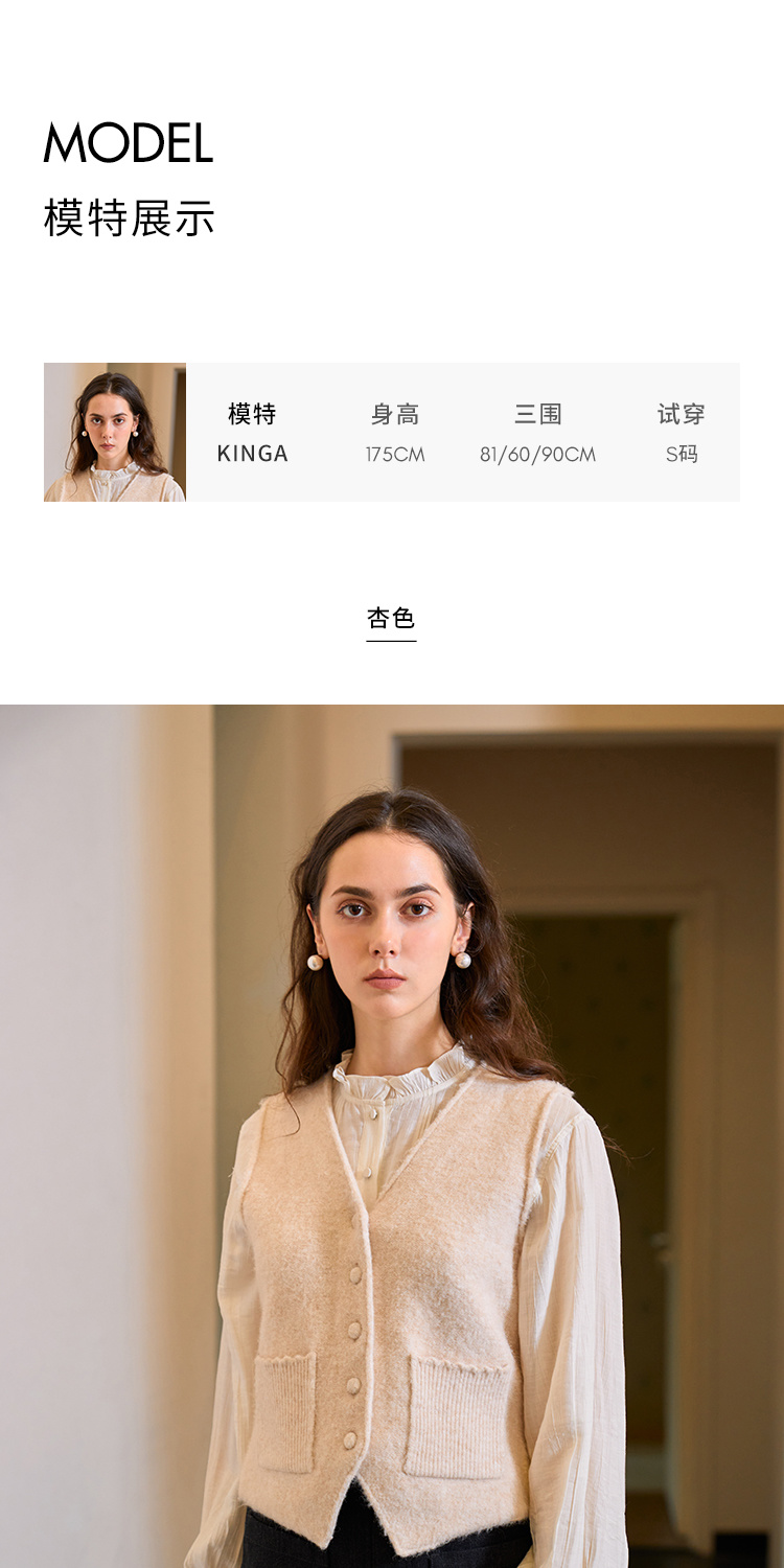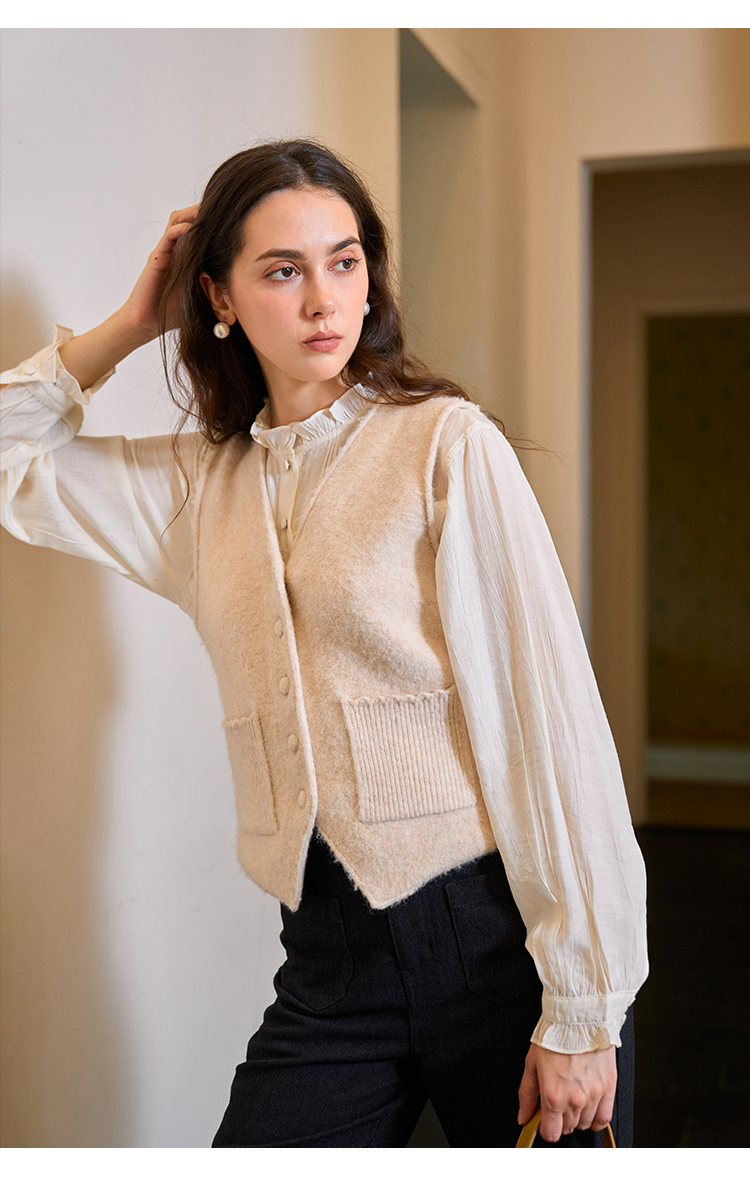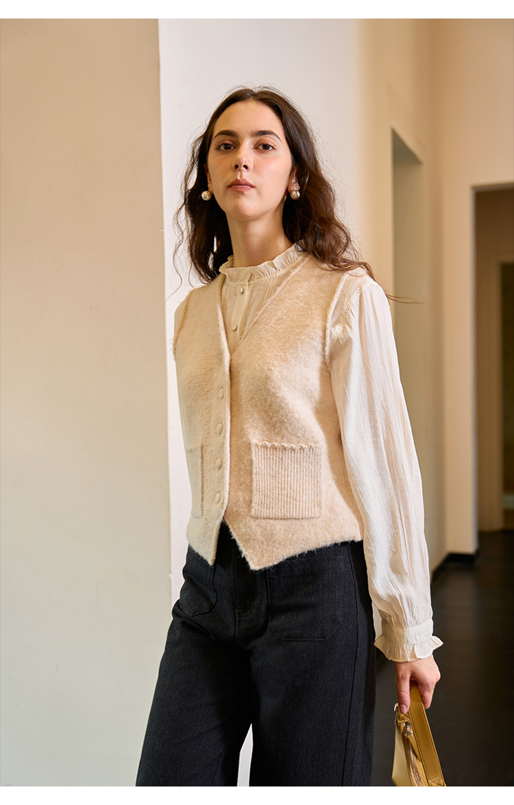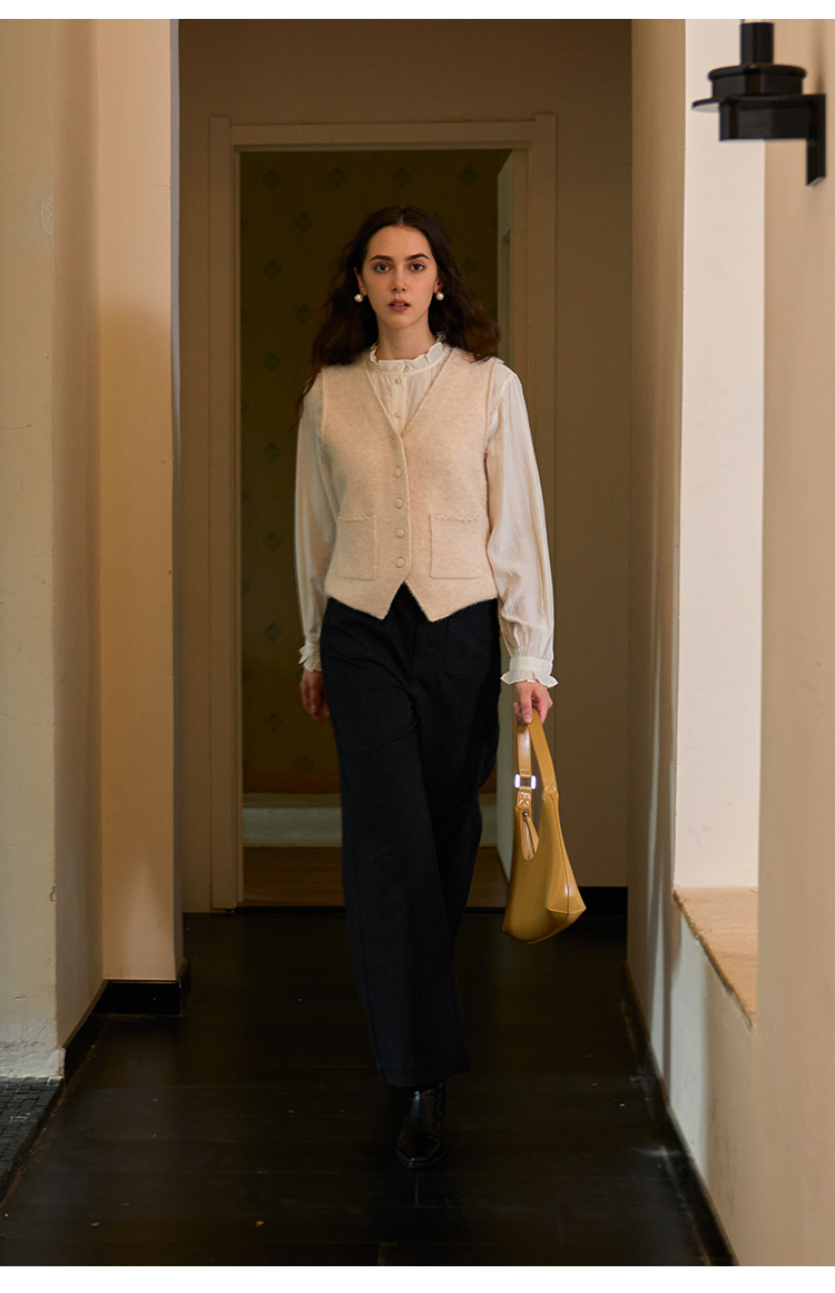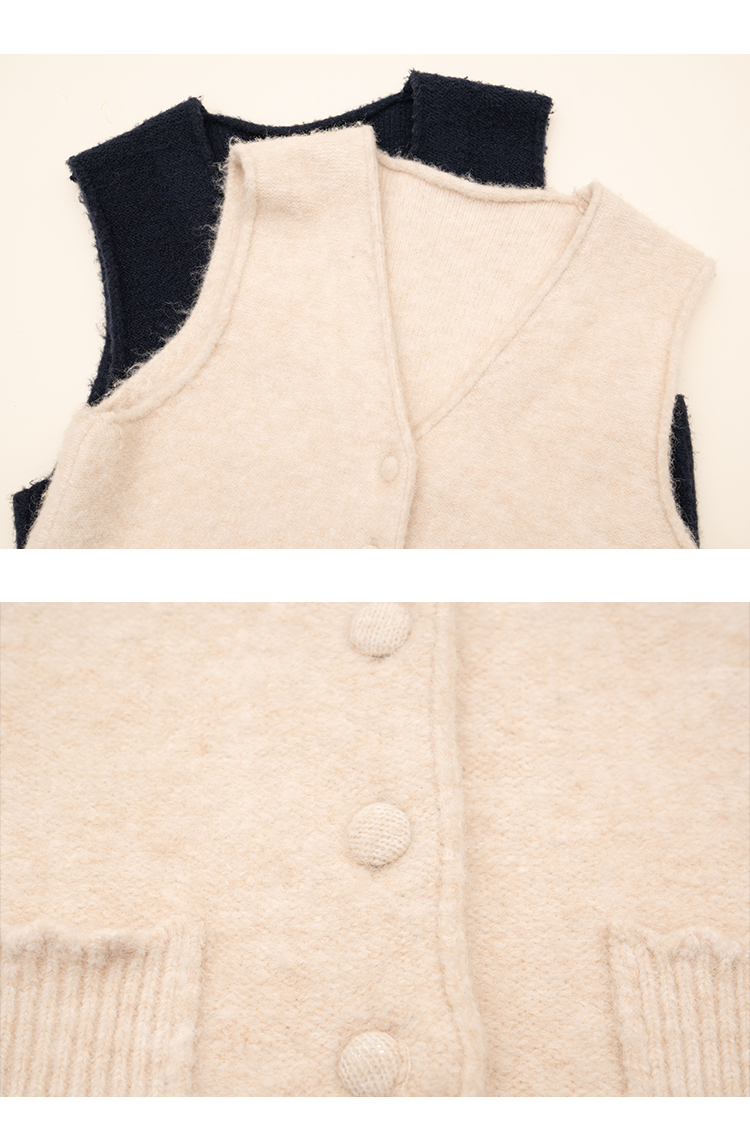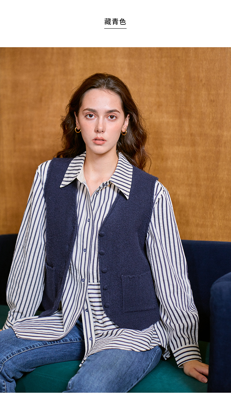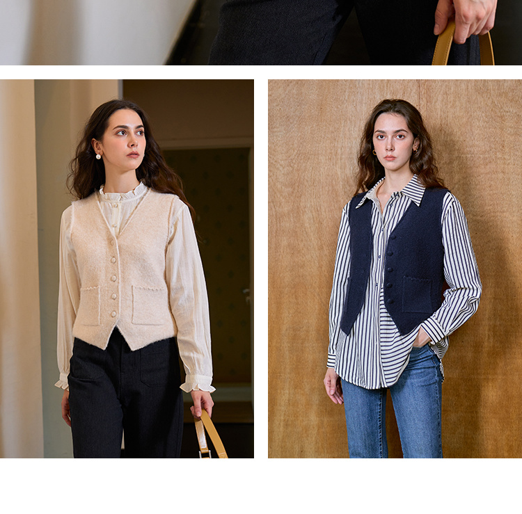 Heydress软糯针织马甲女秋季v领双口袋松弛温柔精致保暖百搭上衣