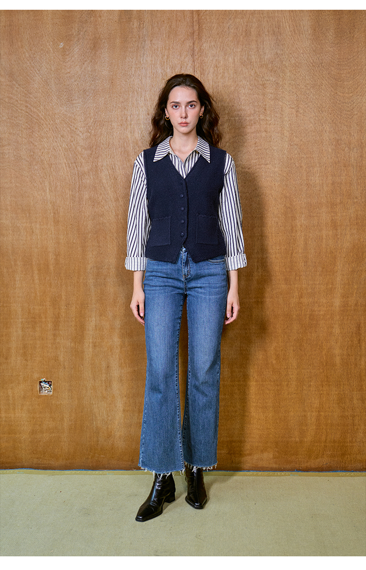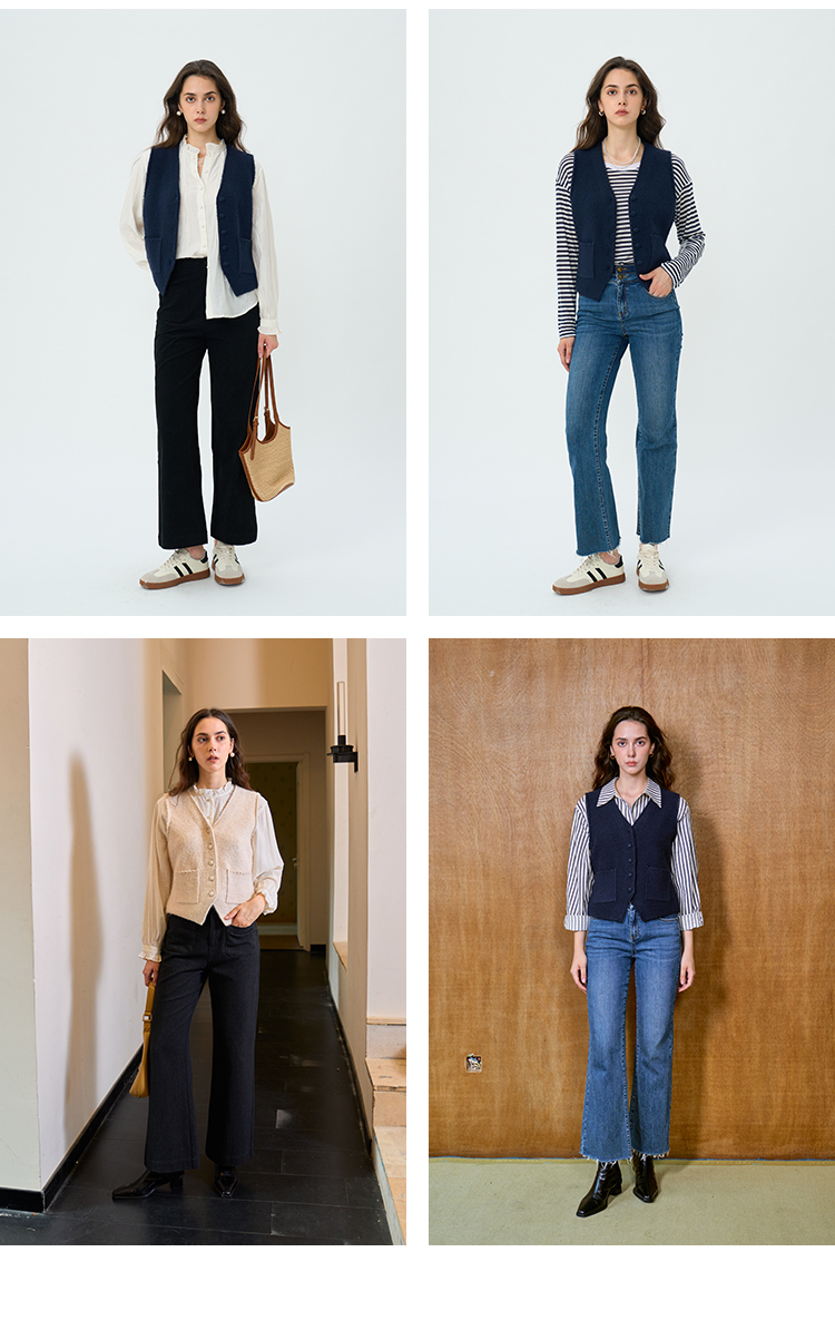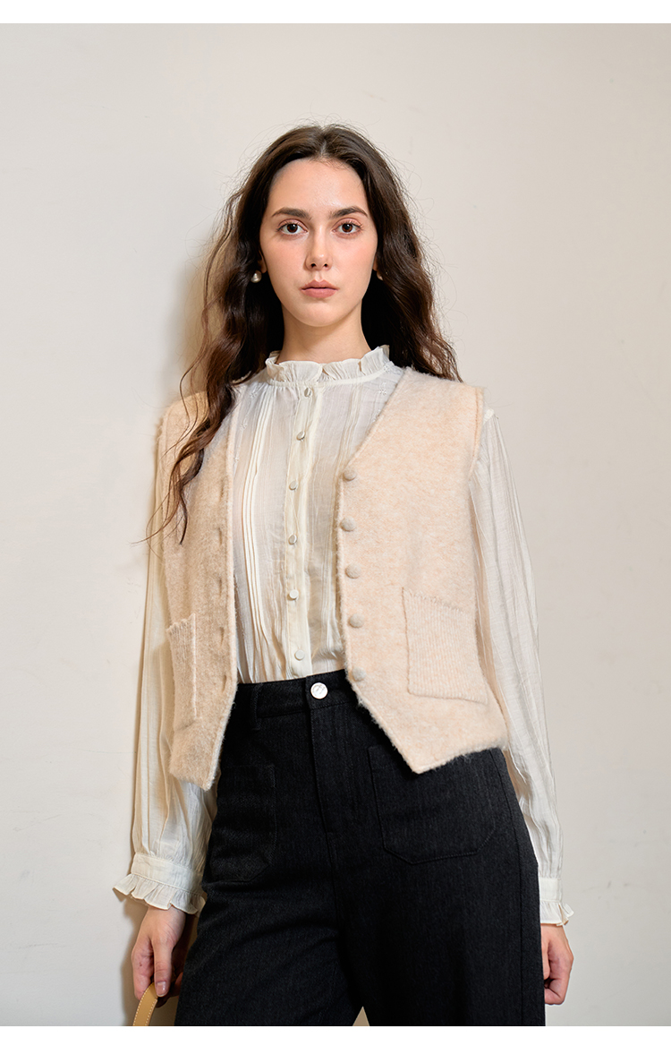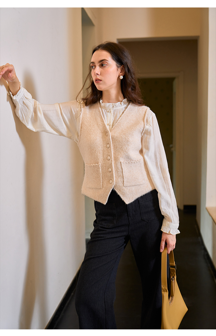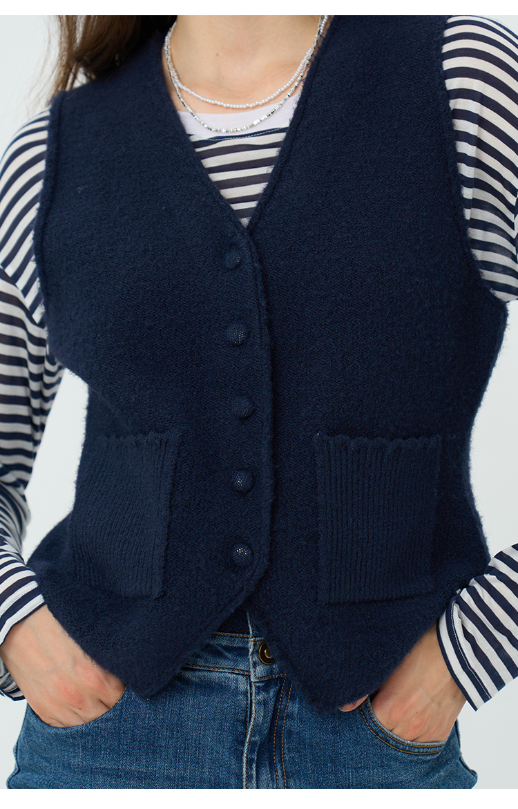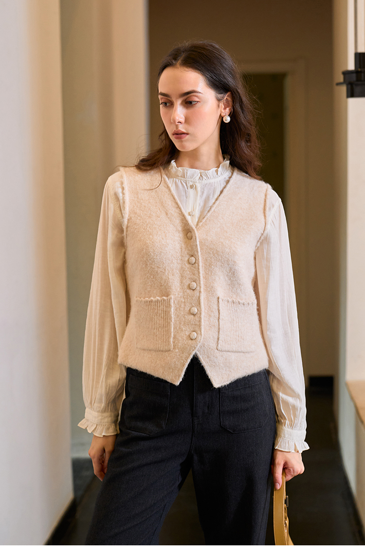 Heydress软糯针织马甲女秋季v领双口袋松弛温柔精致保暖百搭上衣