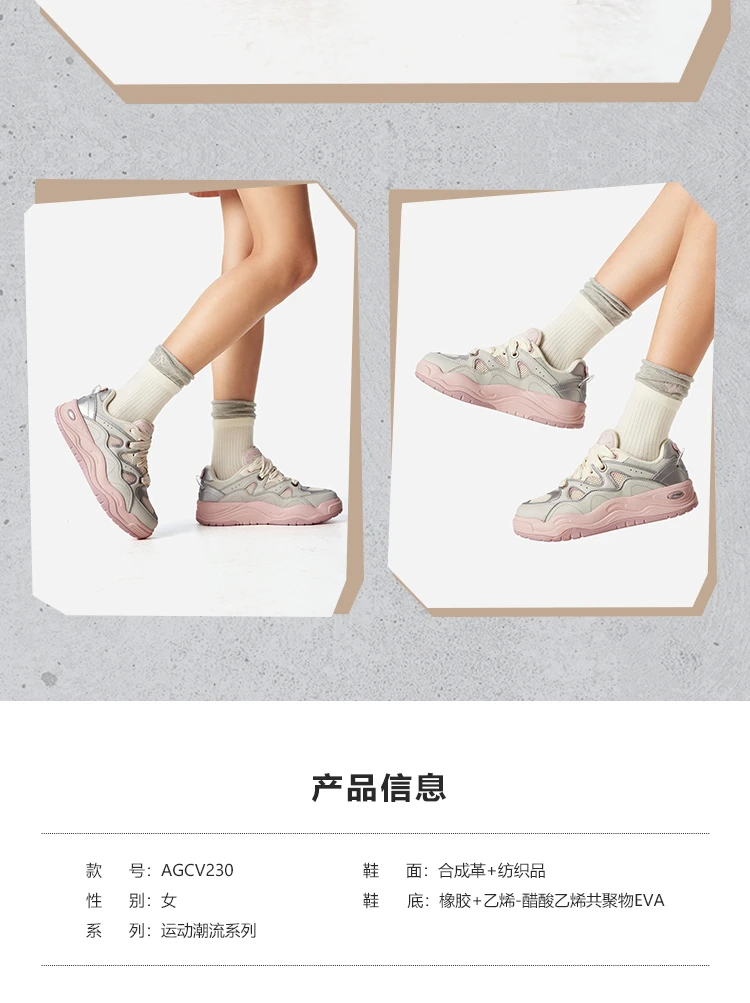 李宁|迪士尼米妮联名系列心流男女同款减震回弹经典休闲鞋AGLV096