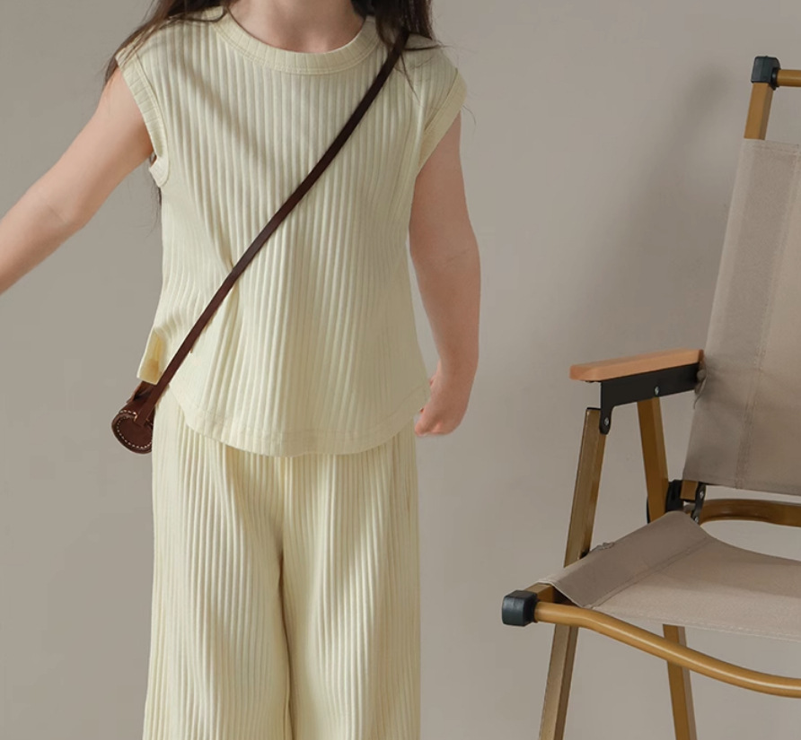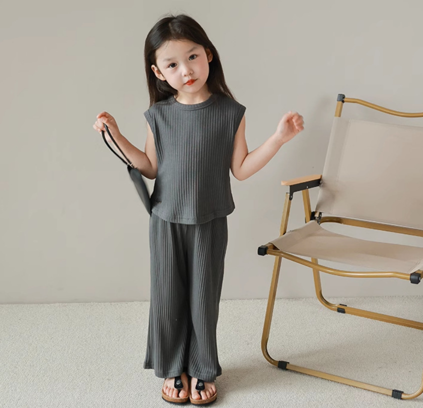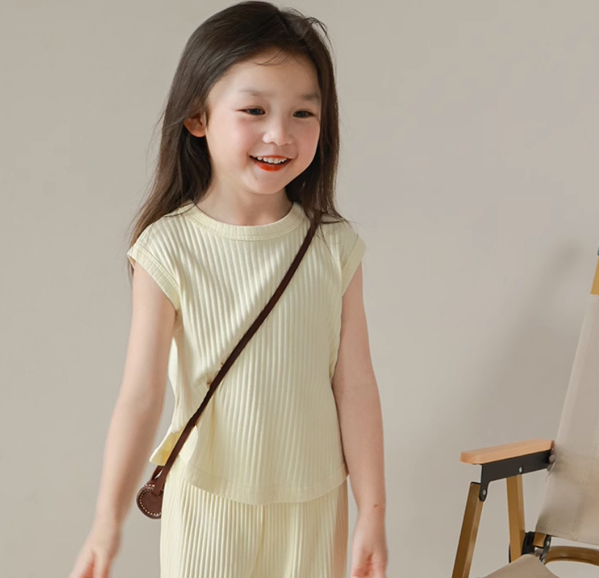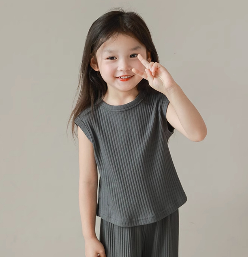 【清凉舒适,亲肤不刺激!】女童夏装套装2024新款中小童,冰丝螺纹无袖背心长裤套装休闲两件套-lm!
