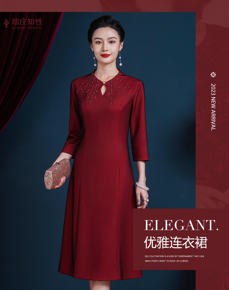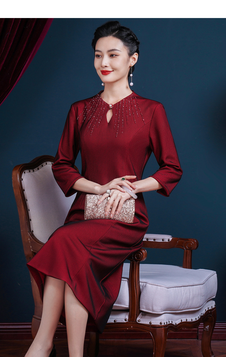 上海旗袍厂JC-5382改良旗袍裙婚宴装洋气连衣裙