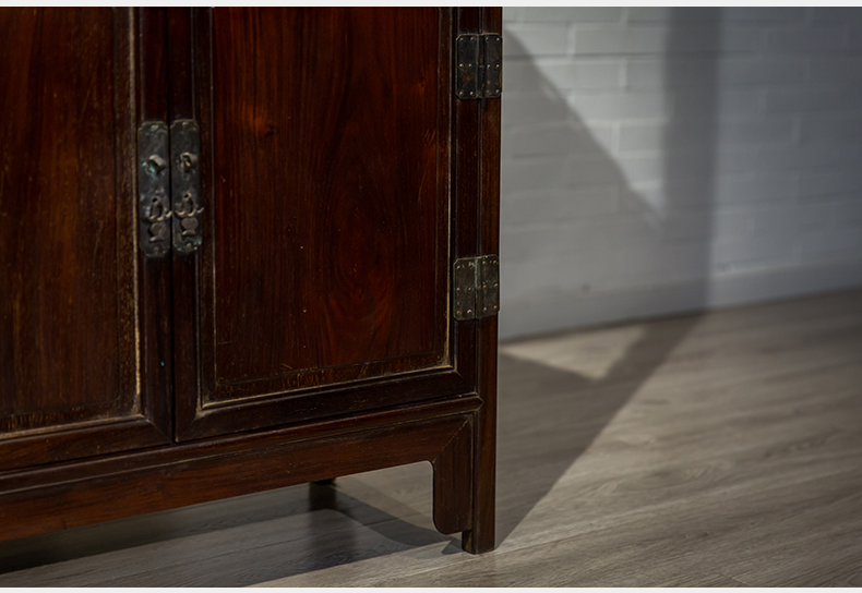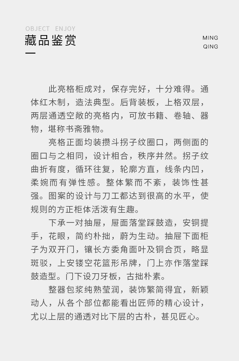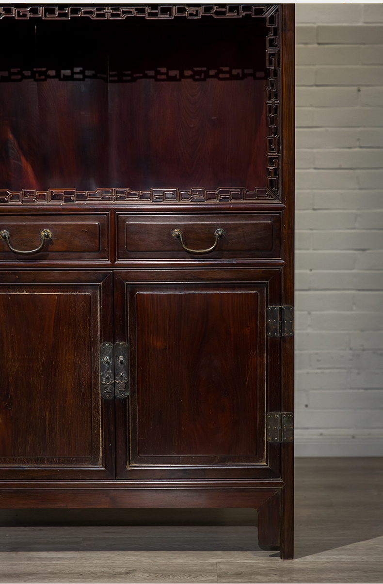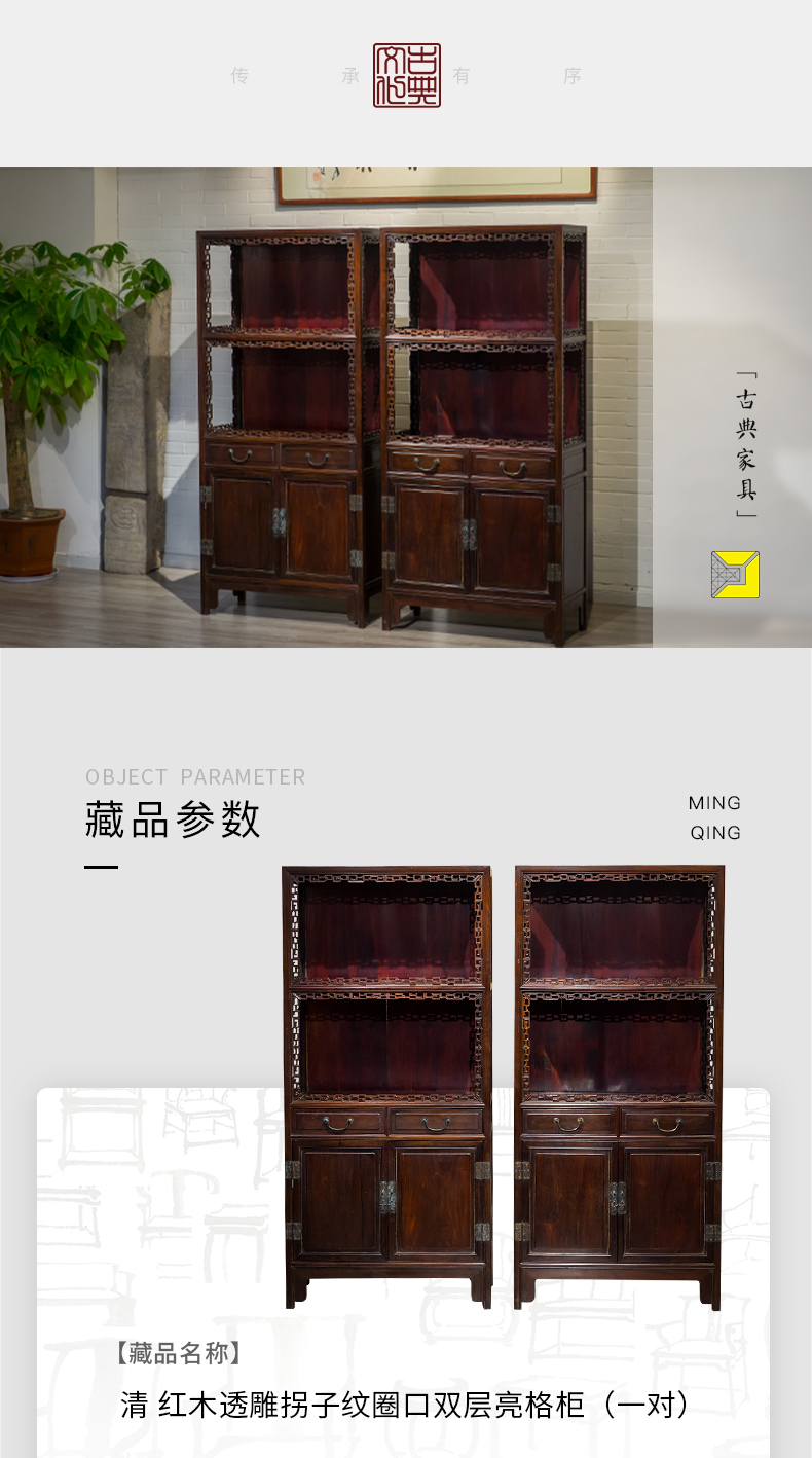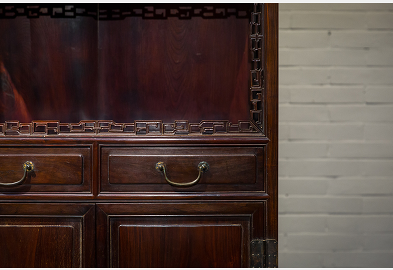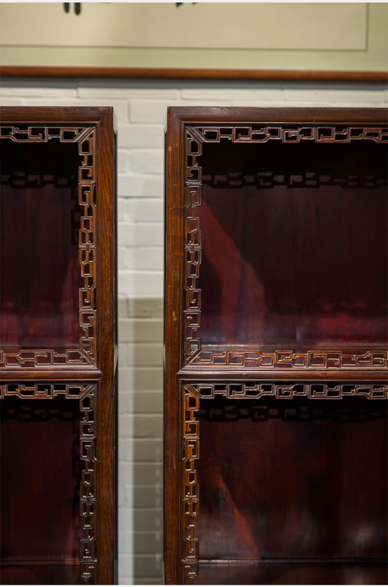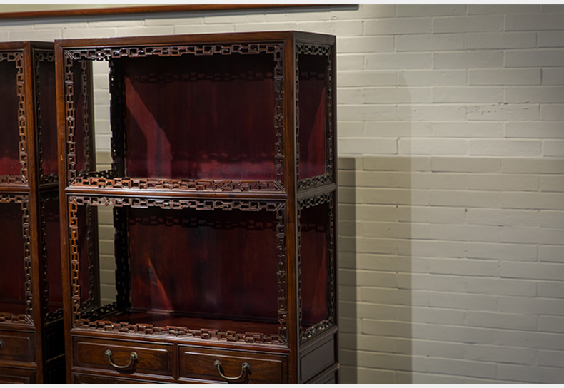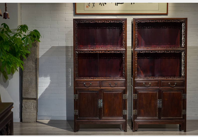 清 红木透雕拐子纹圈口双层亮格柜(一对)