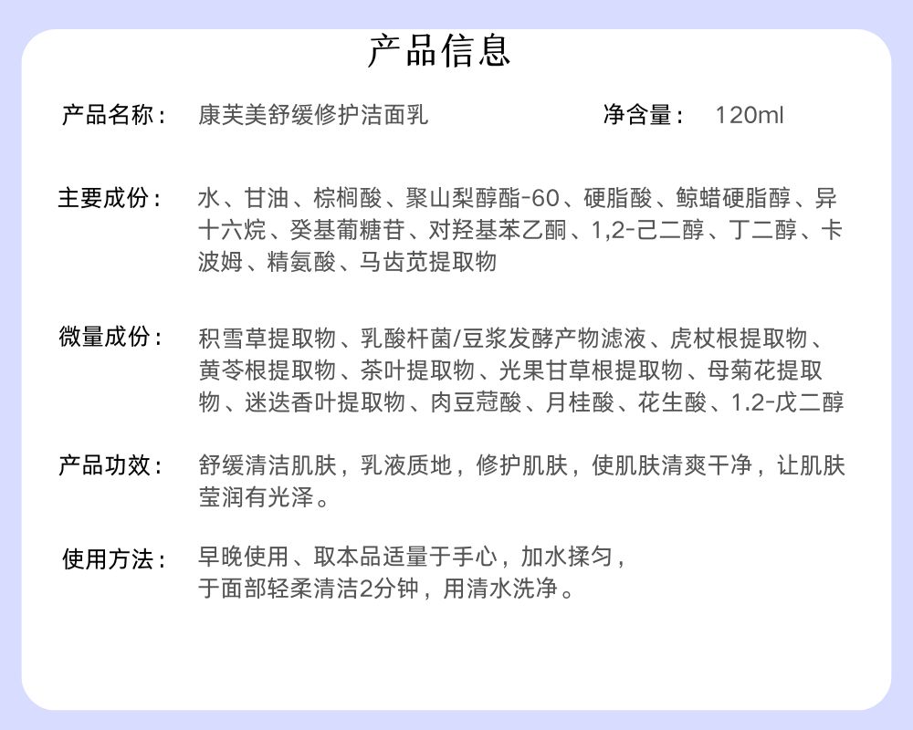舒缓修护洁面乳120ml/支