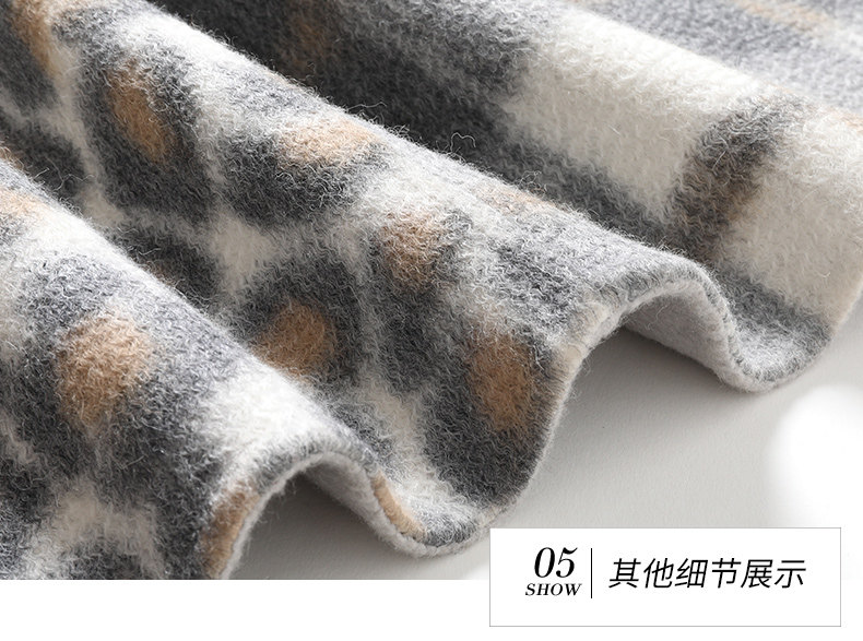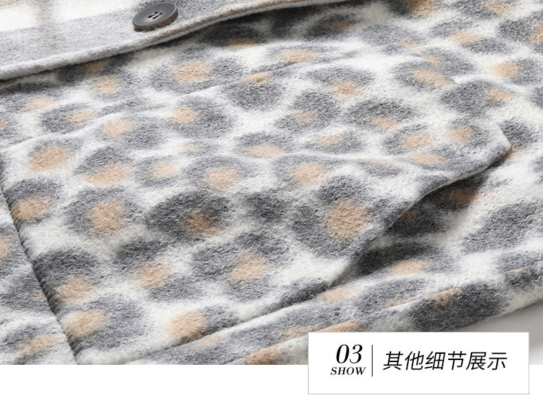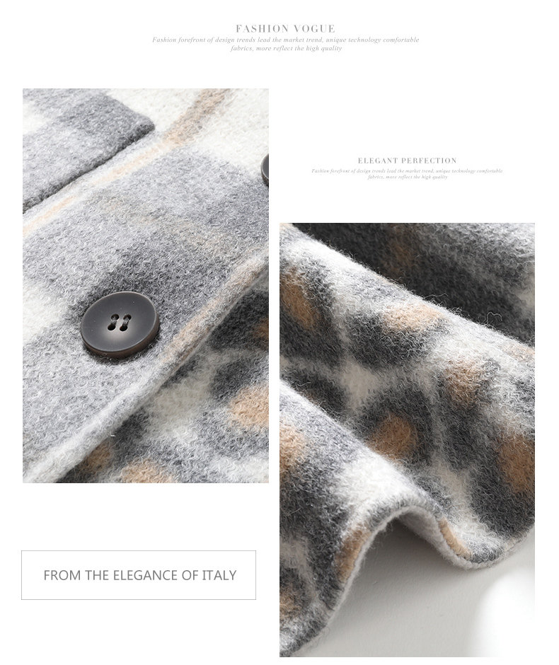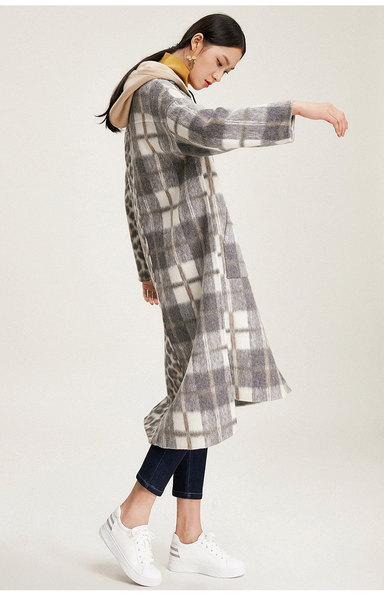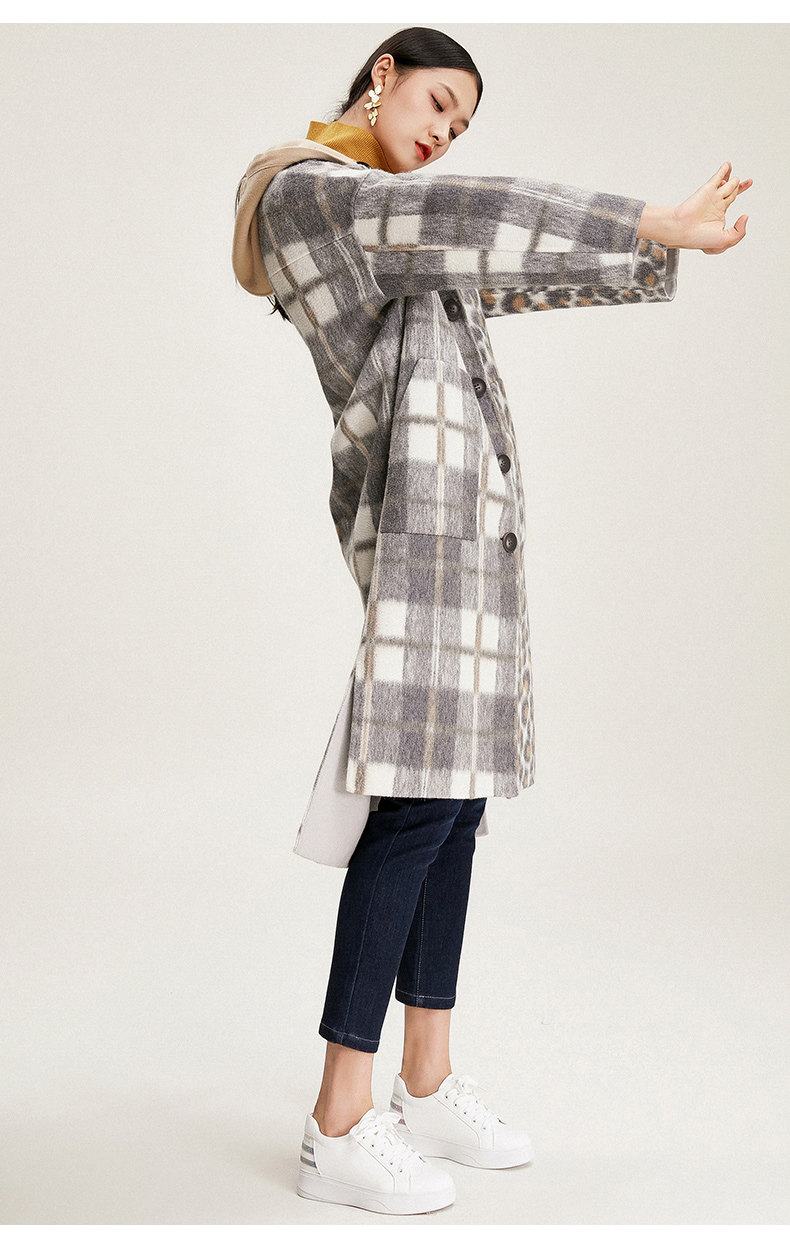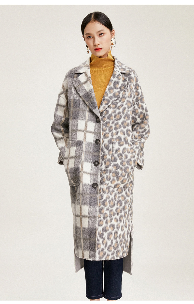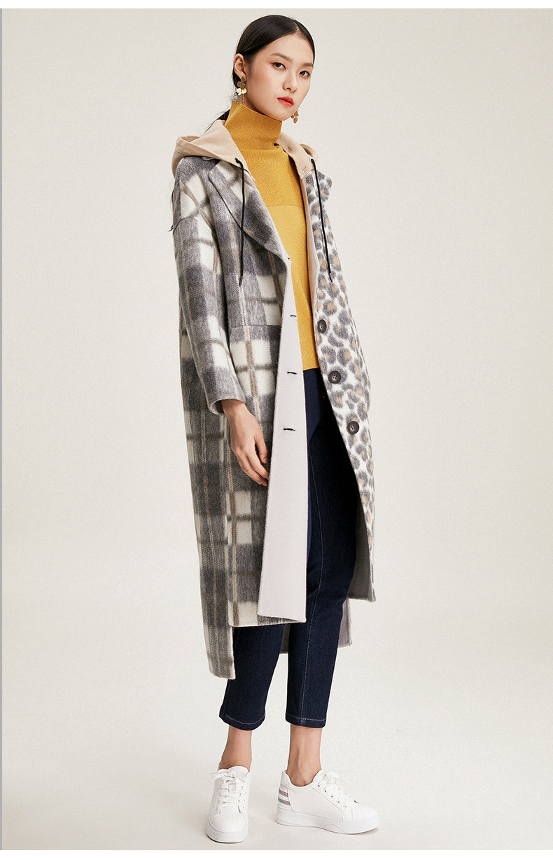 【绵羊毛】乔万尼秋冬大衣中长款毛呢大衣连帽外套时尚格子豹纹大衣EN4A789
