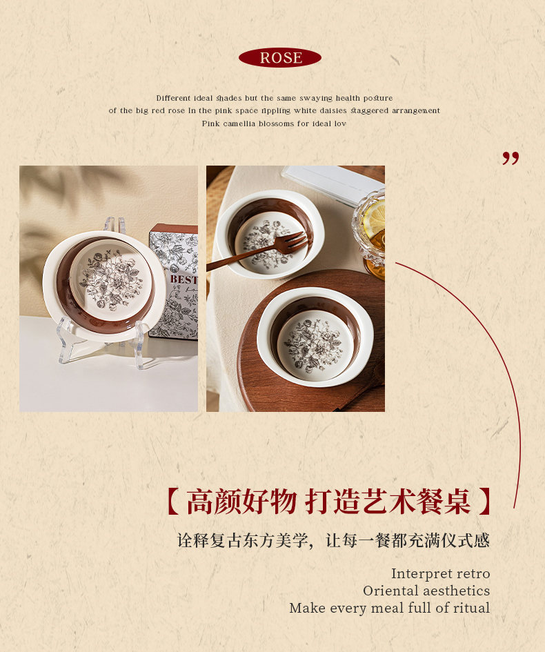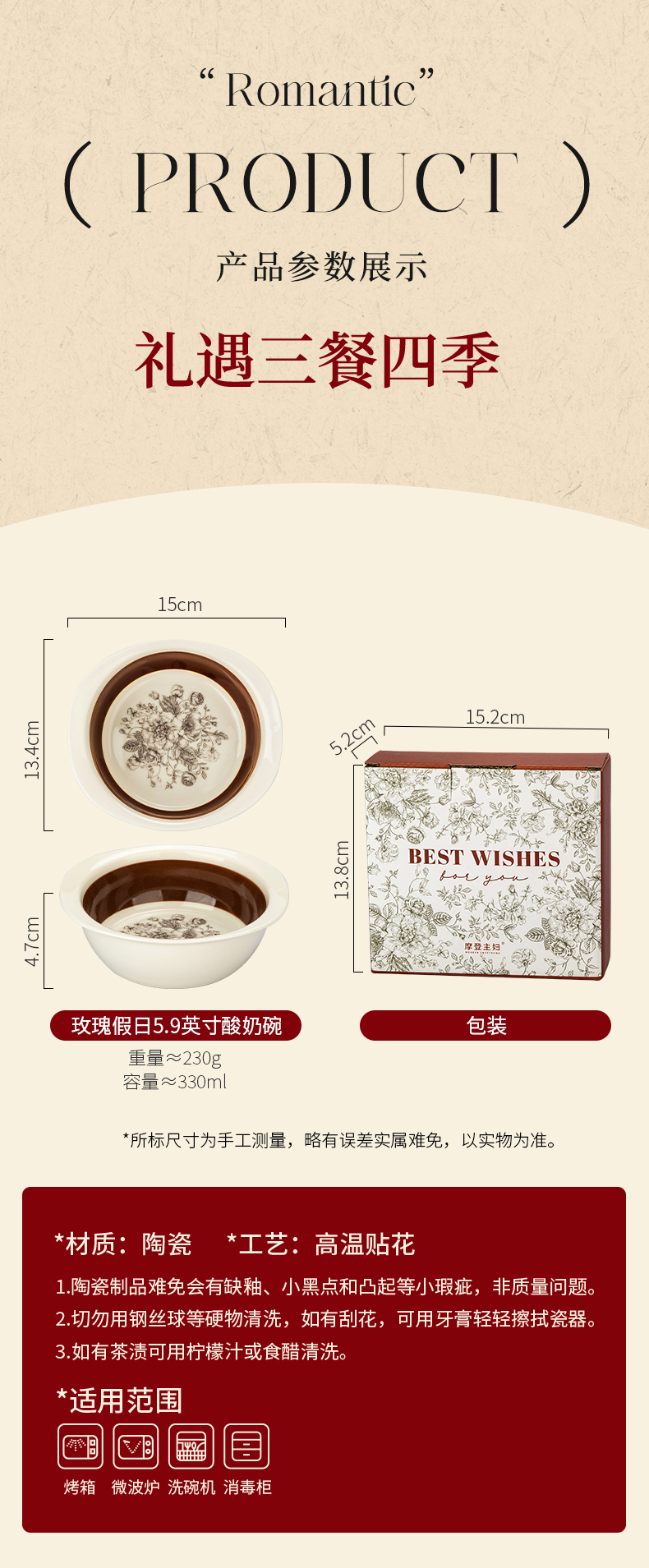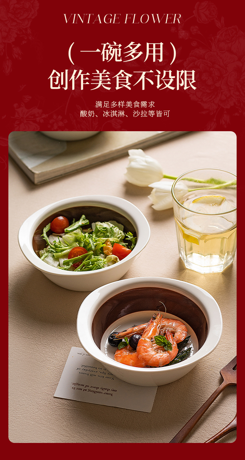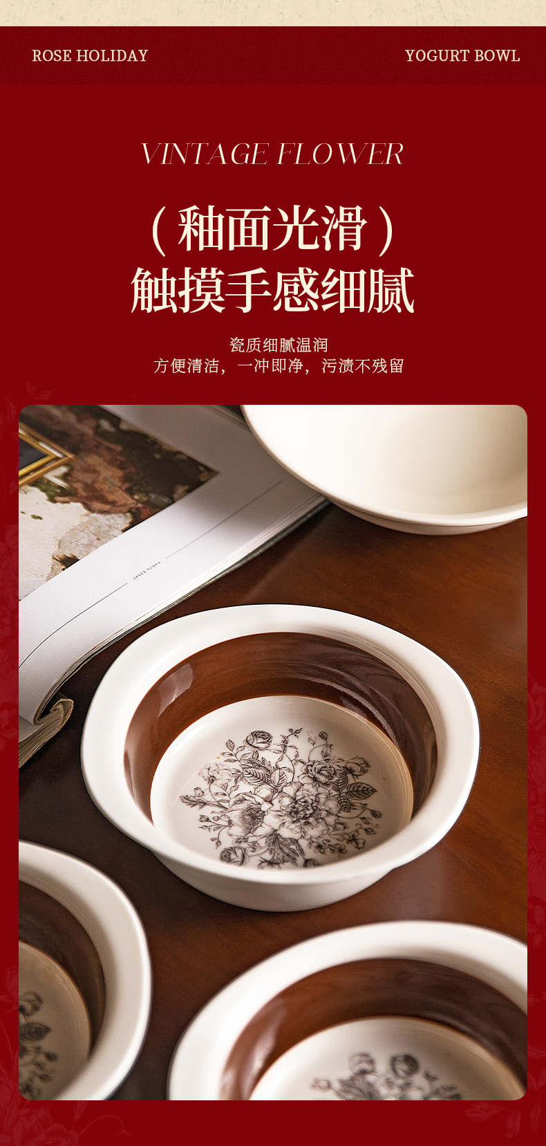 摩登主妇玫瑰假日酸奶碗高颜值餐具水果沙拉碗燕麦甜品碗brunch碗