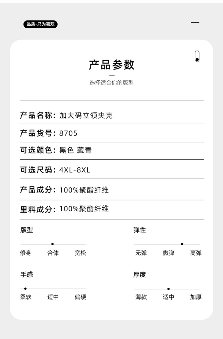 【DSF】大依优型大码男装新款外套男士加肥加大码商务休闲立领夹克男胖子