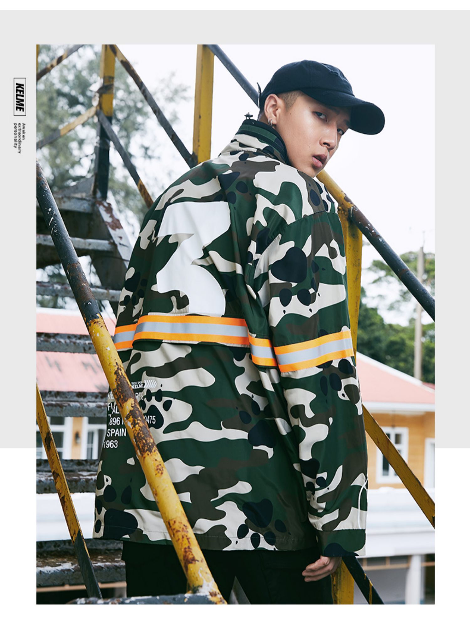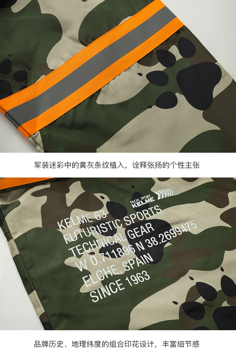 卡尔美KELME男士风衣中长款新款大衣男潮流薄春迷彩外套秋装