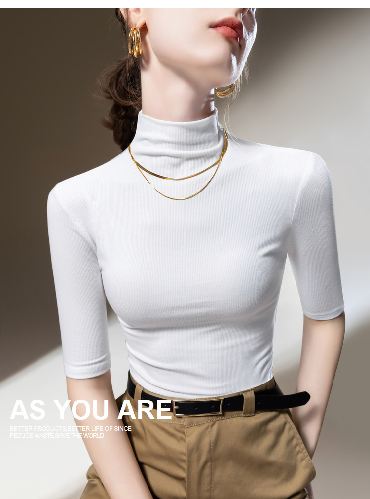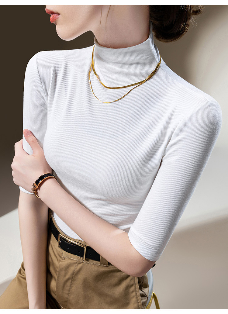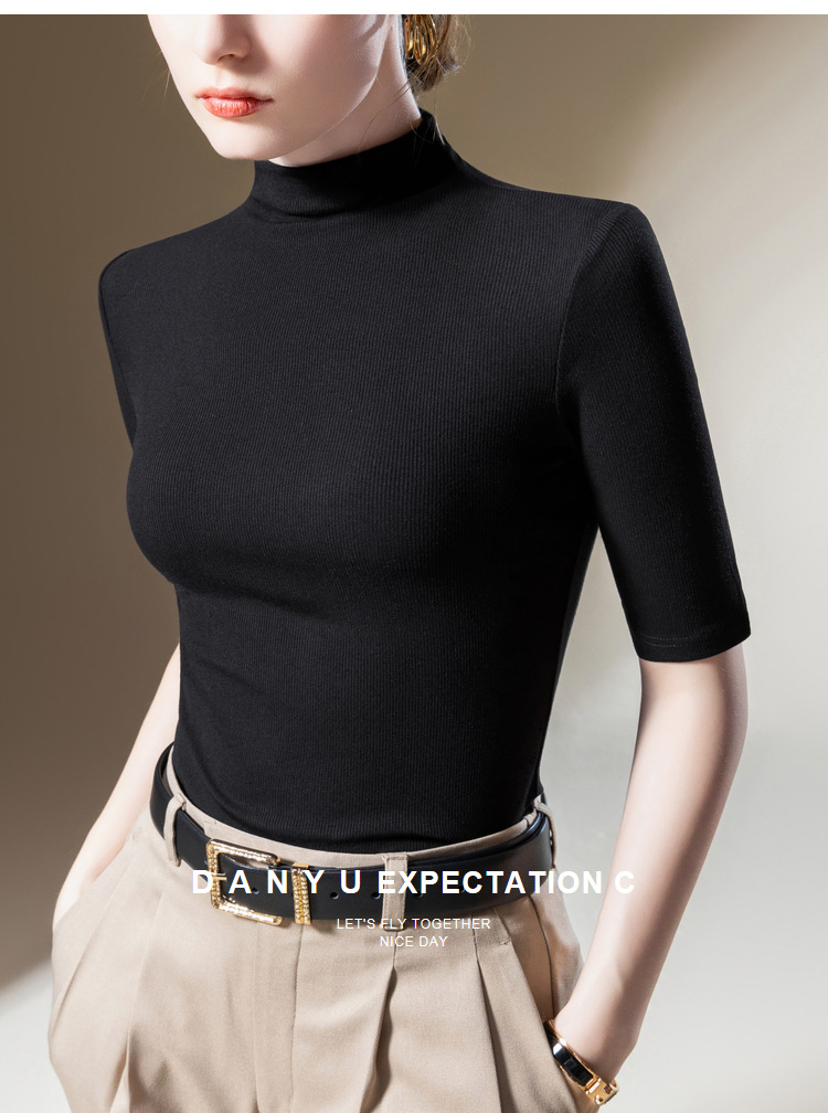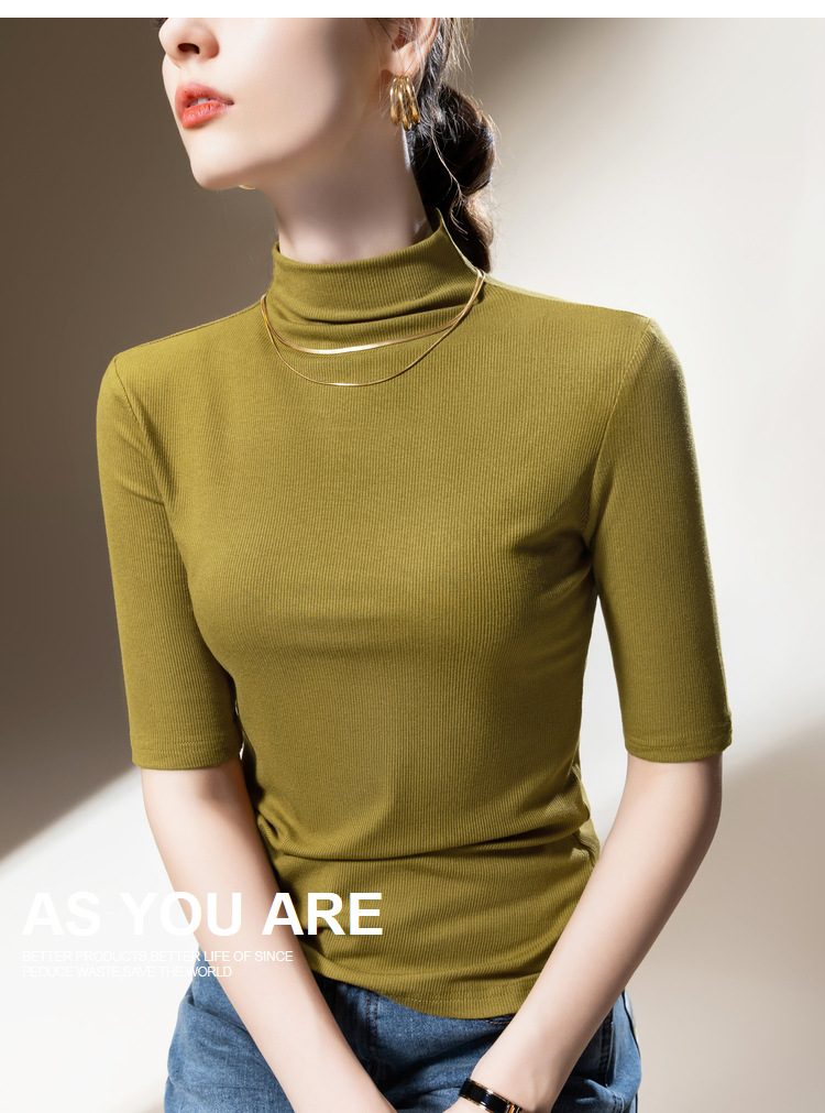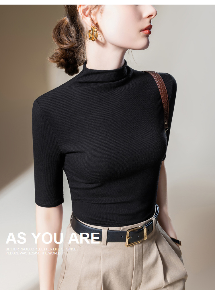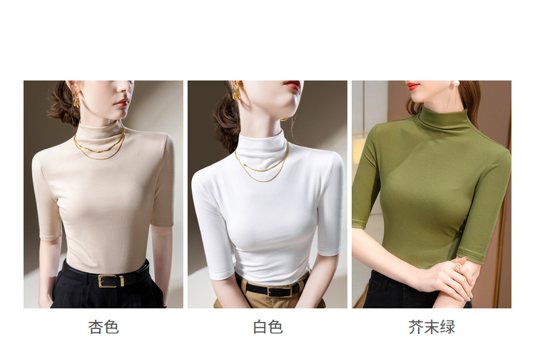 中袖t恤气质半高领打底衫,收腰内搭五分袖纯色上衣SG-DY331357