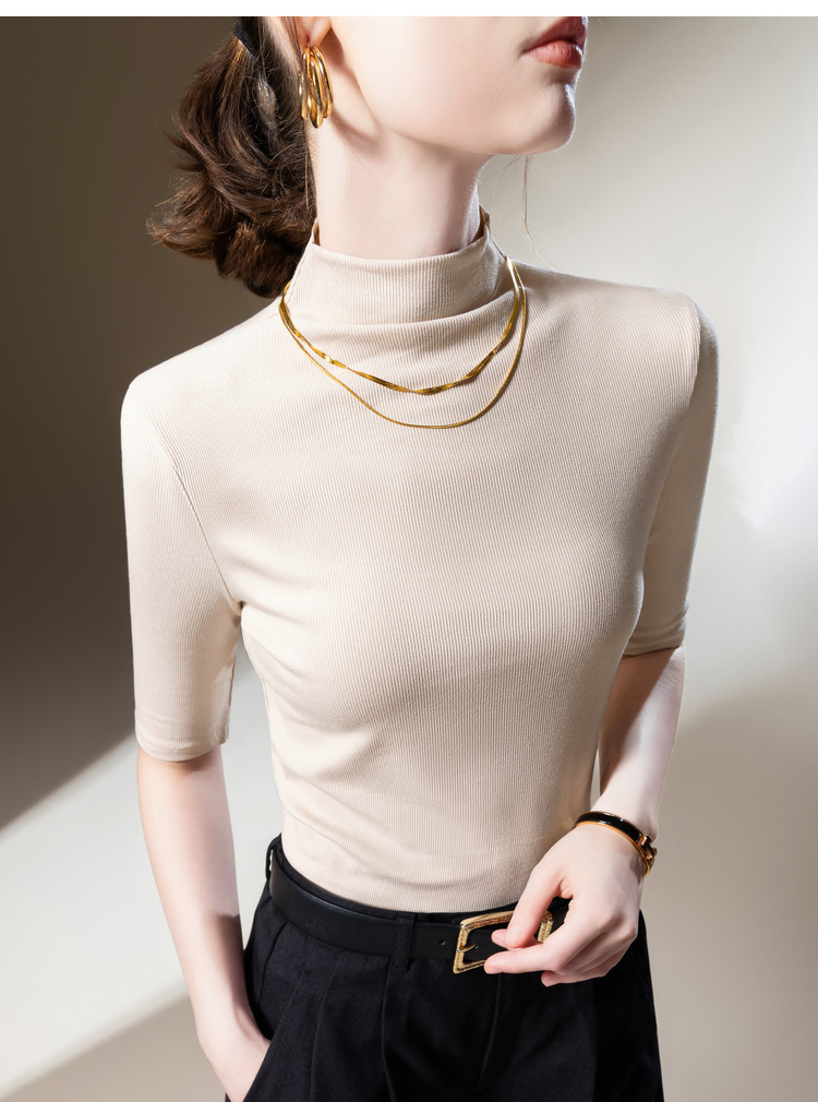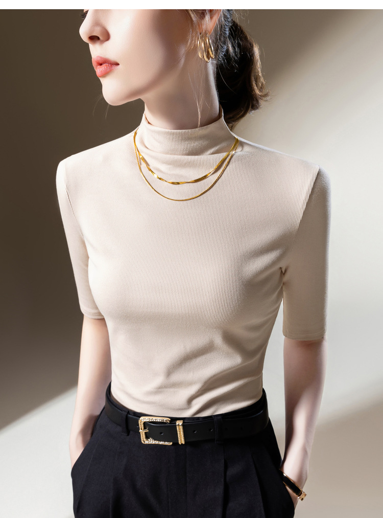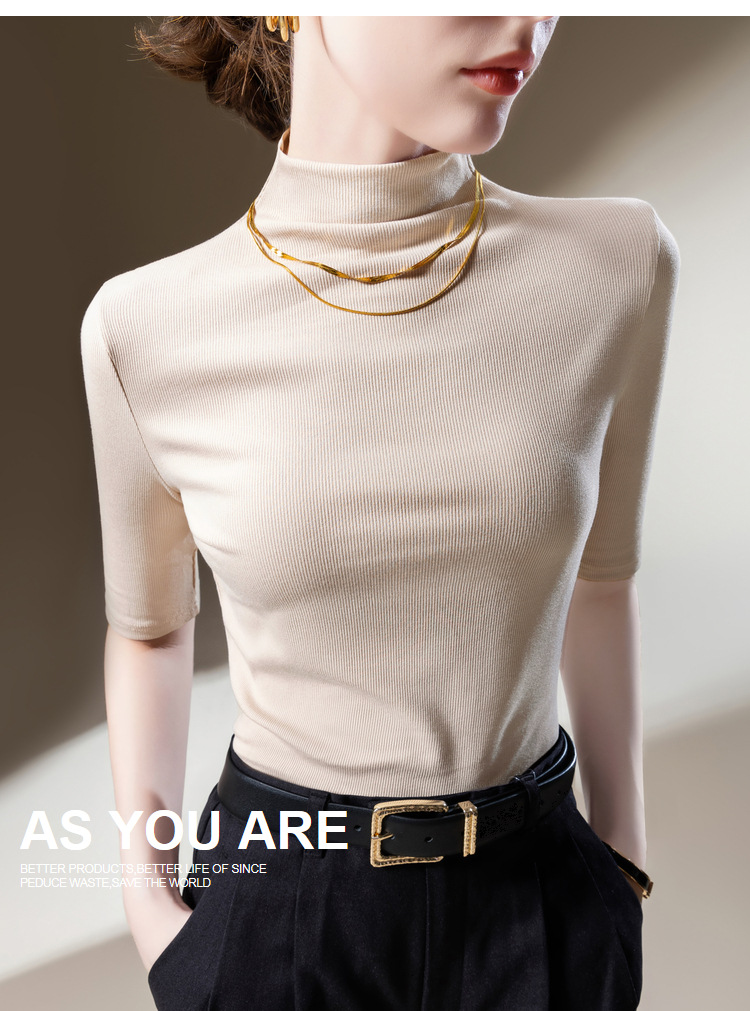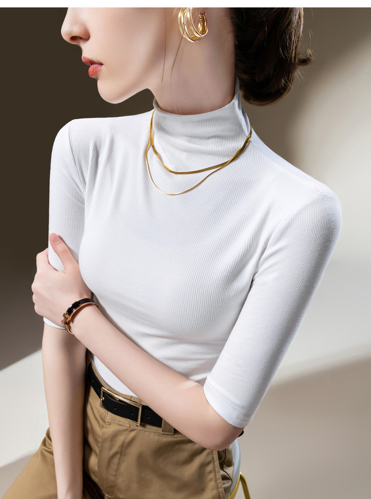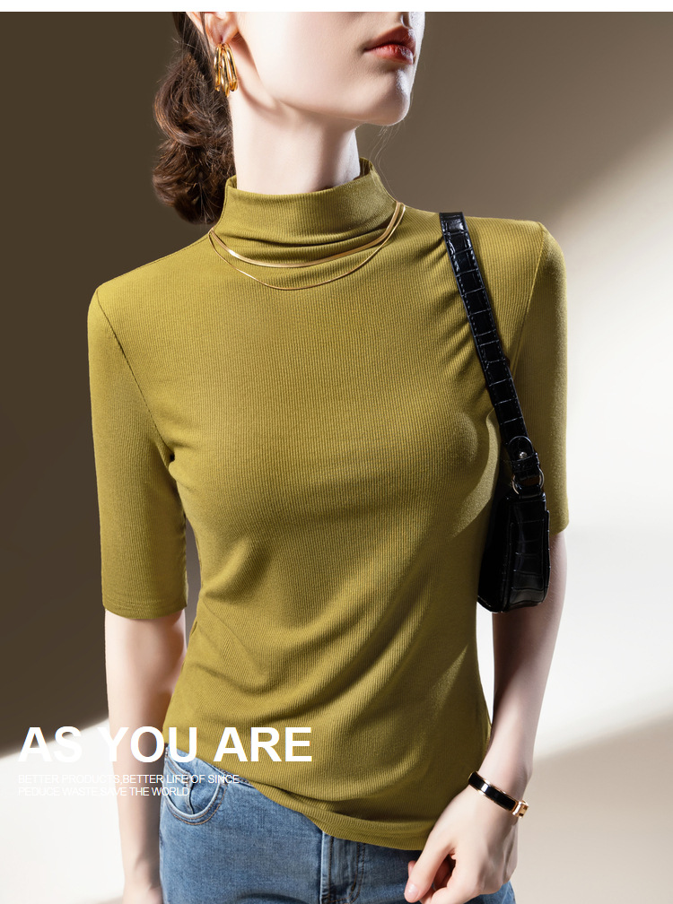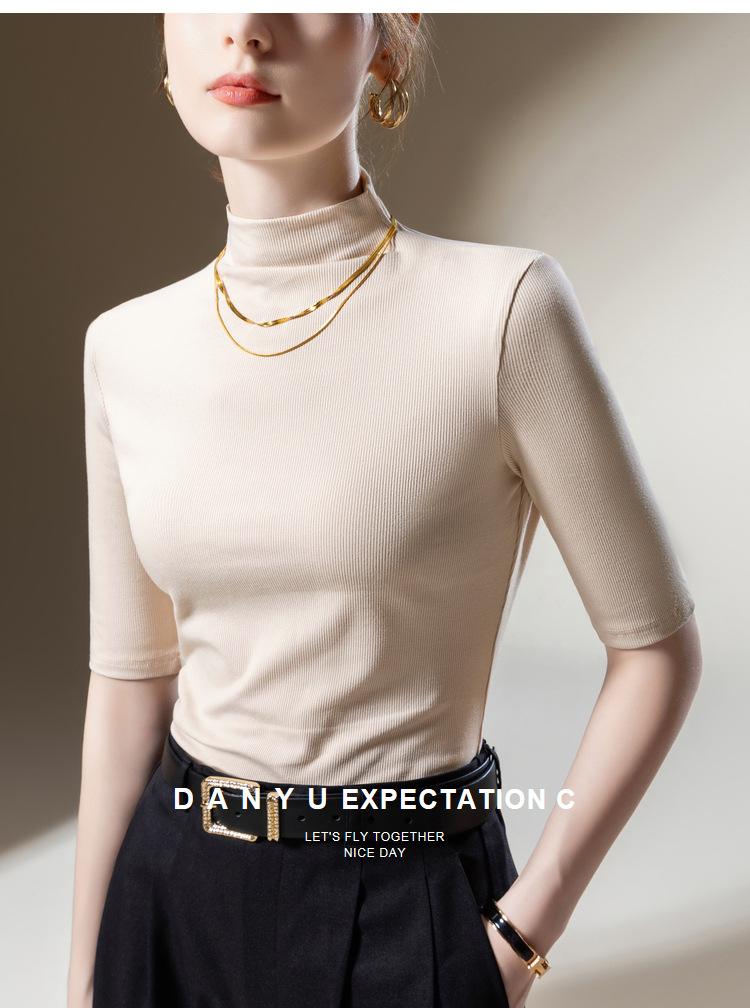 中袖t恤气质半高领打底衫,收腰内搭五分袖纯色上衣SG-DY331357