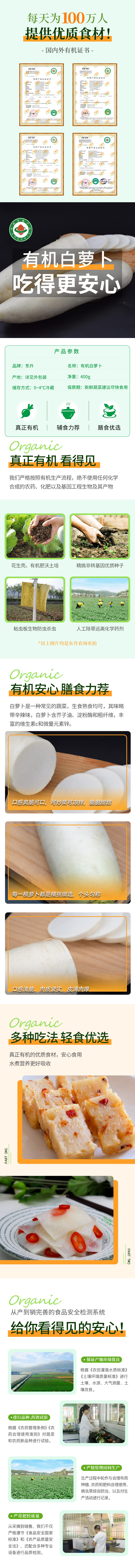 东升农场 有机白萝卜 广州供港蔬菜新鲜配送 400g
