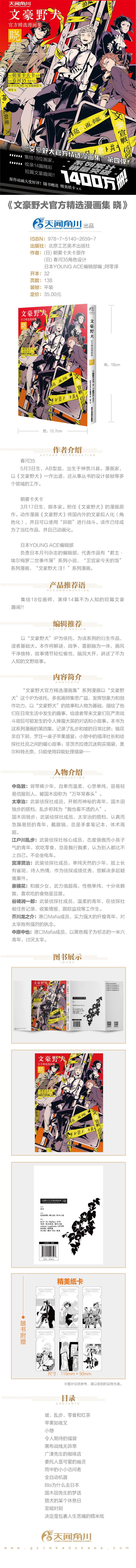 “文豪野犬官方精选漫画集”系列漫画以“文豪野犬”这个IP为依托,多名画师集思广益,发挥想象力和创作功力,以“文豪野犬”的故事和人物为基础,描绘了他们在日常生活中发生的趣事,给读者带来文豪们在严肃战斗背后可能发生的令人捧腹大笑的对话和小故事。本书为这系列漫画的第四集,记录了乱步和坡的日常比拼;镜花下厨,烹饪一桌子苹果盛宴;小憩中的福泽社长和侦探社社员之间的暖心故事;菲茨杰拉德沉迷购买福袋,奥尔科特无奈,只能使用异能处理福袋……