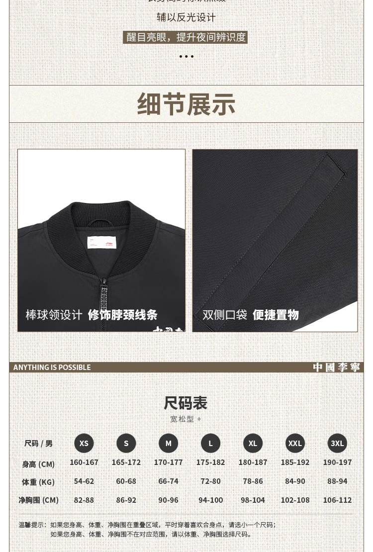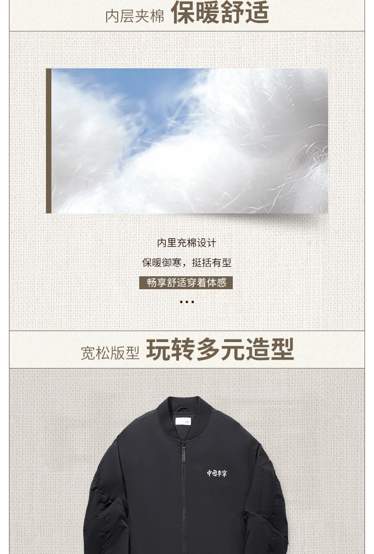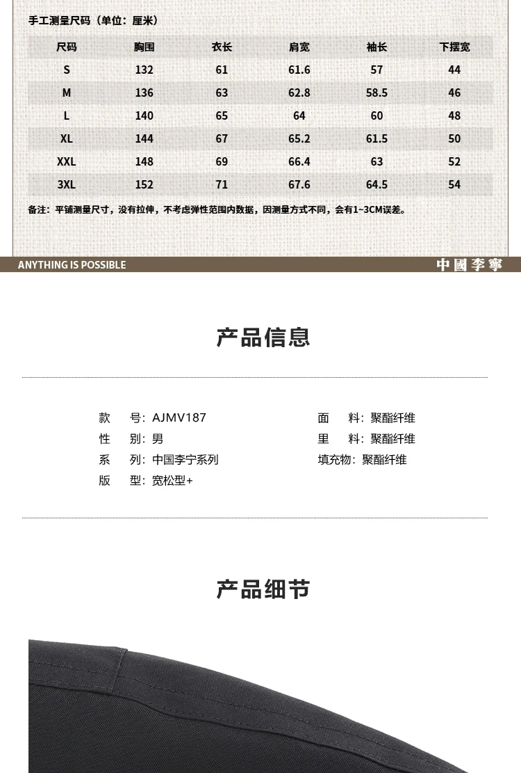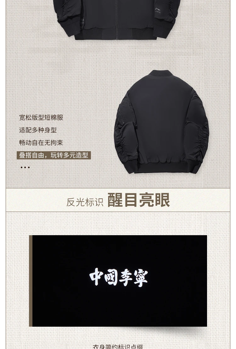 中国李宁男子反光宽松短棉服AJMV187