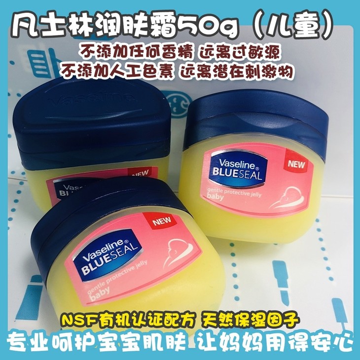 凡士林潤膚霜50g(兒童)👍婴儿宝宝专用的润肤霜,不添加任何香精,远离过敏源;不添加人工色素,远离潜在刺激物🙅;NSF有机认证配方,天然保湿因子💧,而且具有低敏特性,对于敏感皮肤的宝宝也照样适用🌟。专业呵护宝宝肌肤,让妈妈用得安心。💖