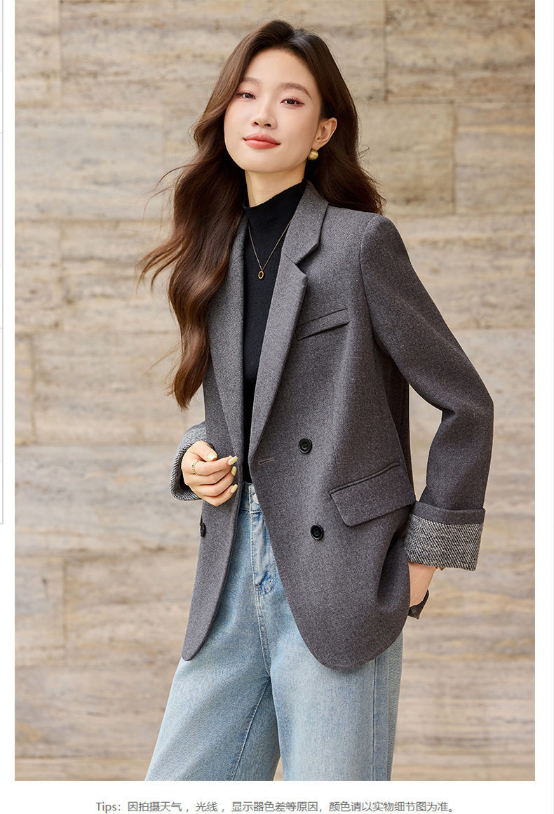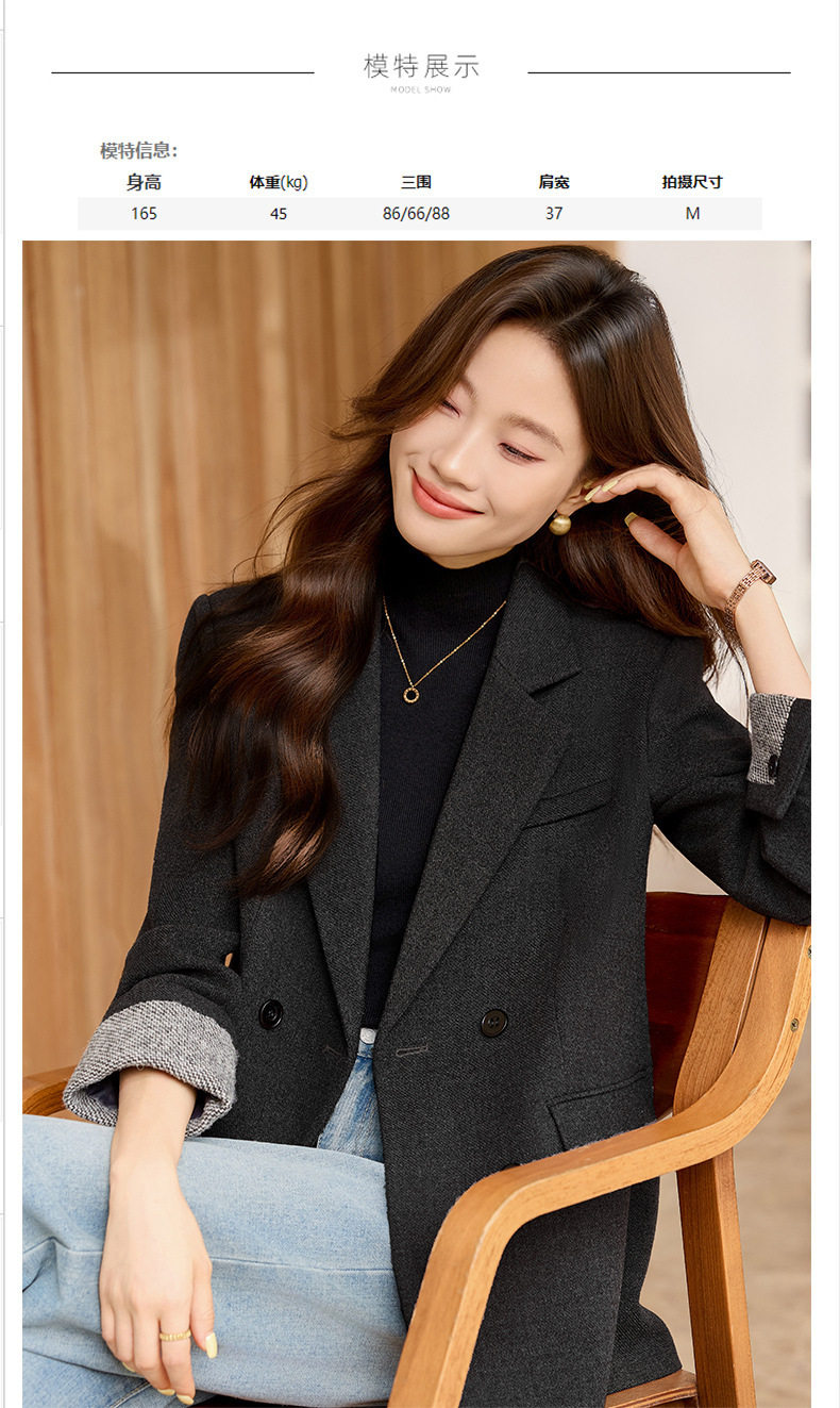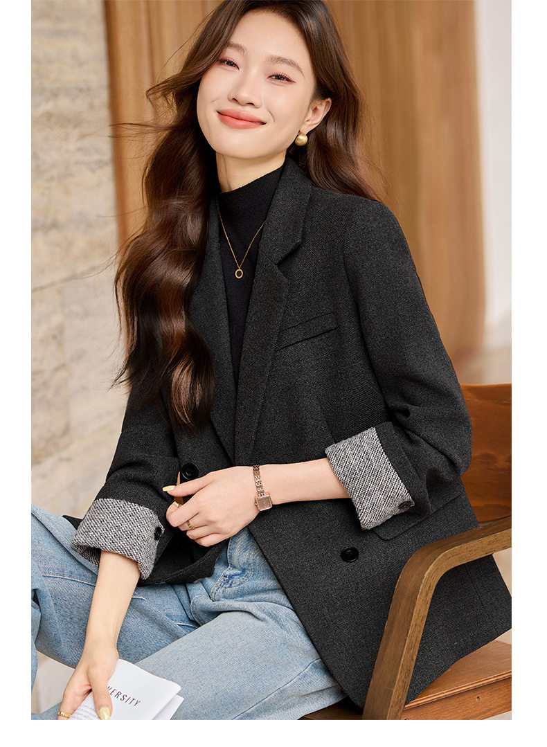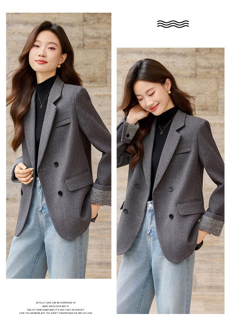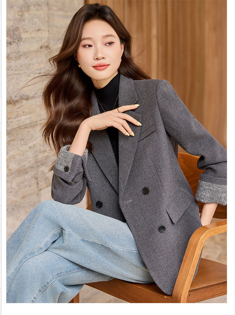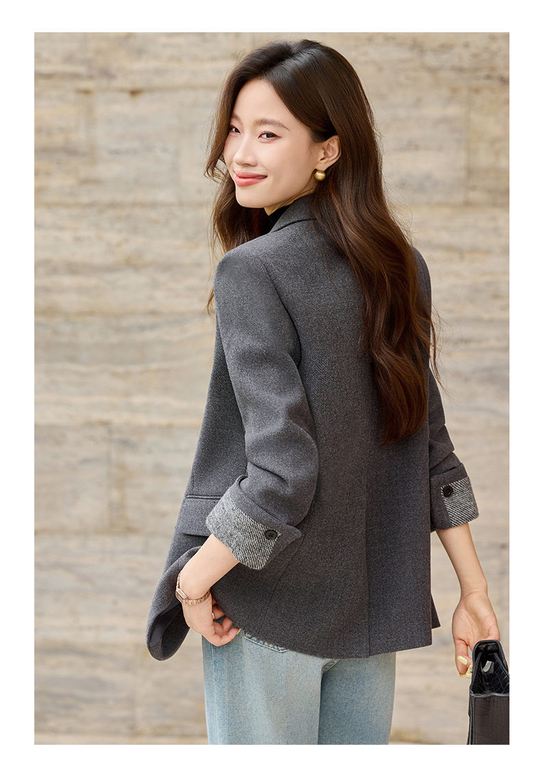 「自」全新升级【铂金会员220/天猫289/差价69】(32712)洛诗琳气质拼色西装外套202新款一粒扣百搭通勤加厚外套女